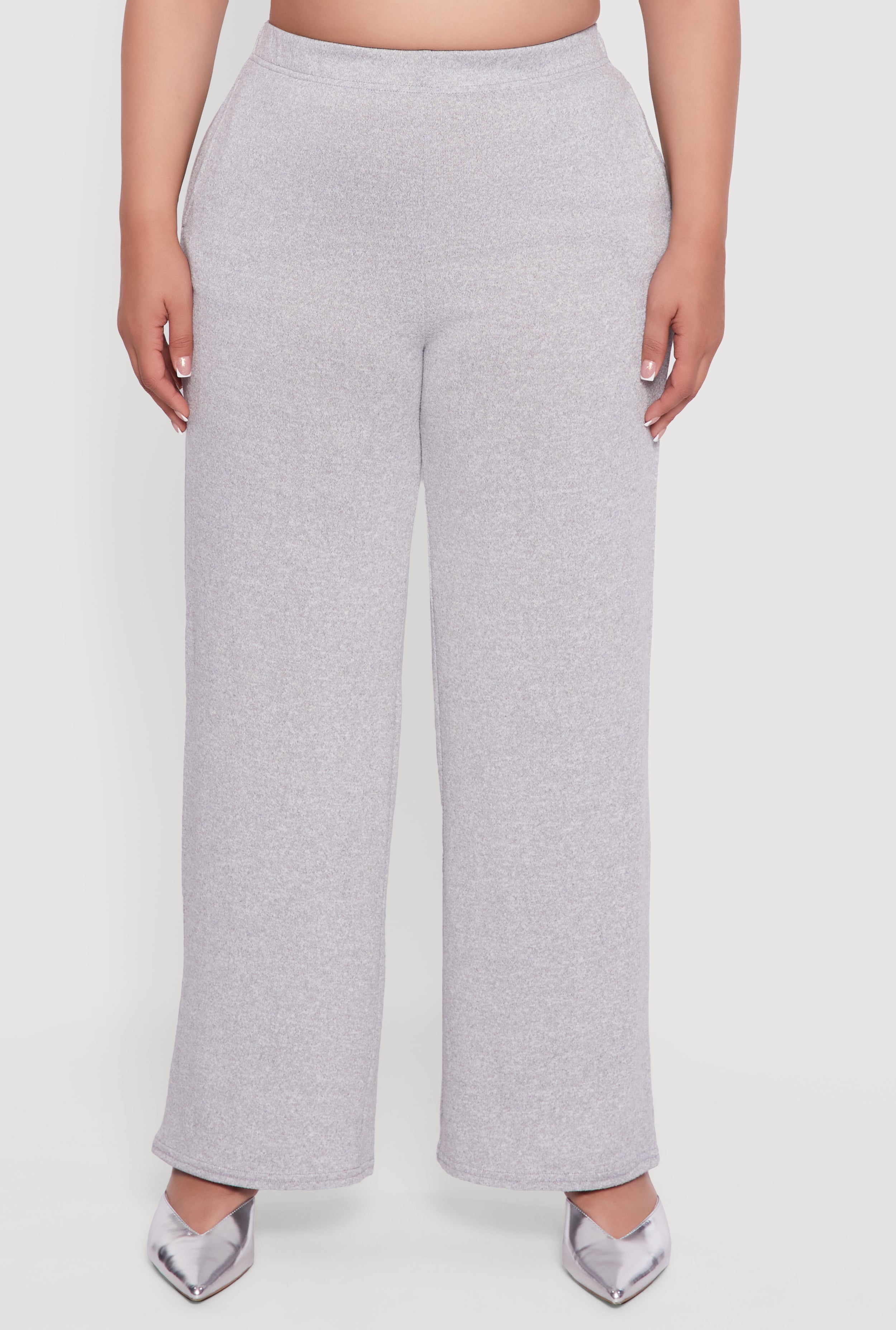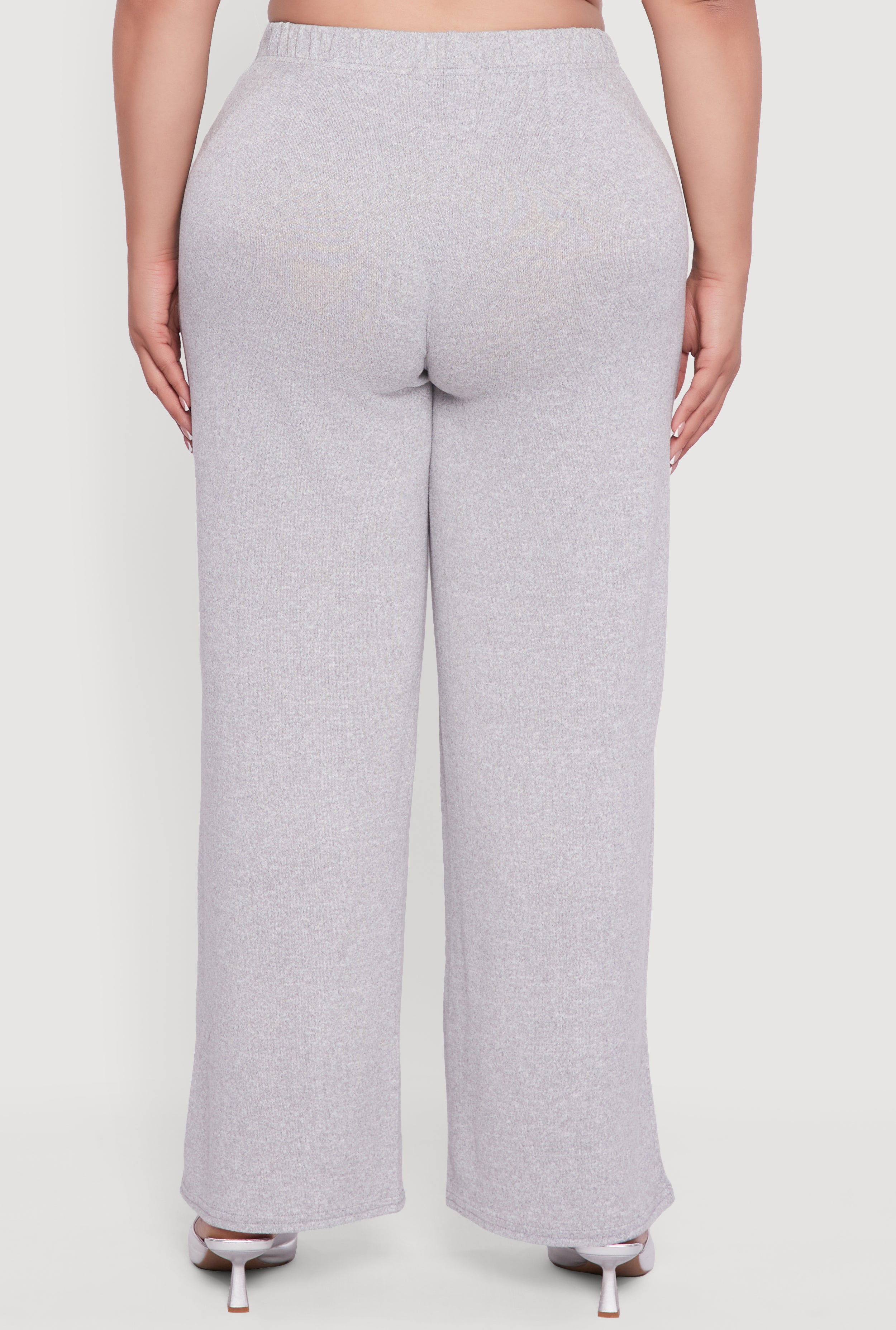 Plus Size High Waisted Brushed Knit Wide Leg Pants