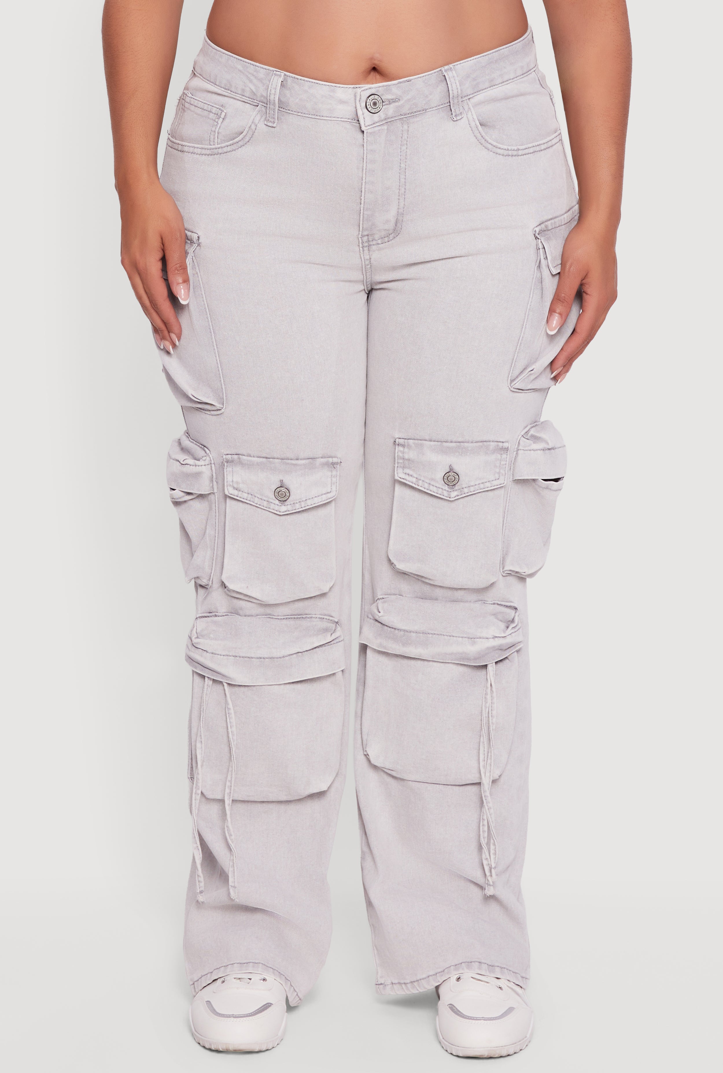 Step up your casual style game with these Plus Size VIP Acid Wash Straight Leg Cargo Jeans. Designed to flatter your curves with a high-waisted, classic fit, these jeans combine the edgy vibe of acid wash denim with the practicality of cargo pockets. Perfect for streetwear lovers who want comfort and style in one affordable package.