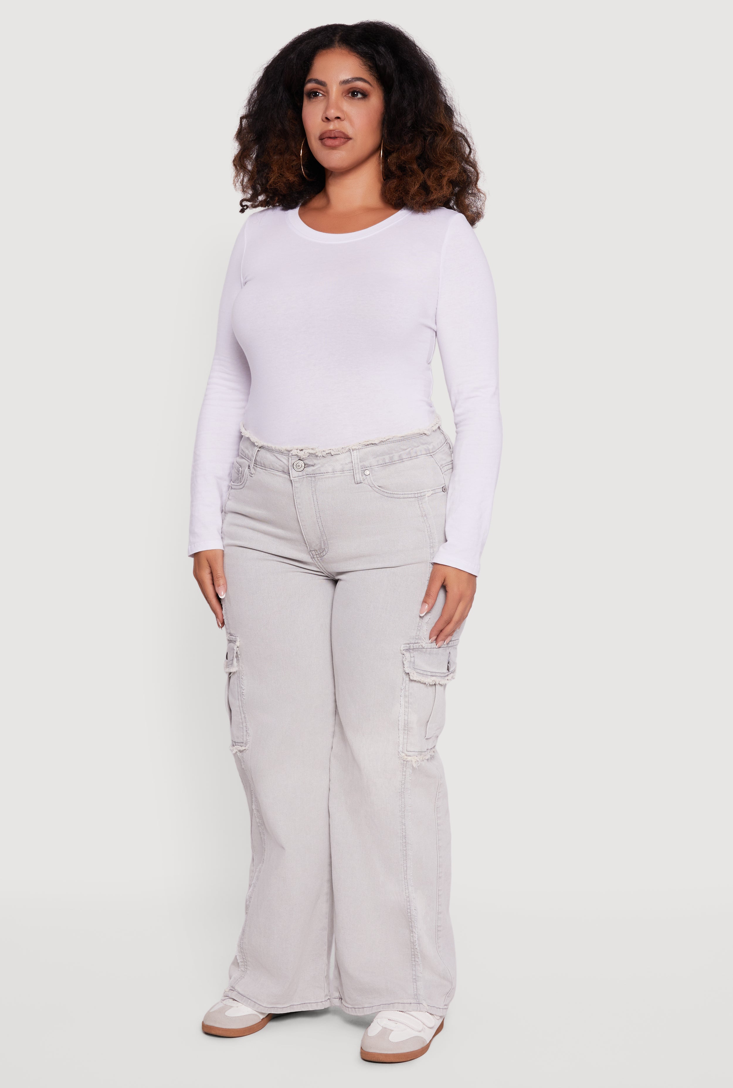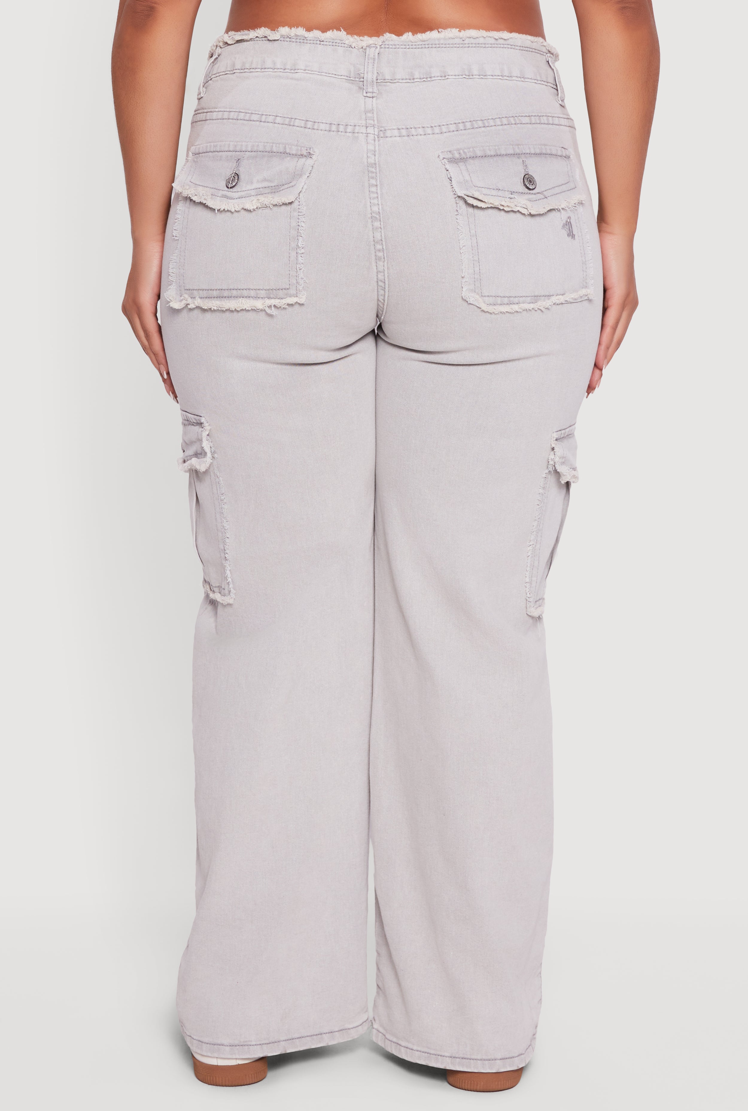 Step up your casual game with these Plus Size VIP Frayed Cargo Jeans. Designed with a classic fit and mid rise for all-day comfort, these straight-leg denim jeans bring a fresh twist to your everyday look. The frayed hems and cargo pockets add an edgy, laid-back vibe that’s perfect for those who love style without sacrificing ease. Whether you're out with friends or running errands, these jeans are your go-to for effortless cool and confidence.