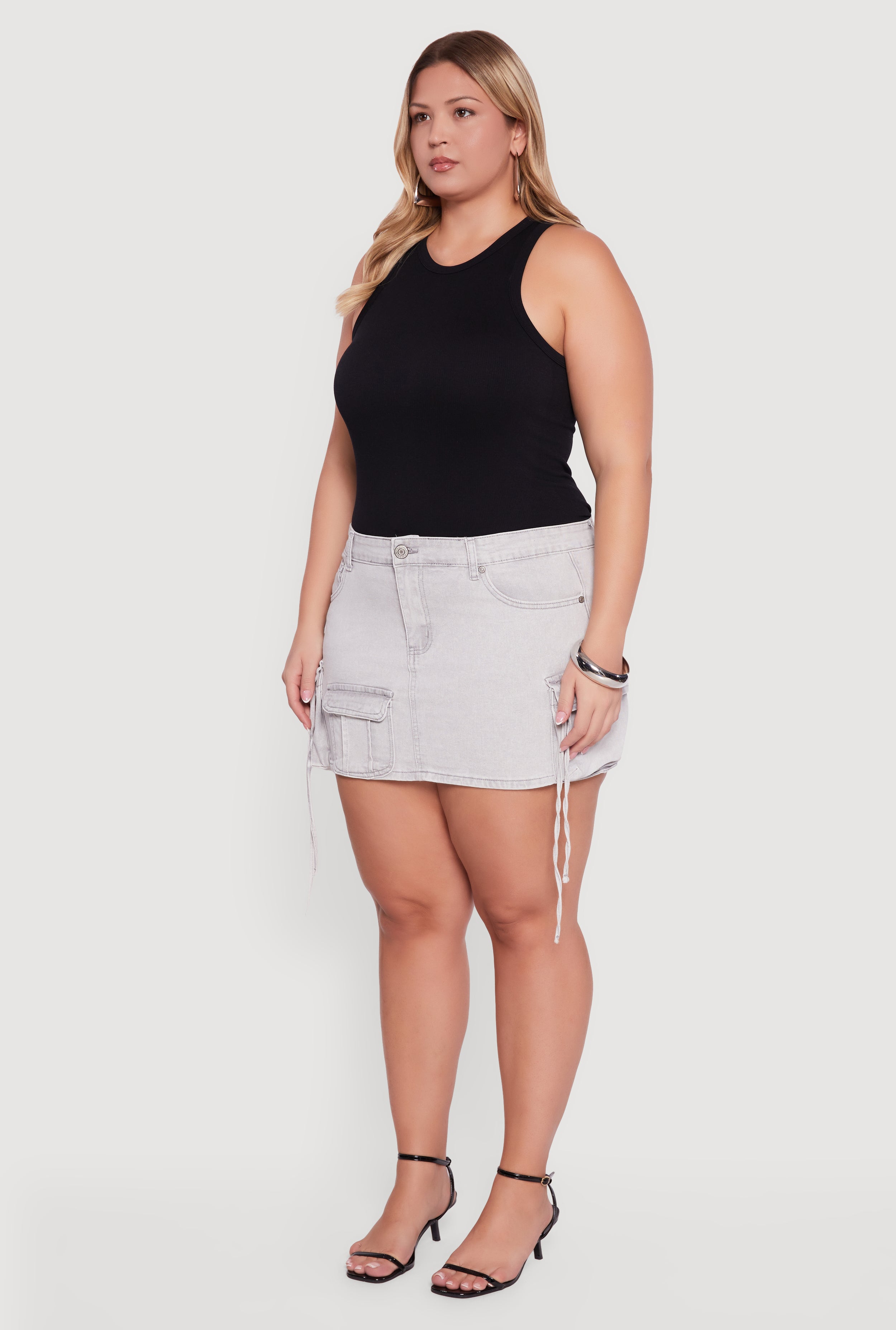 Step up your style game with the Plus Size VIP Mineral Wash Denim Utility Skirt. This mini denim skirt brings together the perfect mix of edgy utility vibes and comfy stretch for all-day wear. Featuring a mid rise and practical cargo pockets, it’s designed to keep your essentials close while flaunting your curves in a flattering fit. Whether you’re heading out for brunch or a casual day out, this skirt is your new go-to for effortless cool.