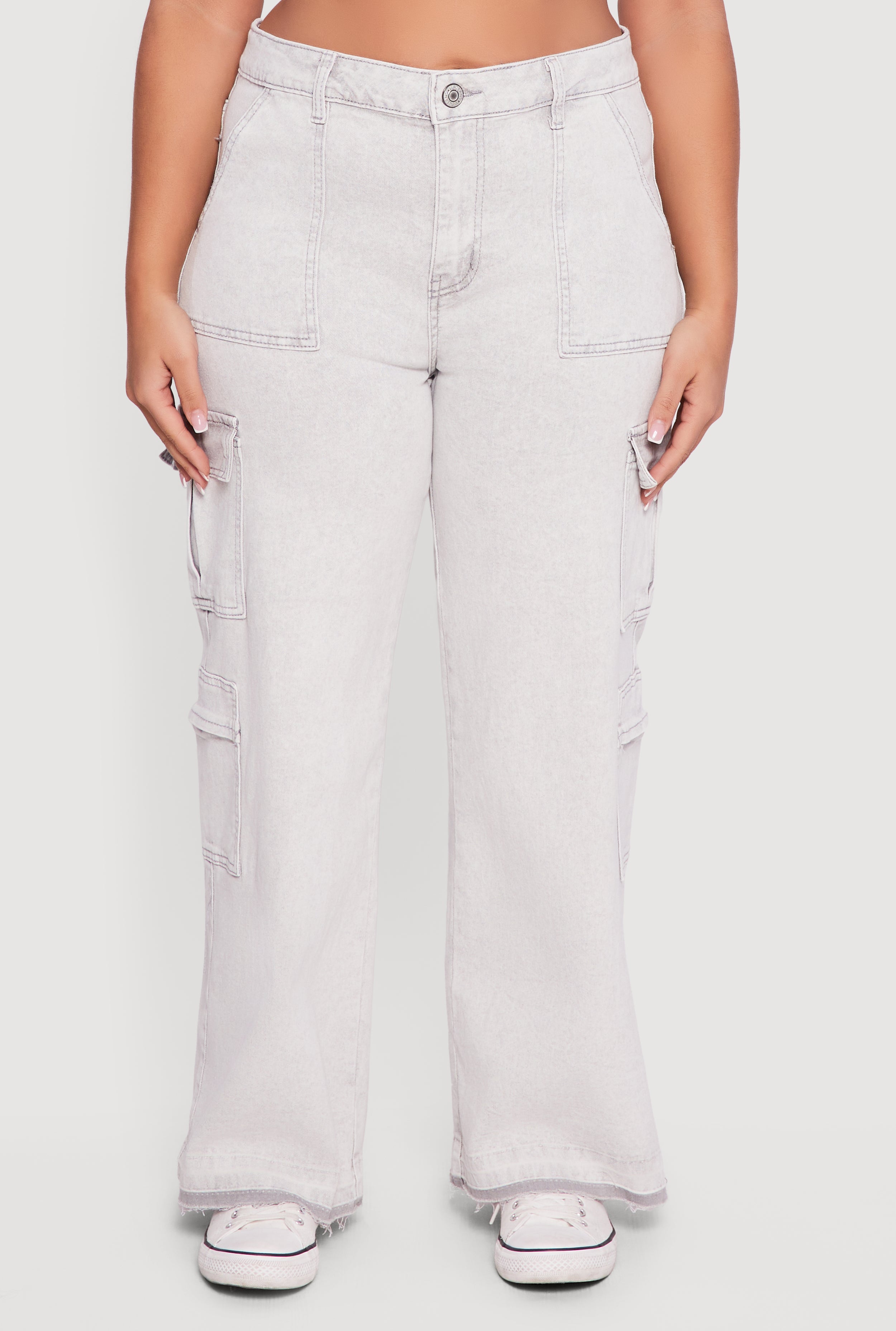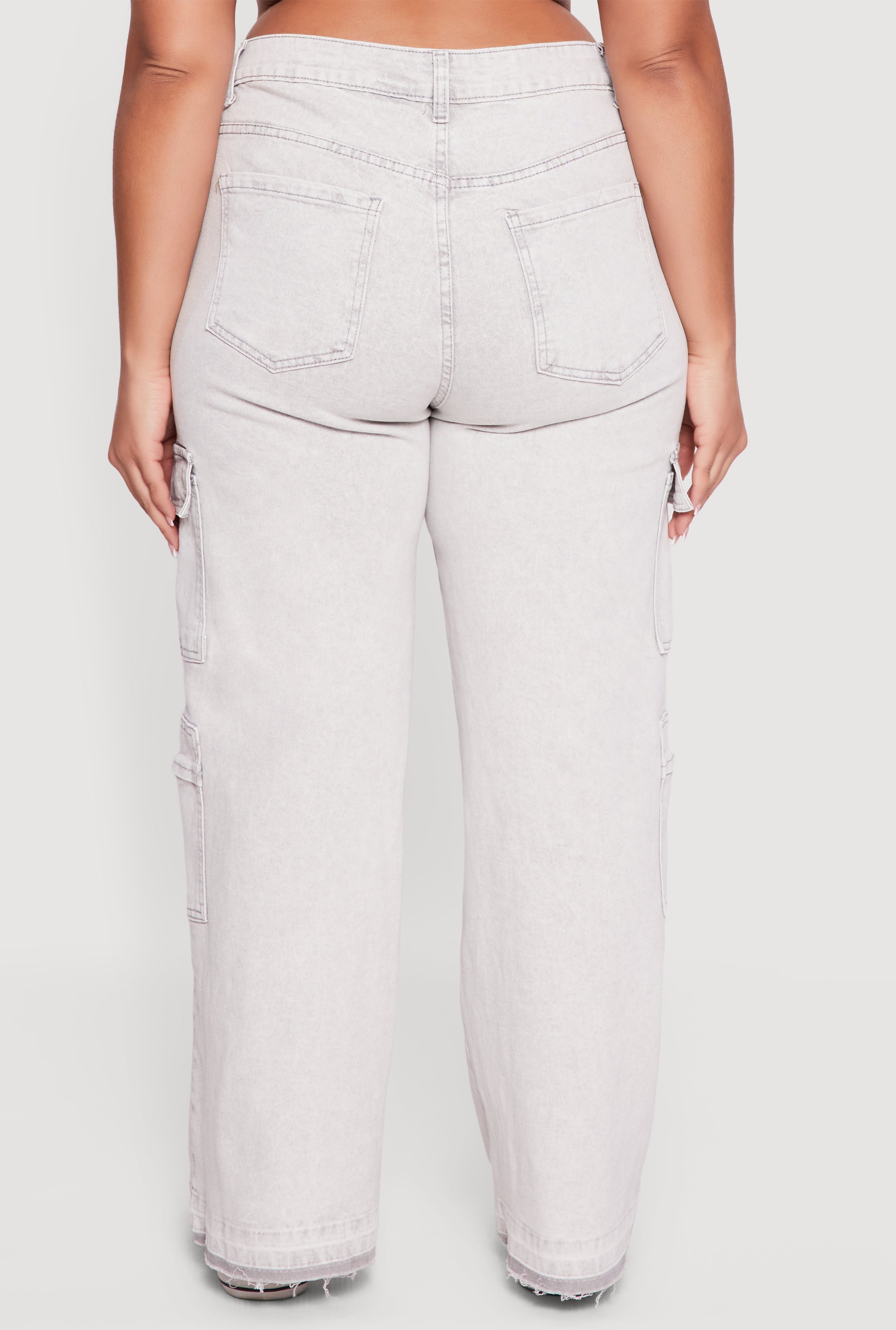 Step into effortless style with these Plus Size VIP Mineral Wash Raw Hem Cargo Jeans. Designed for the modern woman who loves comfort and trend, these high-waisted jeans feature a relaxed wide-leg fit and edgy raw hem detail. The soft mineral wash denim gives a vintage vibe while the cargo pockets add a cool, functional twist. Perfect for casual days when you want to feel confident and comfy without sacrificing style.