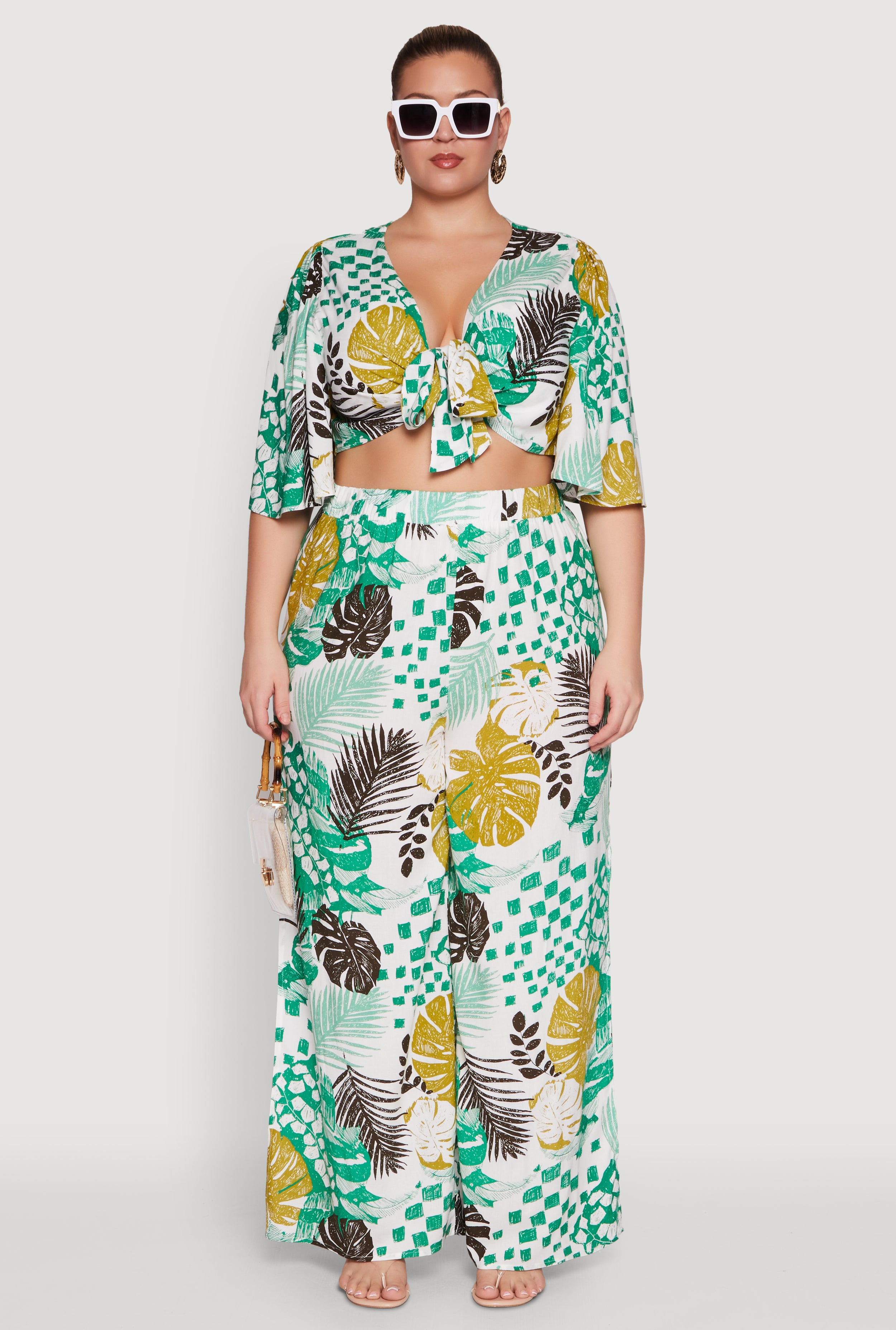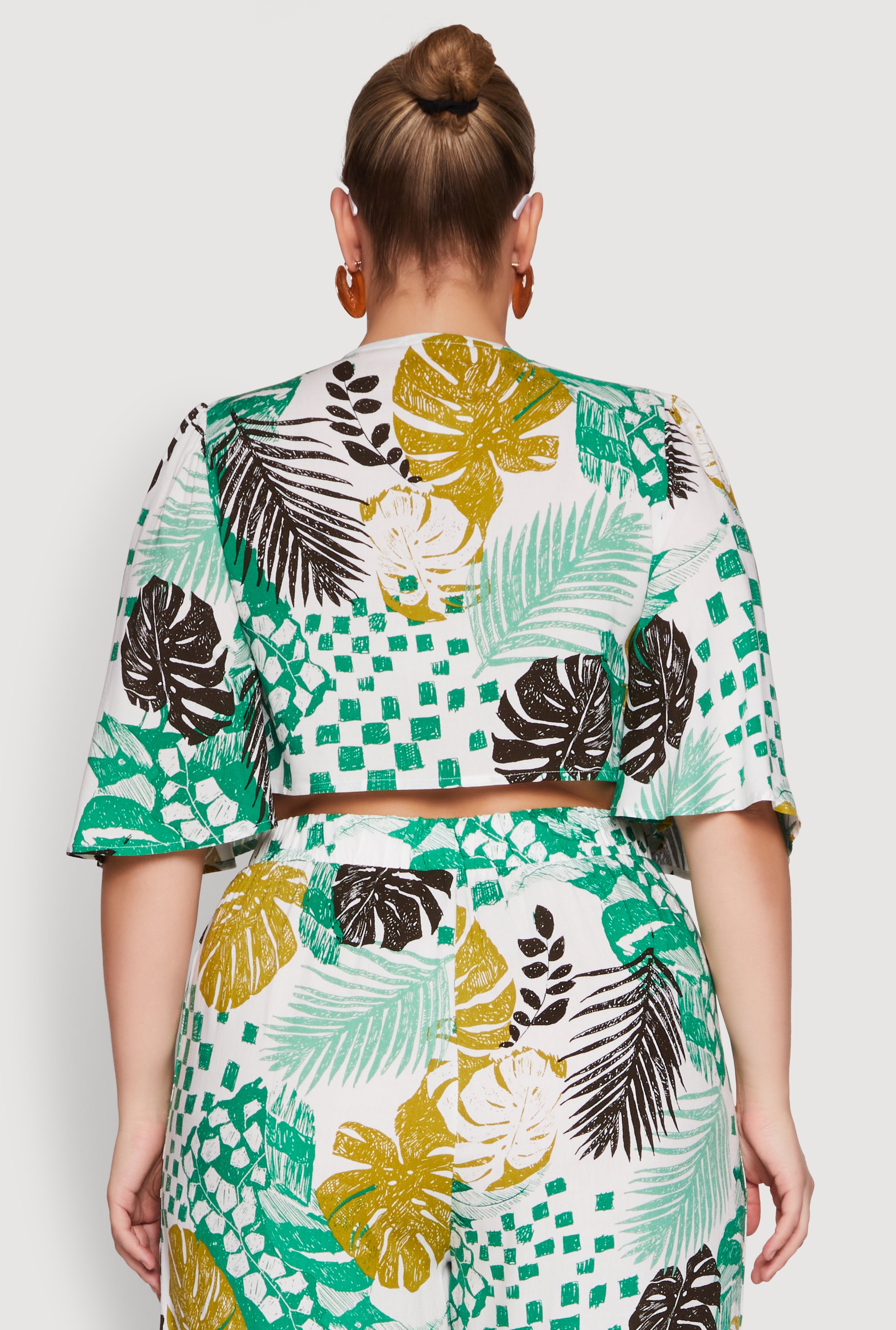 Elevate your wardrobe with our Plus Size Chic Tie Front Cropped Blouse featuring playful flutter sleeves and a daring plunge neckline. Designed for the confident woman who loves to turn heads, this blouse combines timeless style with a modern twist. Perfect for dressing up your favorite sets or making a statement on its own, it’s a must-have for your fashion arsenal. Effortlessly chic and irresistibly flattering, it’s your new go-to for everyday glam.