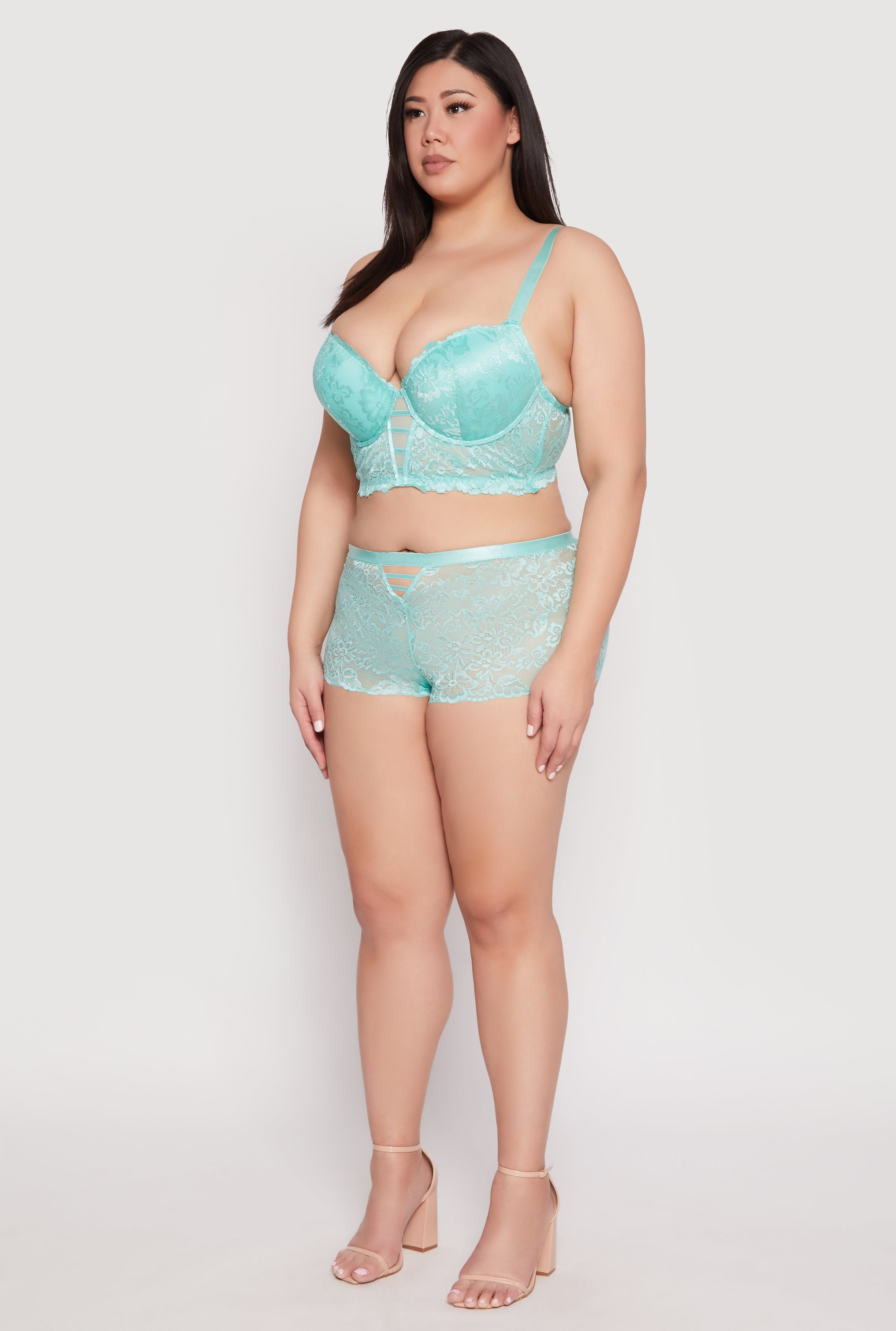 Step into confidence and style with our Plus Size Floral Lace Caged Plunge Longline Bra. Designed to make you feel fabulous, this eye-catching piece combines delicate lace with daring caging details for a look that’s both romantic and bold. Perfect for a special occasion or just because you deserve to treat yourself, this bra offers all-day comfort and a flawless fit. Embrace your curves and elevate your lingerie game with this must-have piece that’s as unique as you are.