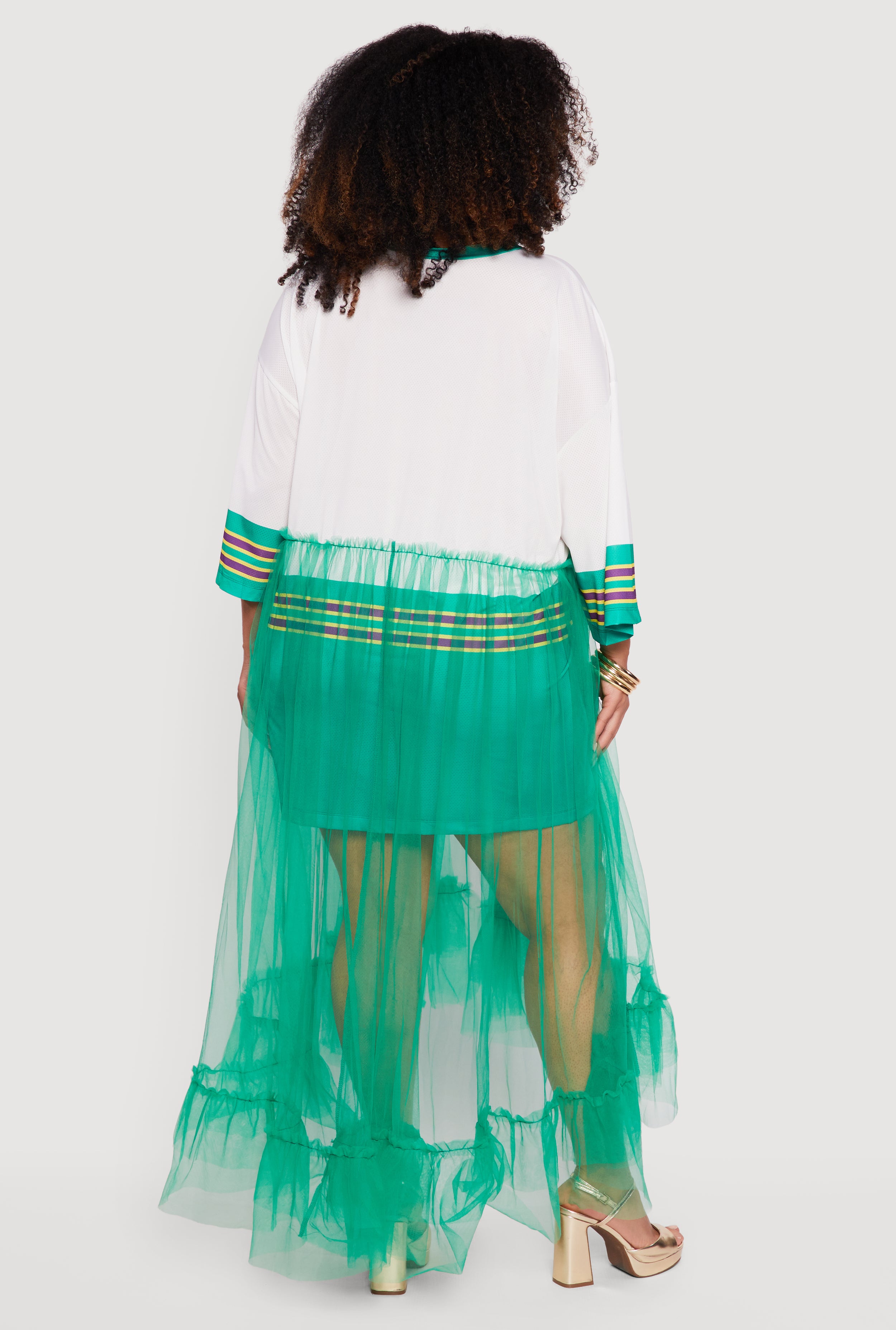 - Tulle flyaway layers create a playful, dynamic look