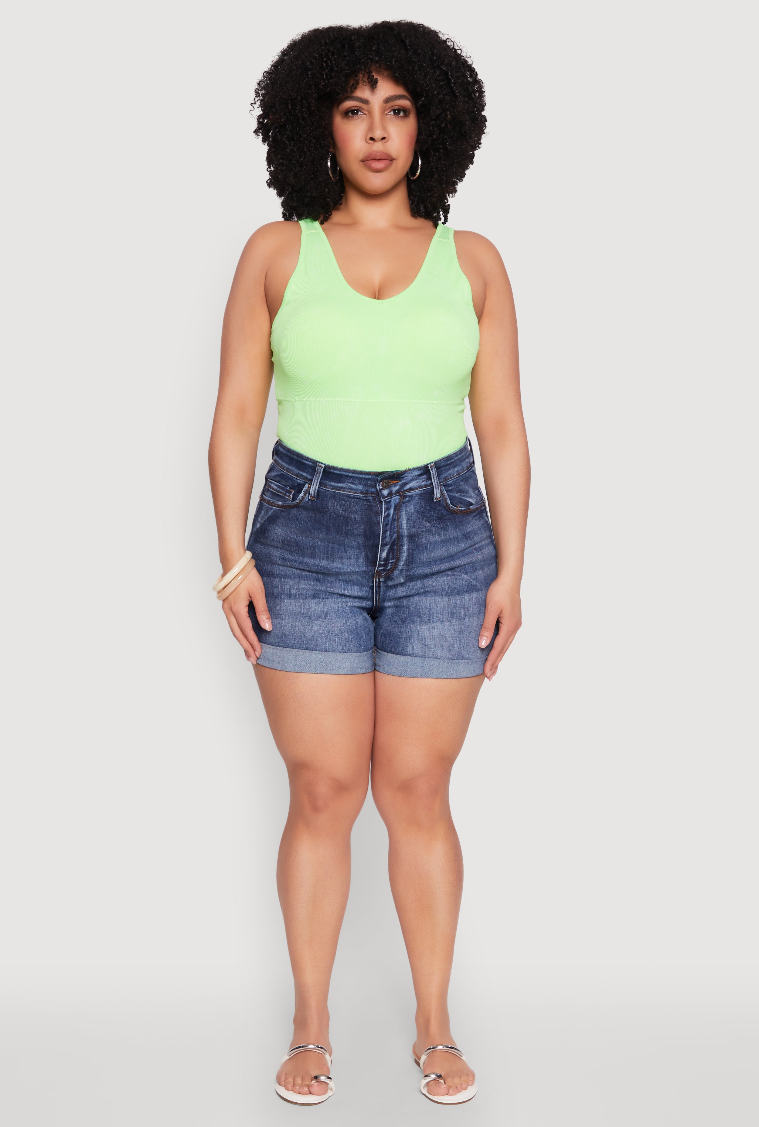 Elevate your everyday look with our Plus Size Seamless Mineral Wash Shelf Bra Tank Top. Designed for comfort and style, this sleeveless tank features a flattering V-neck and a built-in shelf bra for all-day support. Its classic fit and timeless silhouette make it a versatile addition to your wardrobe, perfect for layering or wearing solo. Crafted from soft ribbed knit, it offers a seamless feel that moves with you. Whether you're lounging at home or heading out with friends, this tank top is your new go-to for effortless chic.