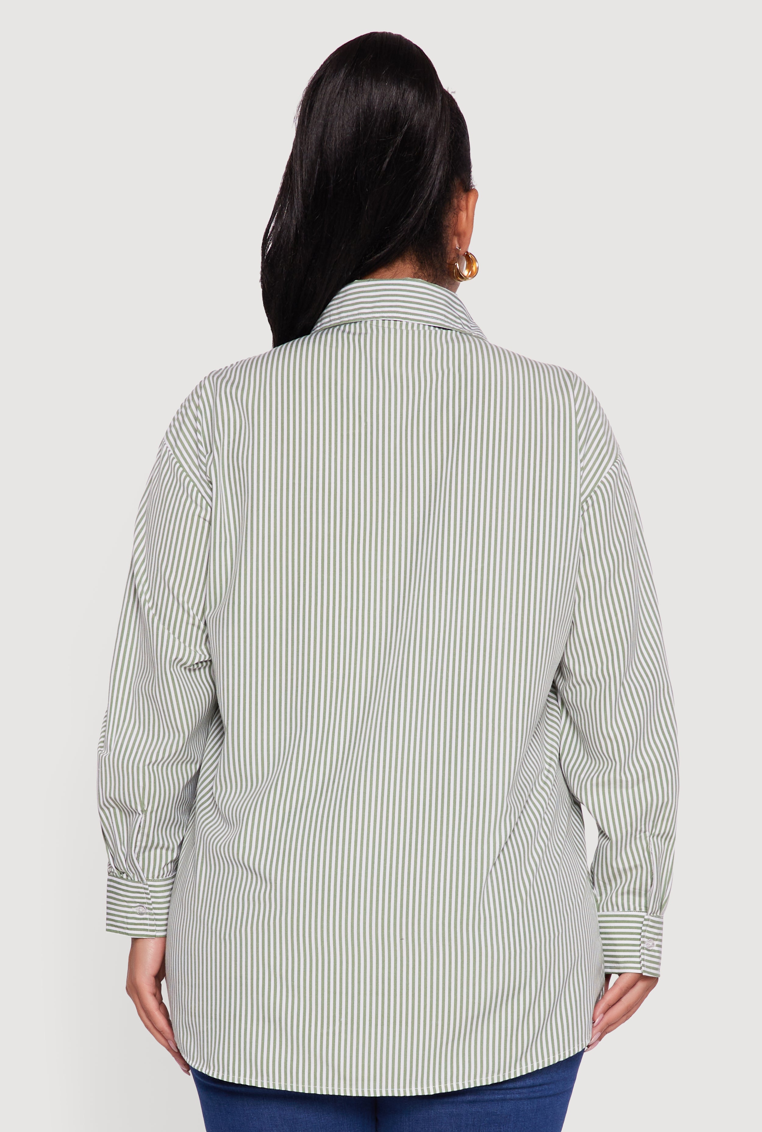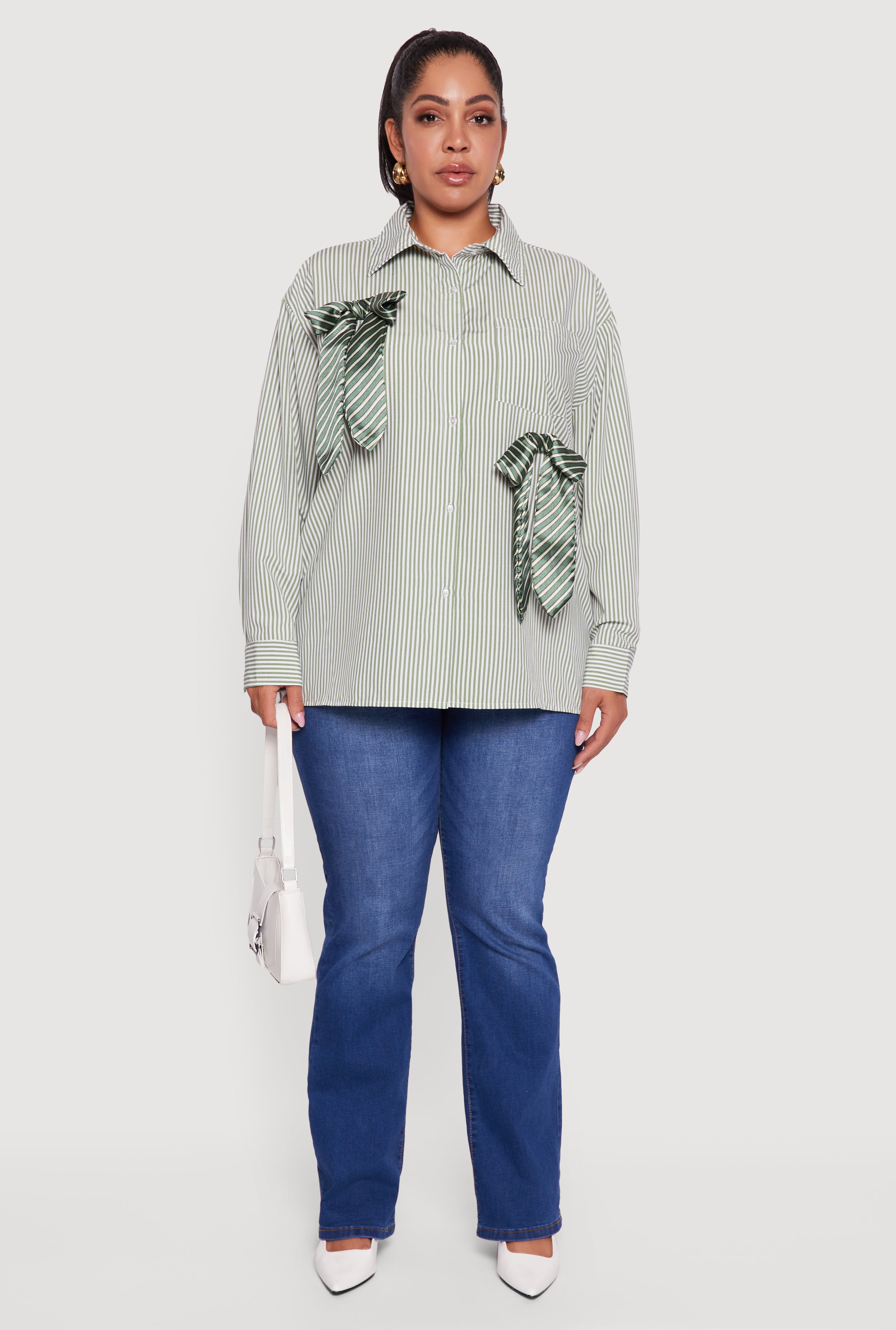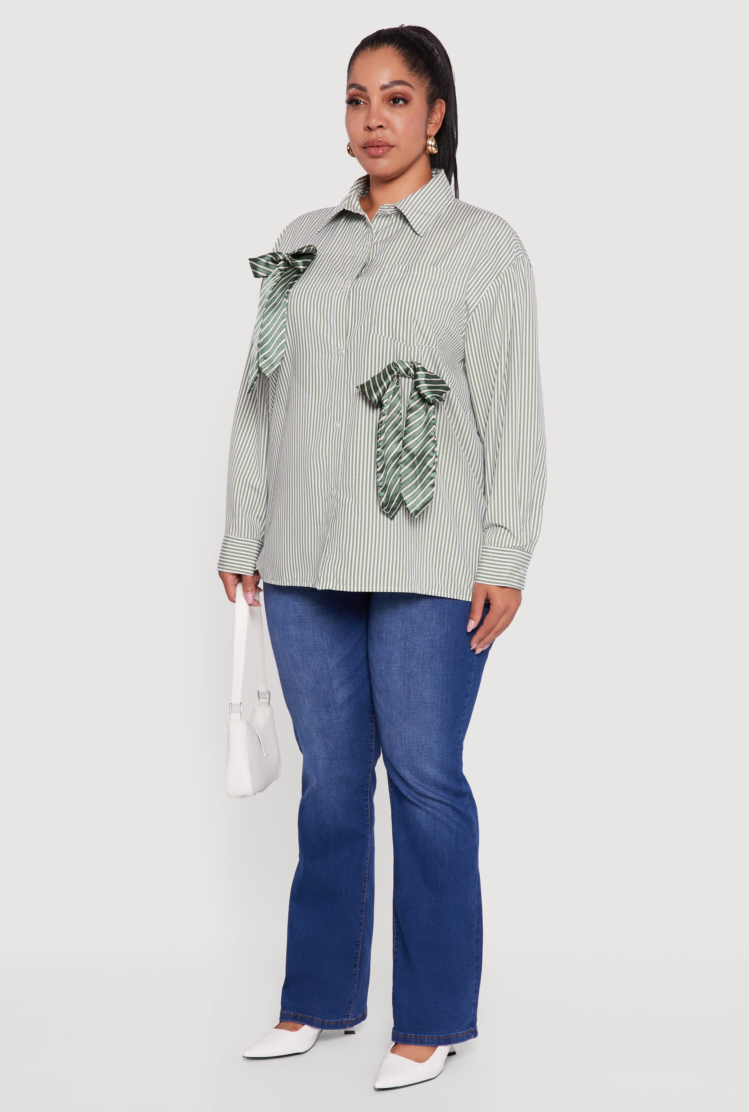 Step up your casual game with this Plus Size Striped Bow Detail Button Down Shirt. Featuring a timeless classic fit and crisp poplin fabric, it brings effortless style and comfort to your everyday wardrobe. The playful bow detail adds a fun twist to the traditional button front, making it perfect for brunch dates, office vibes, or weekend hangouts. Long sleeves and a sharp shirt collar balance the look with a polished touch that never goes out of style.