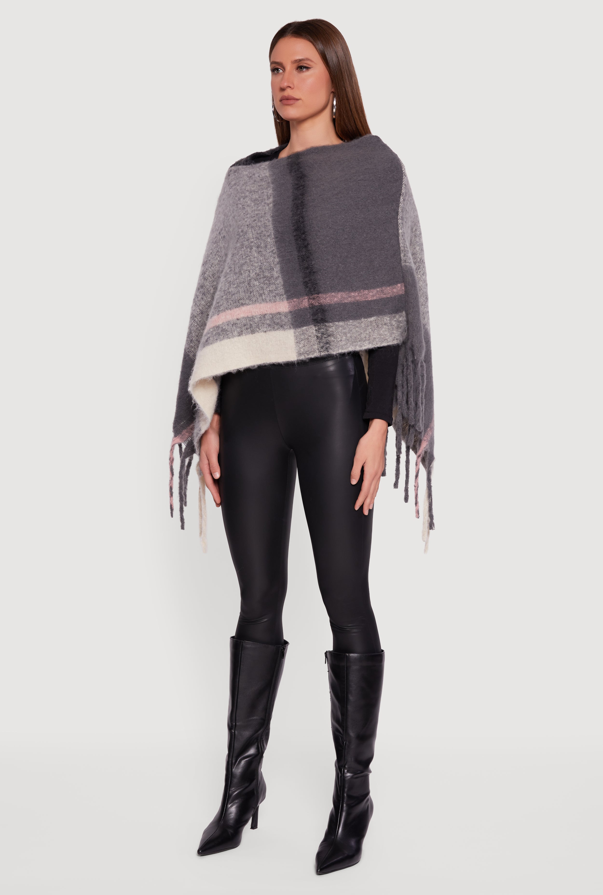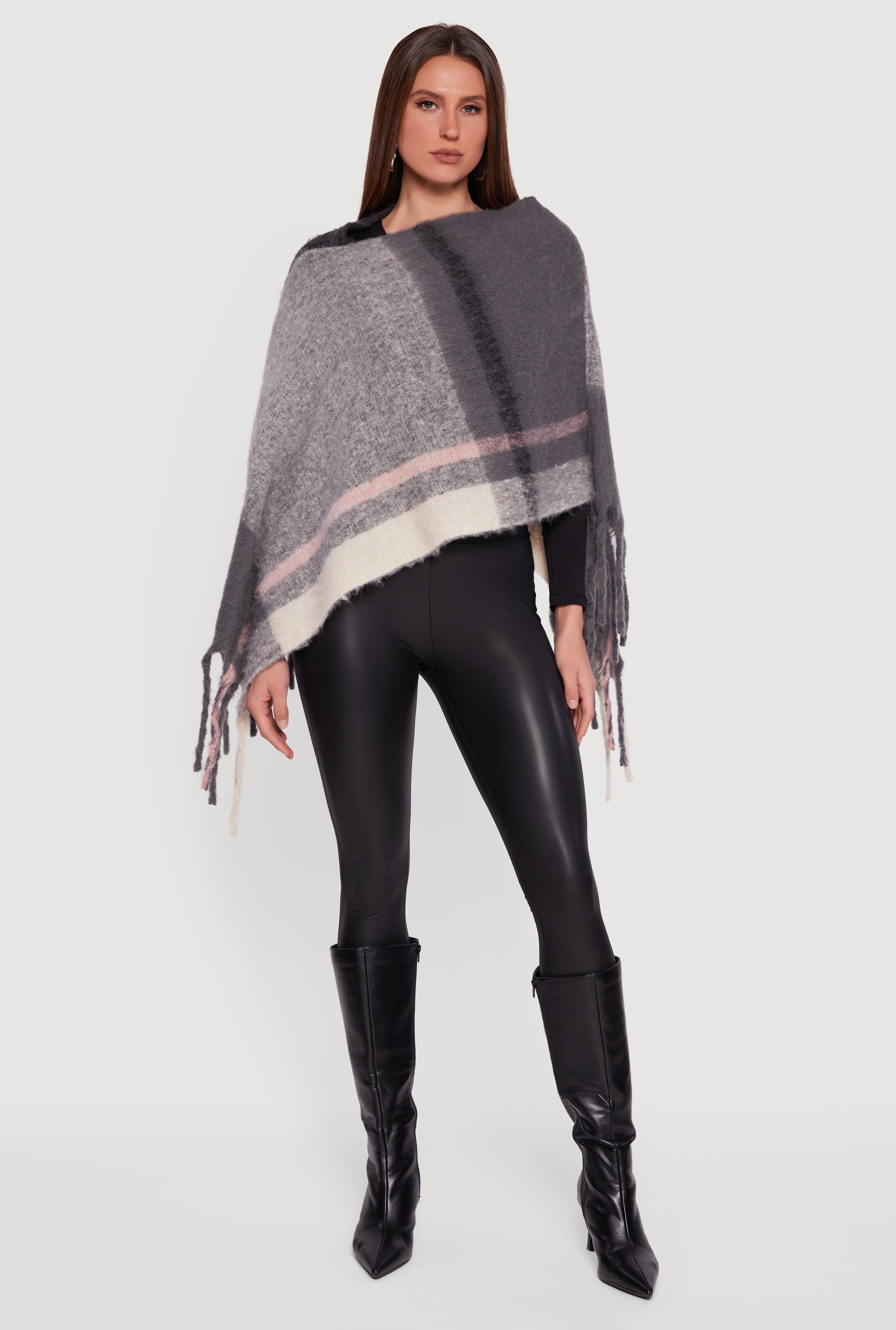Cozy up in style with this Marled Plaid Pattern Boucle Fringe Poncho, designed to bring effortless charm to your casual wardrobe. Featuring a timeless classic fit and a high neckline, this poncho blends the soft texture of boucle fabric with eye-catching marled and plaid patterns. The fringe detailing adds a playful touch that keeps your look fresh and fun, perfect for layering on those crisp days when you want to stay warm without sacrificing style.