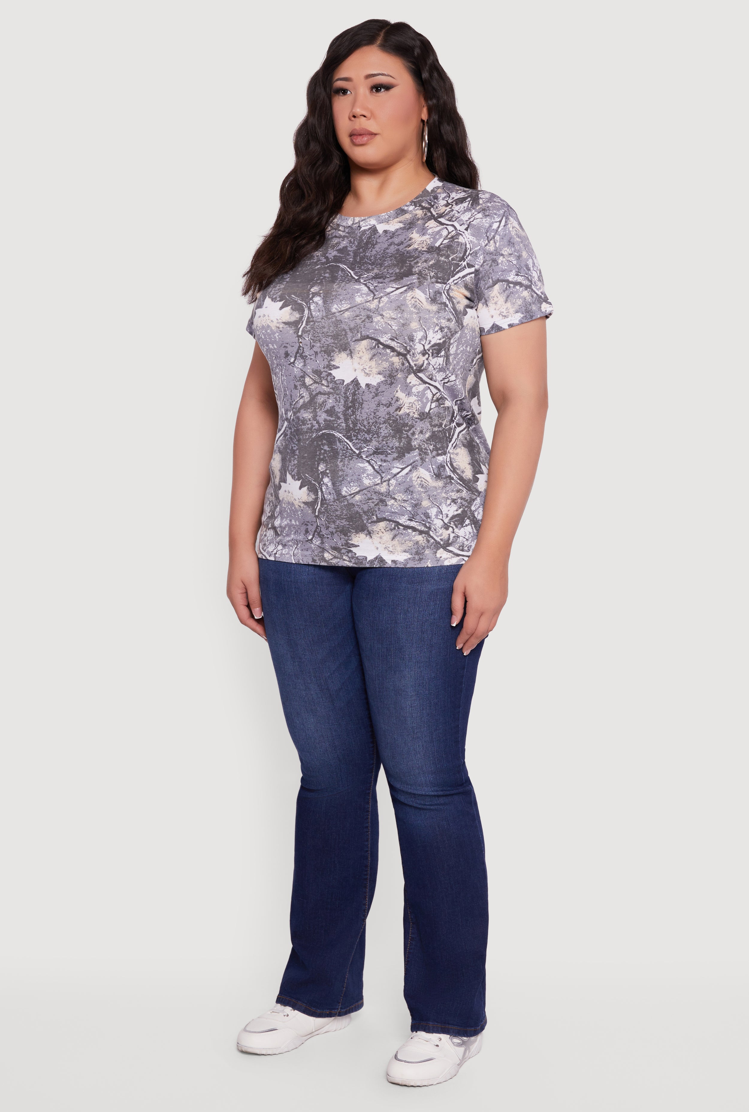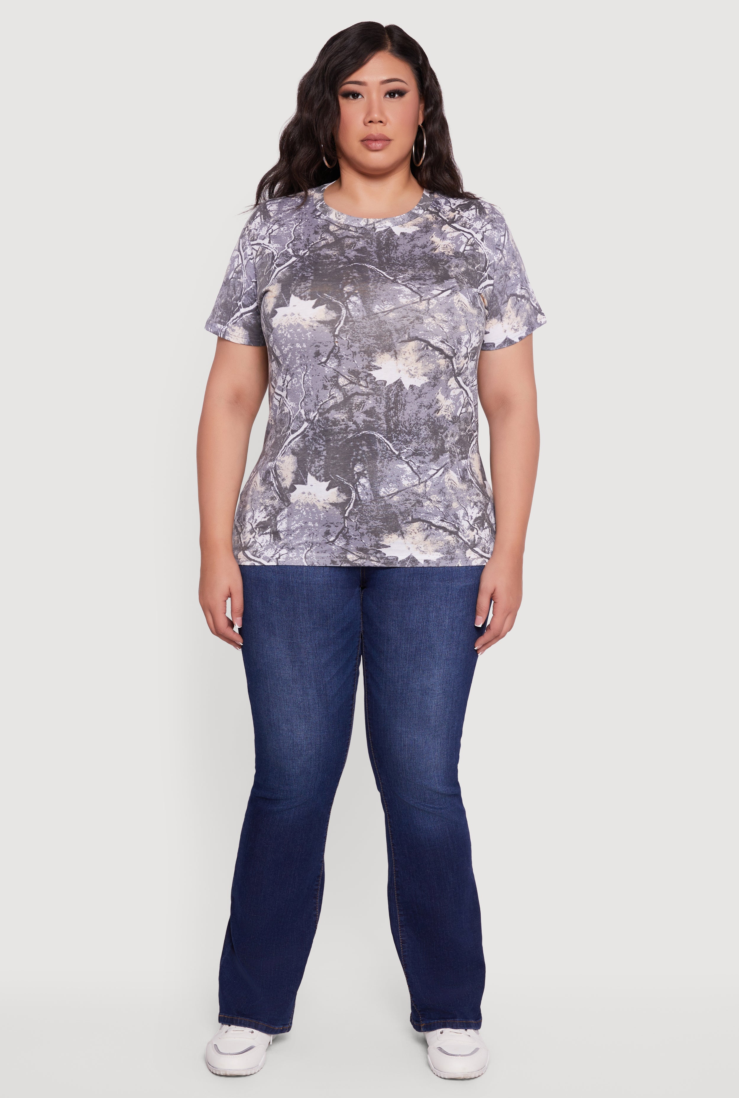 Step up your casual game with the Plus Size Hunter Camo Short Sleeve Crew Neck Tee. Designed with a classic fit that flatters your curves and a timeless crew neck, this tee brings the cool, edgy vibe of hunter's camo straight to your wardrobe. Perfect for everyday wear, it pairs effortlessly with your favorite jeans or shorts for an easygoing look that never goes out of style.