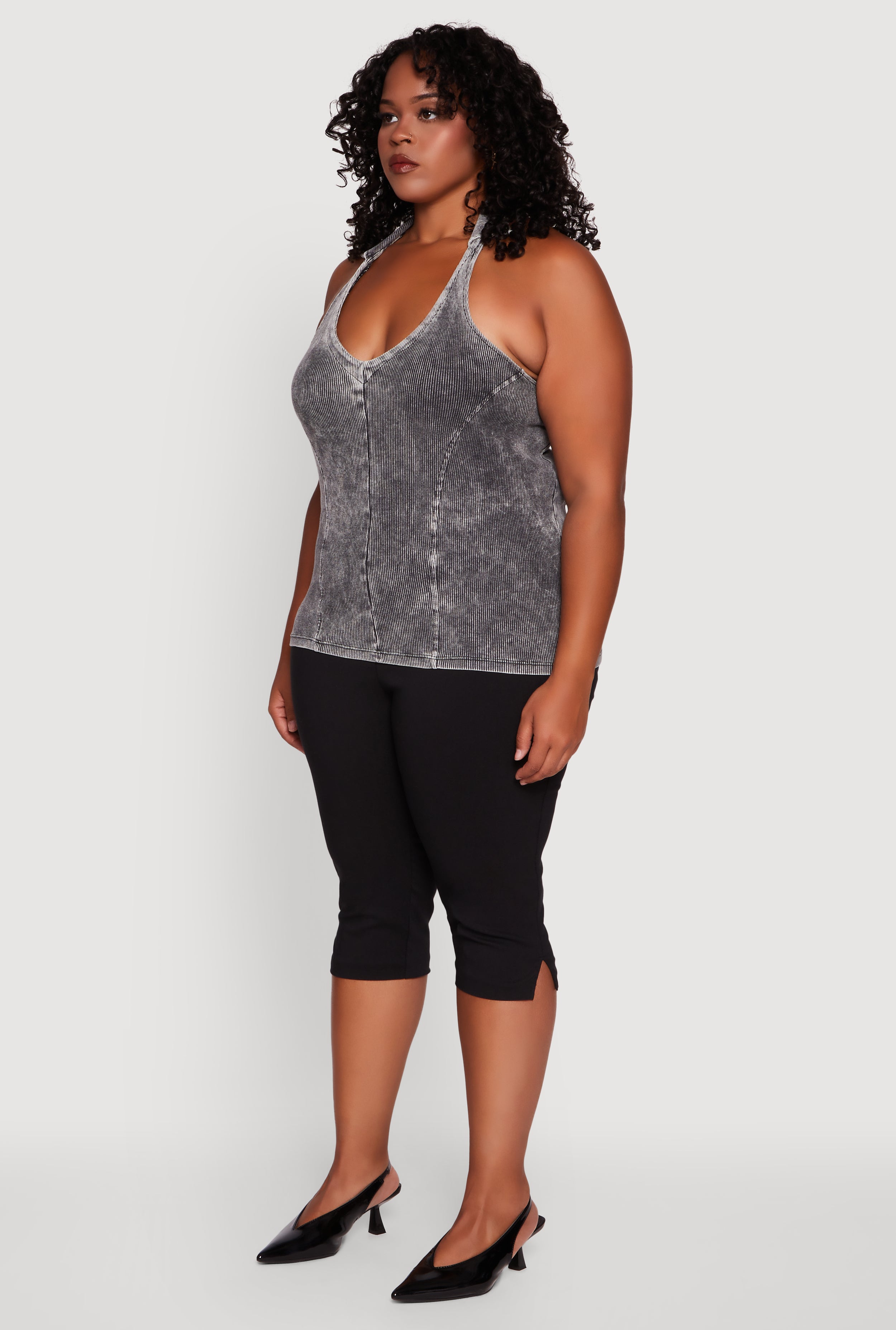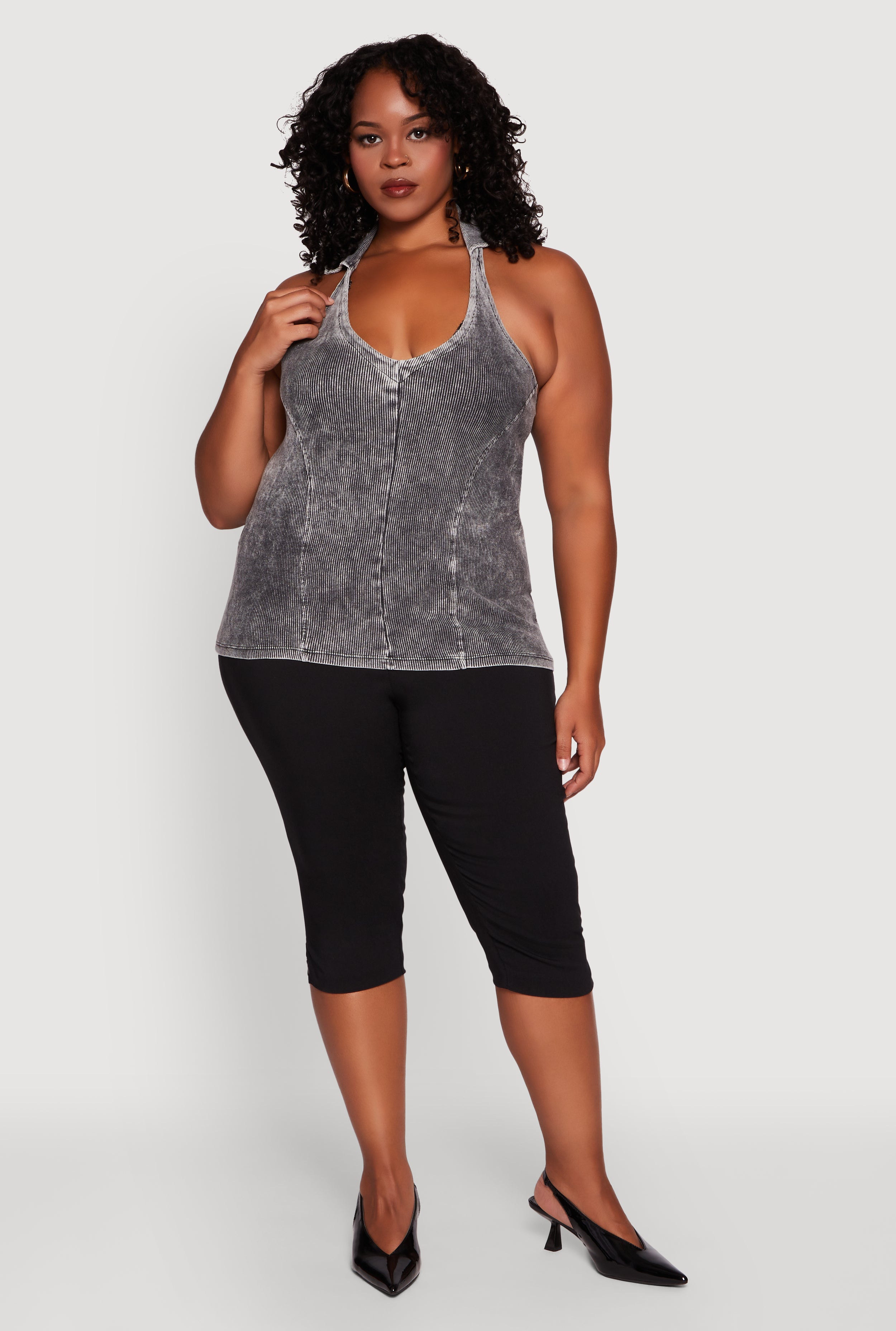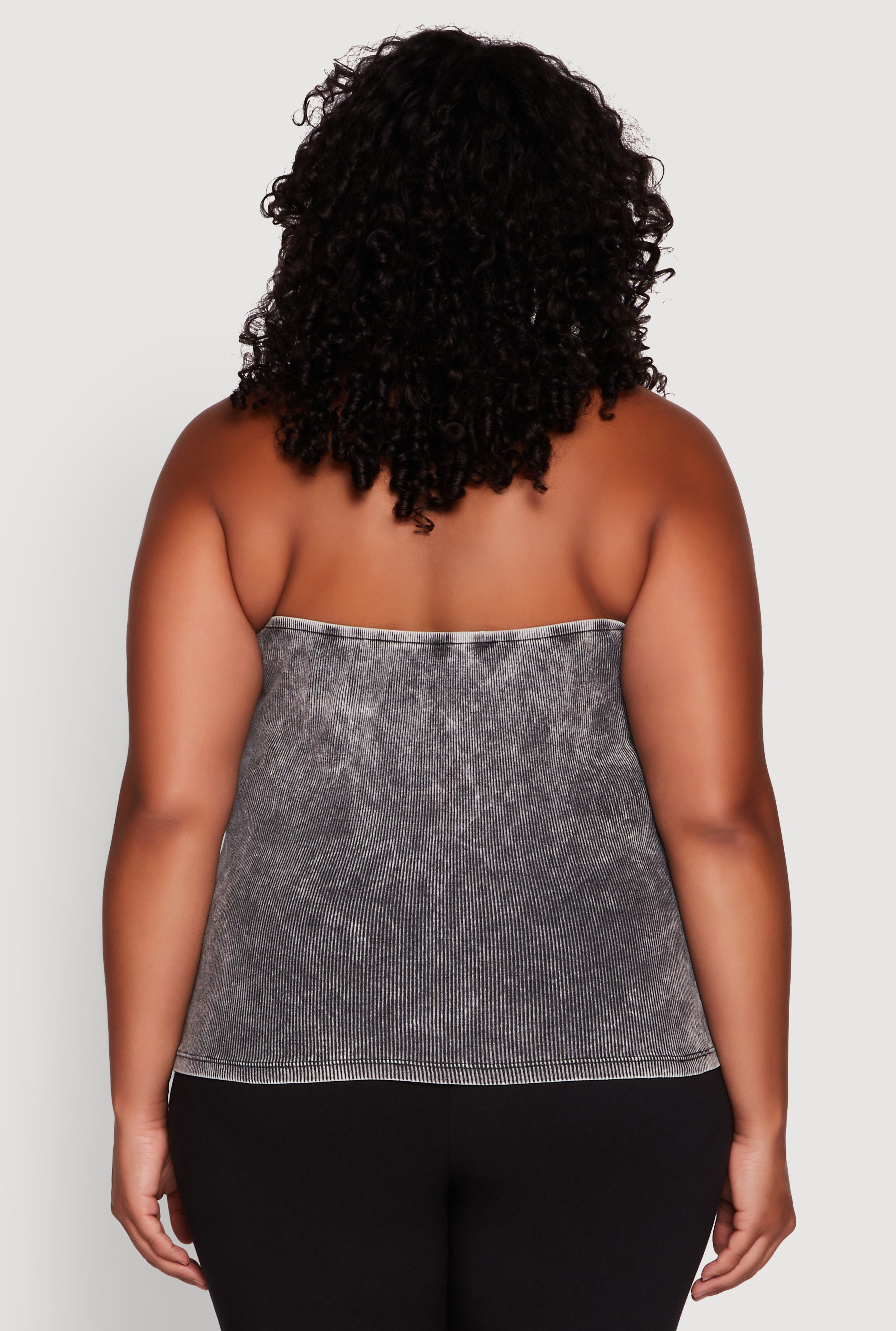 Plus Size Ribbed Knit Acid Wash Halter Top