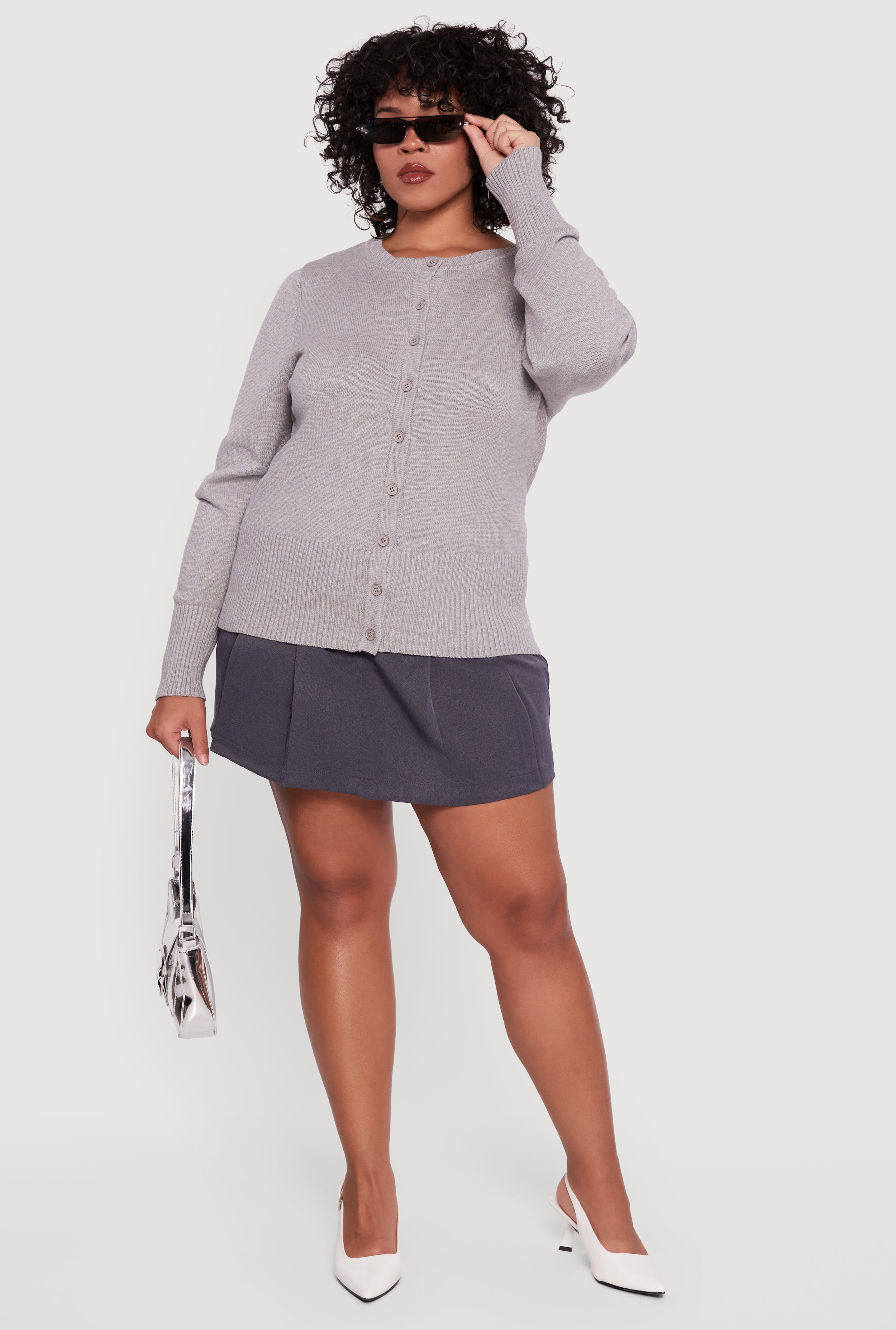 Elevate your everyday look with this Plus Size Button Front Long Sleeve Cardigan. Designed with a classic fit and crafted from soft ribbed knit, this cardigan offers a timeless silhouette that feels as good as it looks. Whether you're heading to the office or keeping it casual, the crew neck and solid color make it a versatile layering piece you'll reach for again and again.