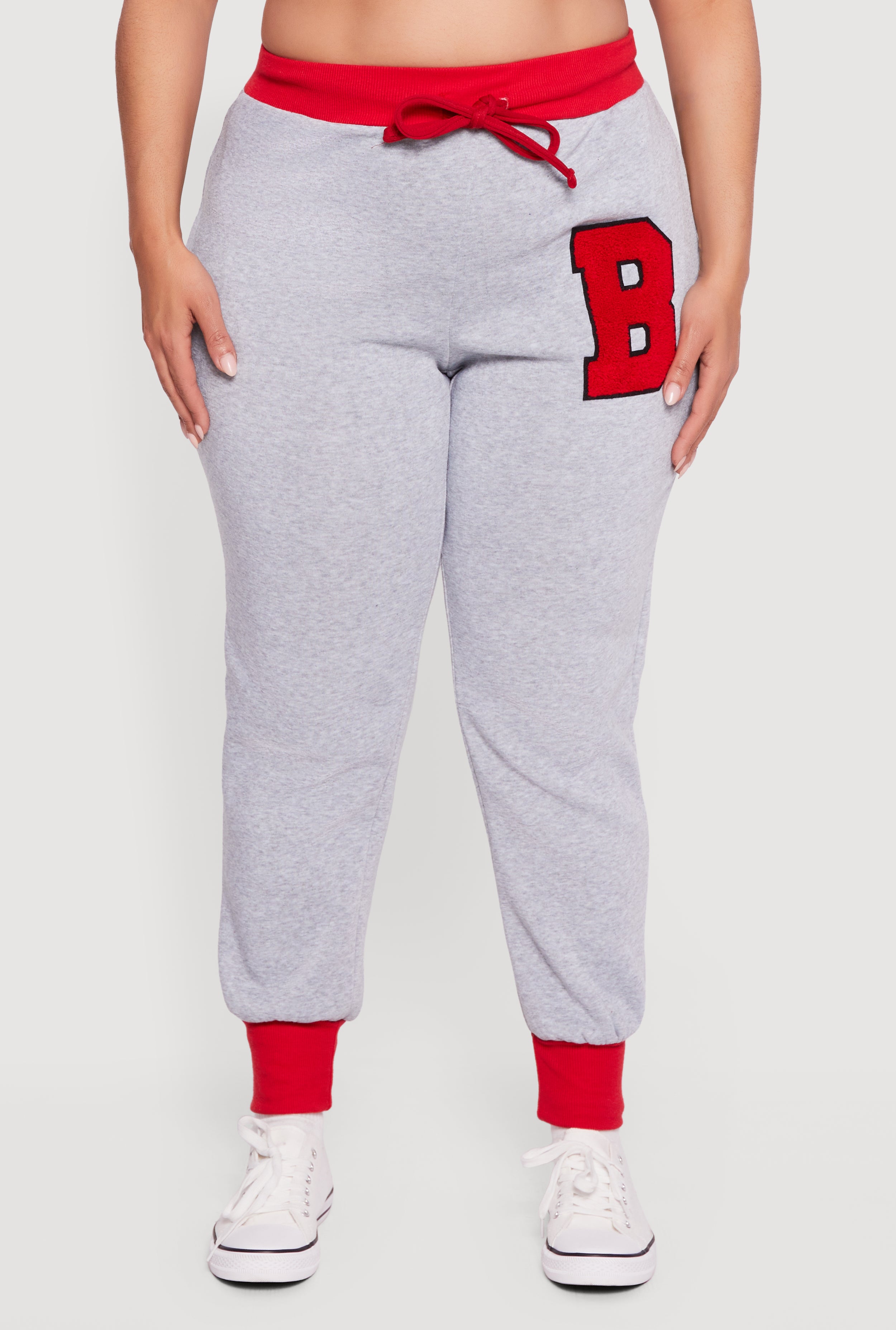 Step up your cozy game with these Plus Size Chenille B Initial Patch Graphic Joggers. Designed to hug your curves with a slim, high-waisted fit, these joggers blend comfort and style effortlessly. The soft chenille and fleece fabric keeps you warm without sacrificing breathability, while the trendy B initial patch adds a playful, personalized touch. Perfect for casual days when you want to look cute and feel comfy, these ankle-length joggers feature a tapered leg and adjustable drawstring waist for the perfect fit every time.