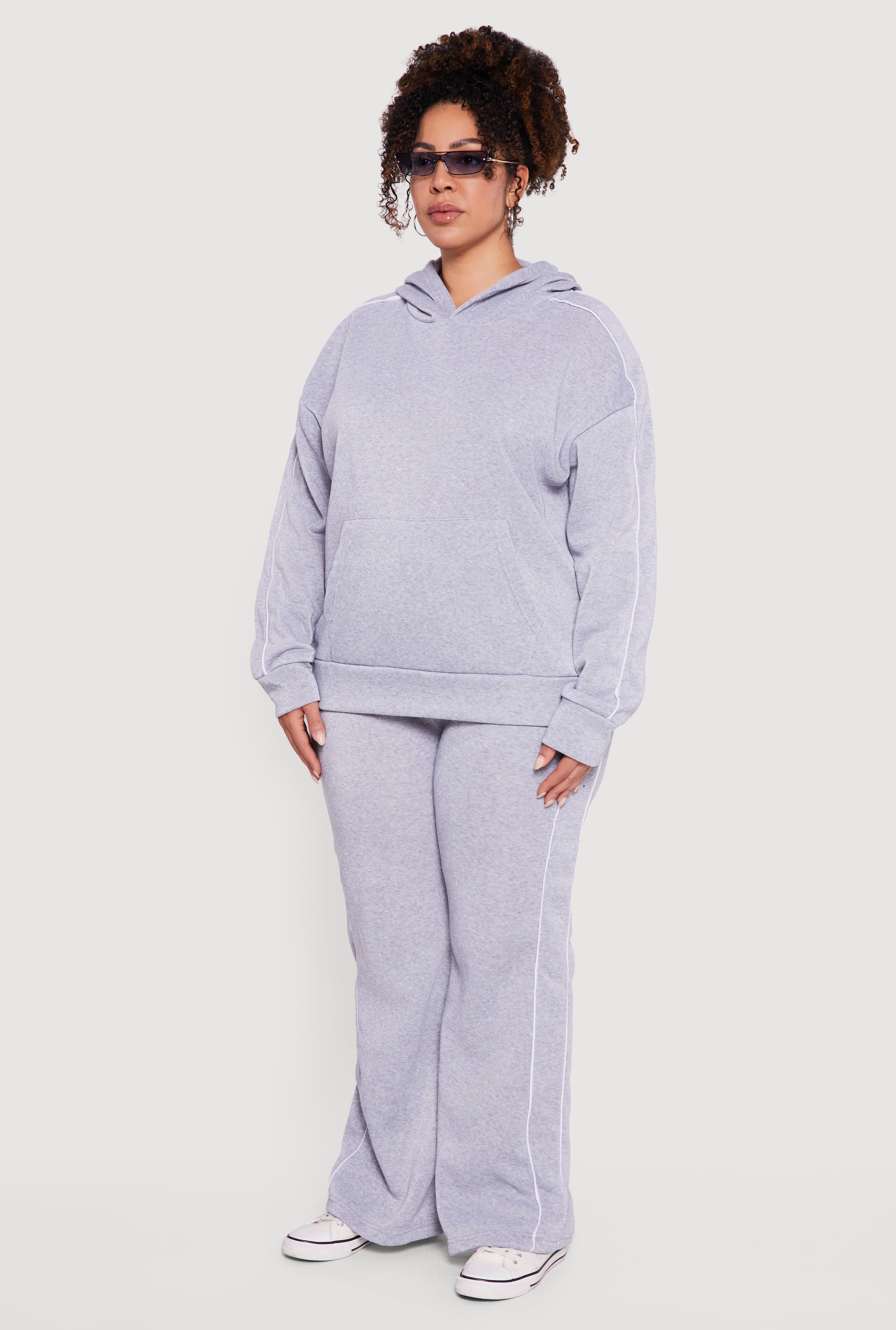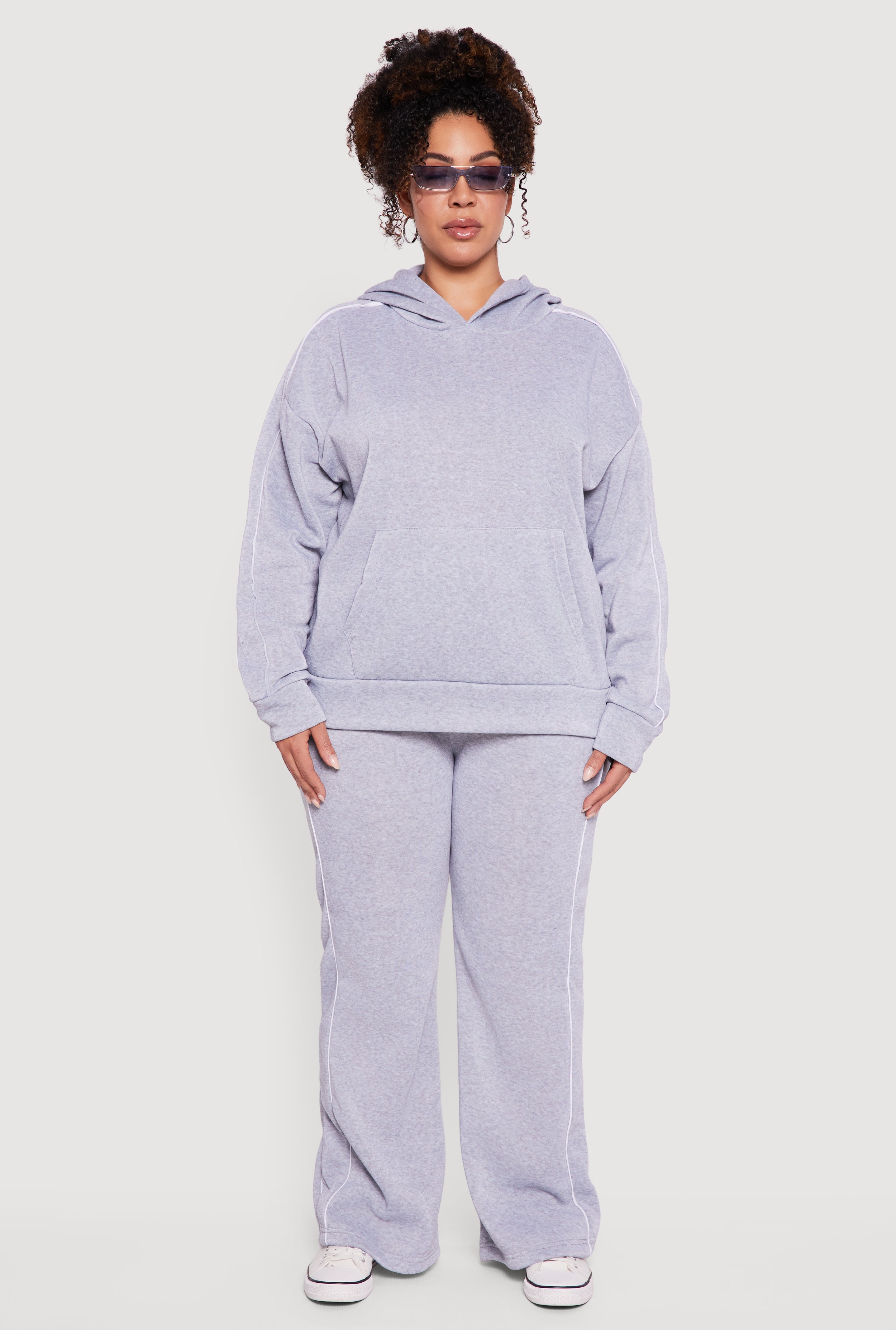 Stay cozy and stylish in this Plus Size Contrast Trim Hooded Sweatshirt. Designed with a classic fit that flatters every curve, this sweatshirt features a hooded neckline and trendy contrast trim for a fresh, sporty vibe. Crafted from soft fleece, it promises warmth and comfort whether you're lounging at home or out and about. The drop shoulder and blouson long sleeves add a relaxed feel, while kangaroo pockets keep your hands warm and essentials close. Perfect for casual days when you want to look effortlessly cool.