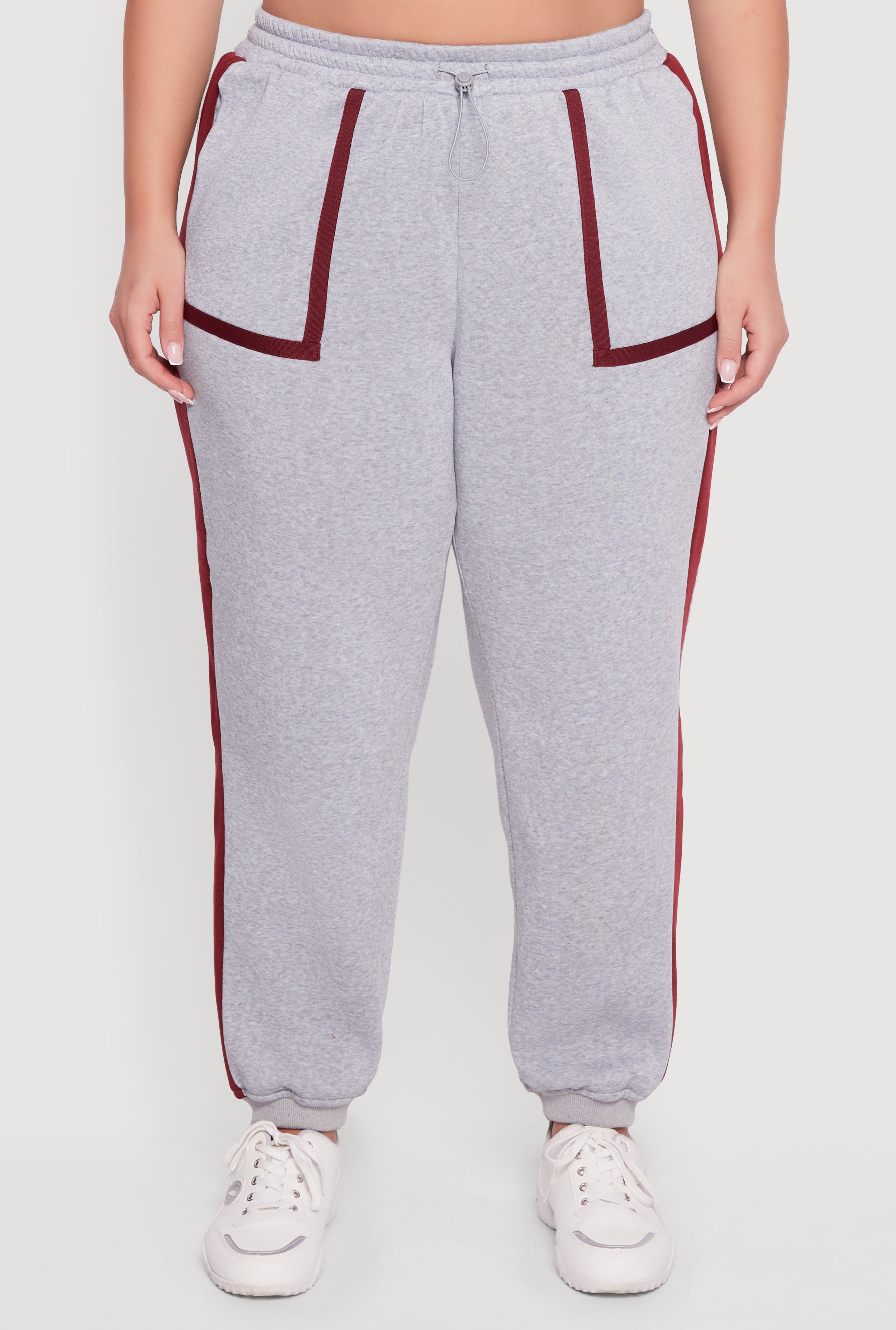 Step up your casual game with these Plus Size Contrast Trim Pocket Joggers featuring bold side stripes that scream stylish comfort. Designed with a high-waisted, relaxed fit and cozy fleece fabric, these joggers are your new go-to for chill days or athleisure vibes. The toggle drawstring lets you customize the fit, while handy pockets keep essentials close. Perfect for lounging, running errands, or casual hangouts, these ankle-length tapered joggers blend comfort and cool effortlessly.