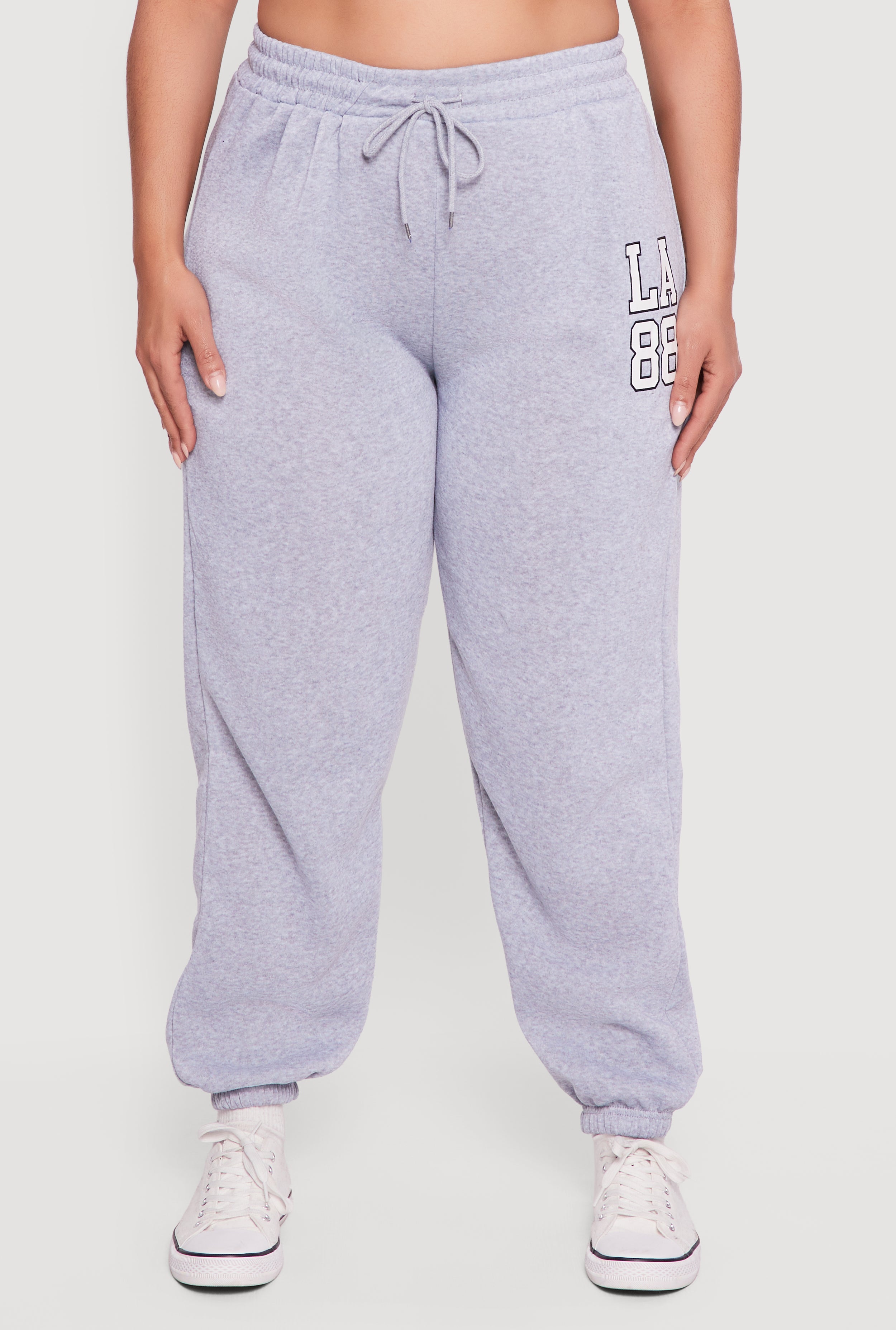 Step up your casual game with these Plus Size High Waisted LA 88 Graphic Sweatpants. Designed for comfort and style, these sweatpants feature a trendy graphic print and a flattering high waist that hugs your curves just right. The drawstring waist lets you customize your fit while the tapered ankle length adds a modern touch. Made from cozy fleece, they are perfect for lounging, running errands, or casual hangouts with friends. Embrace effortless style and all-day comfort with these must-have sweatpants.