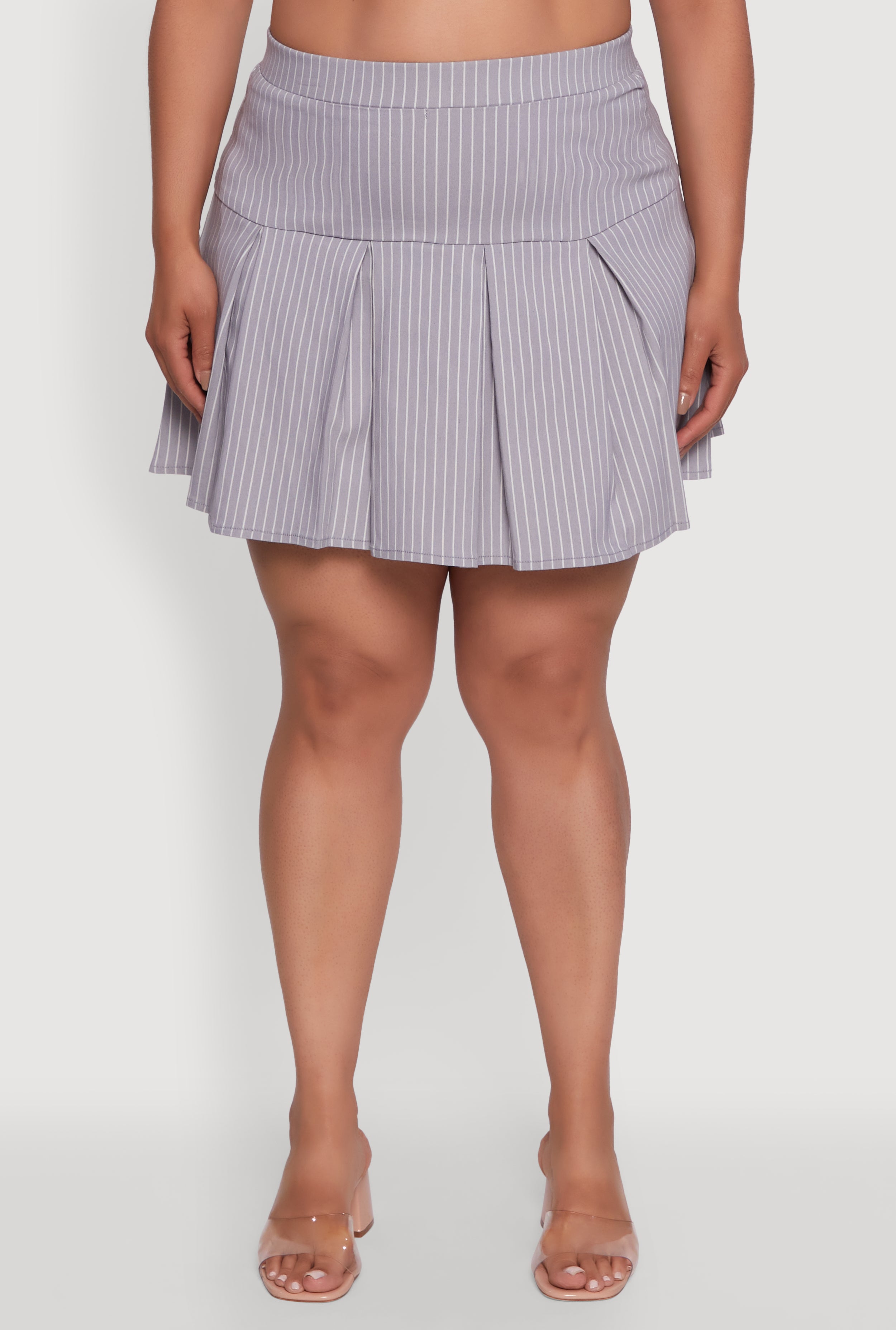 Step out in style with the Plus Size Hyperstretch Pinstripe Mini Pleated Skirt, designed to keep you comfy and confident all day long. Its hyperstretch fabric moves with you, while the classic pinstripe pattern adds a fresh twist to your casual looks. Perfect for those who want to blend playful pleats with a flattering mini length, this skirt is your new go-to for effortless cool vibes.