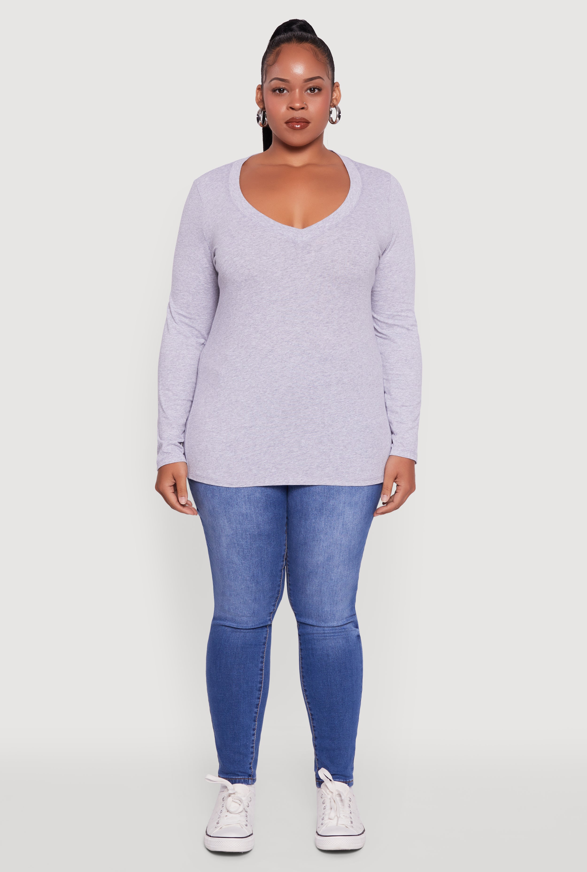 Plus Size Long Sleeve V-Neck Tee