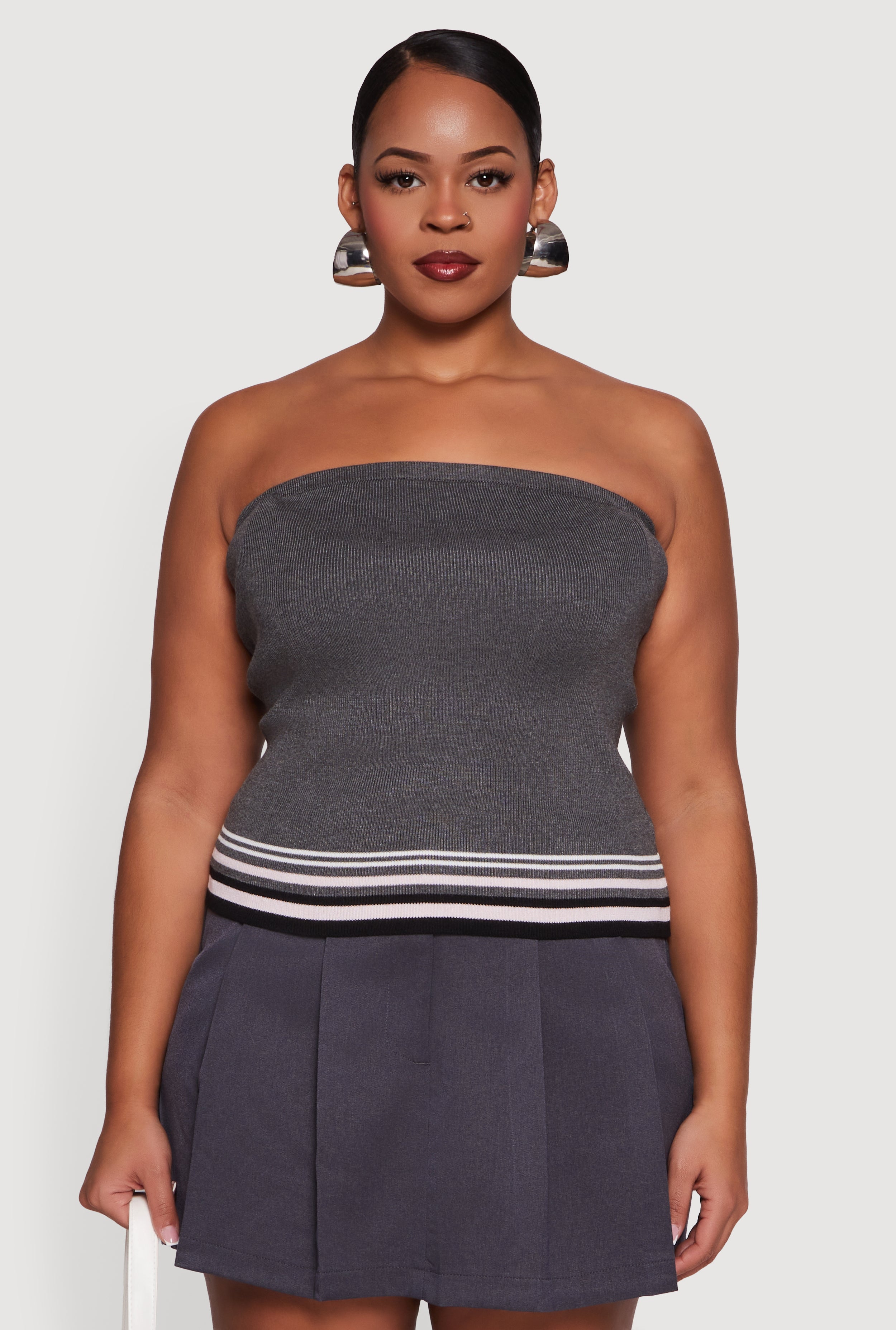 Elevate your casual wardrobe with this plus size open front cropped cardigan paired with a matching strapless tube top. Designed for effortless style, this two-piece set features a classic fit and long sleeves that keep you cozy without sacrificing flair. The striped trim adds a fresh, playful touch to your look, making it perfect for layering or wearing solo on warmer days. Whether you're running errands or meeting up with friends, this collarless cardigan and tube top combo brings comfort and confidence to every outfit.