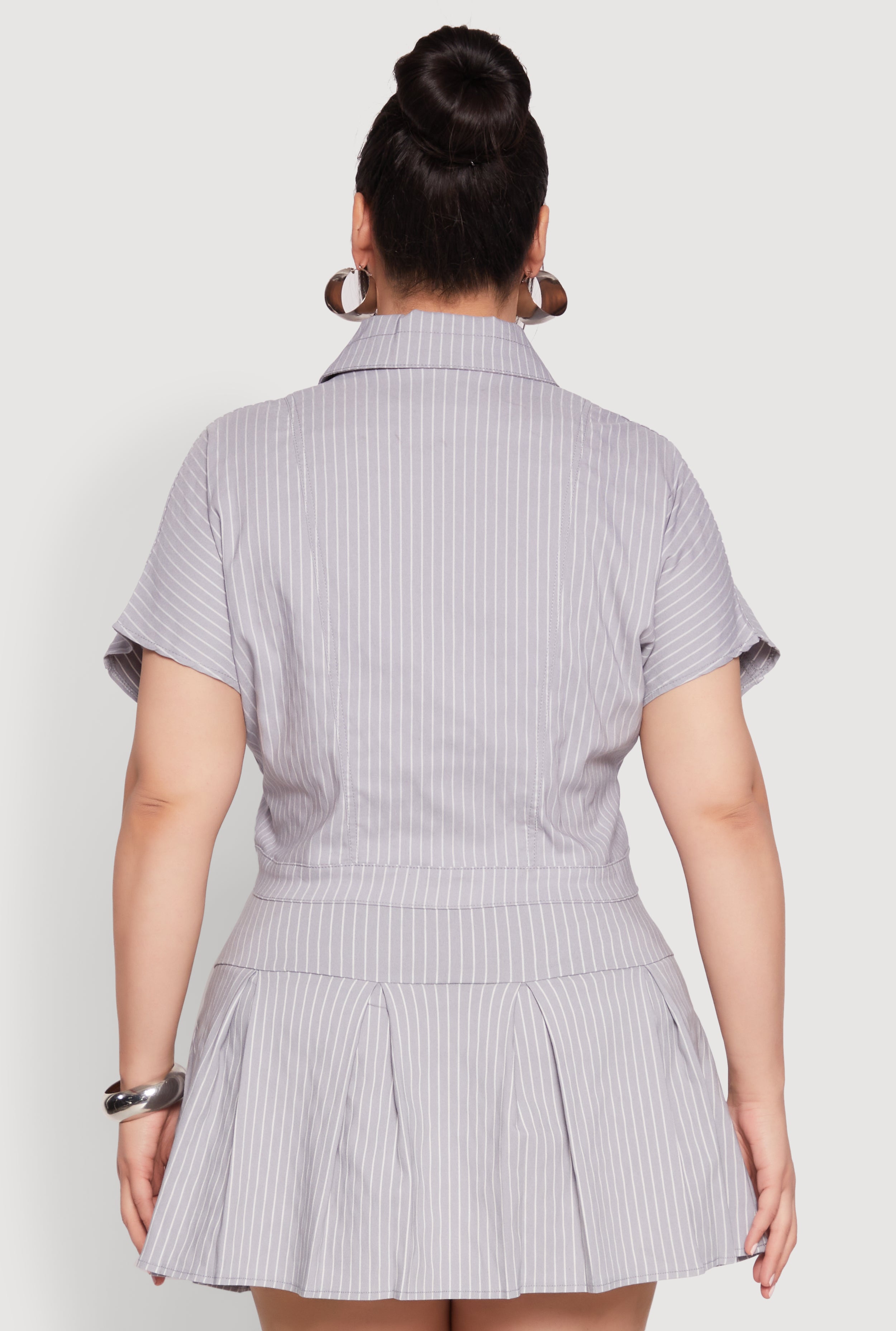 Step up your style game with the Plus Size Pinstripe Hyperstretch Crop Top. Designed for comfort and confidence, this chic shirt features a classic fit and timeless silhouette that flatters every curve. The short dolman sleeves and shirt collar add a touch of sophistication, while the cropped hem makes it perfect for mixing and matching with your favorite sets. Whether you're heading out or lounging in style, this top is your new go-to for effortless fashion.