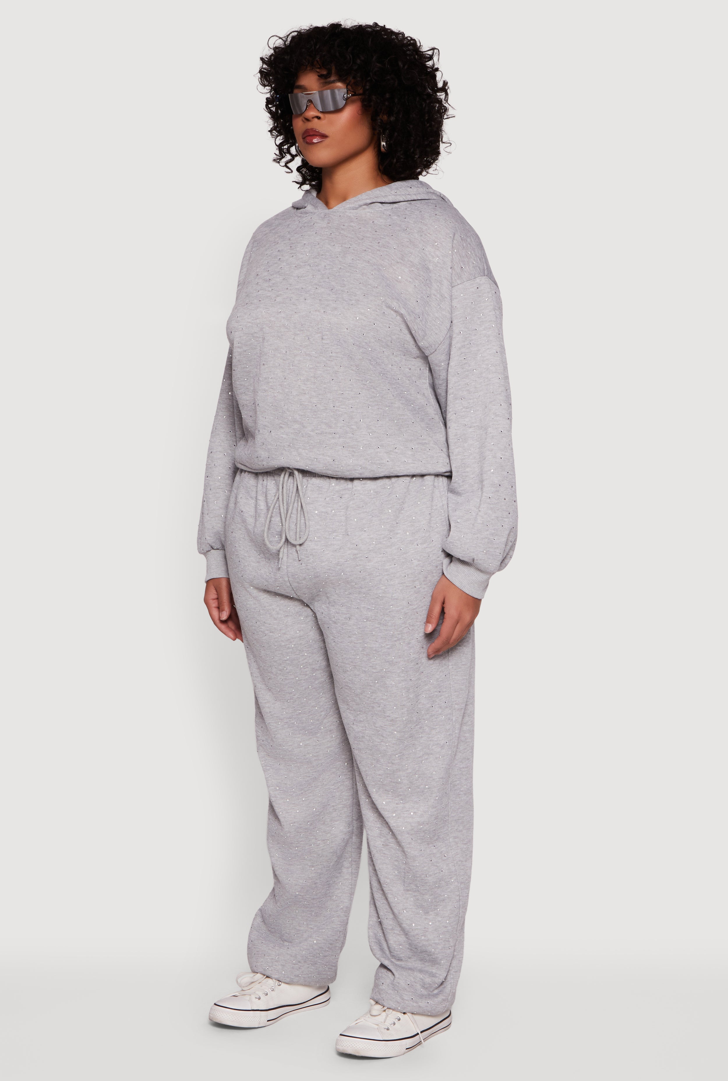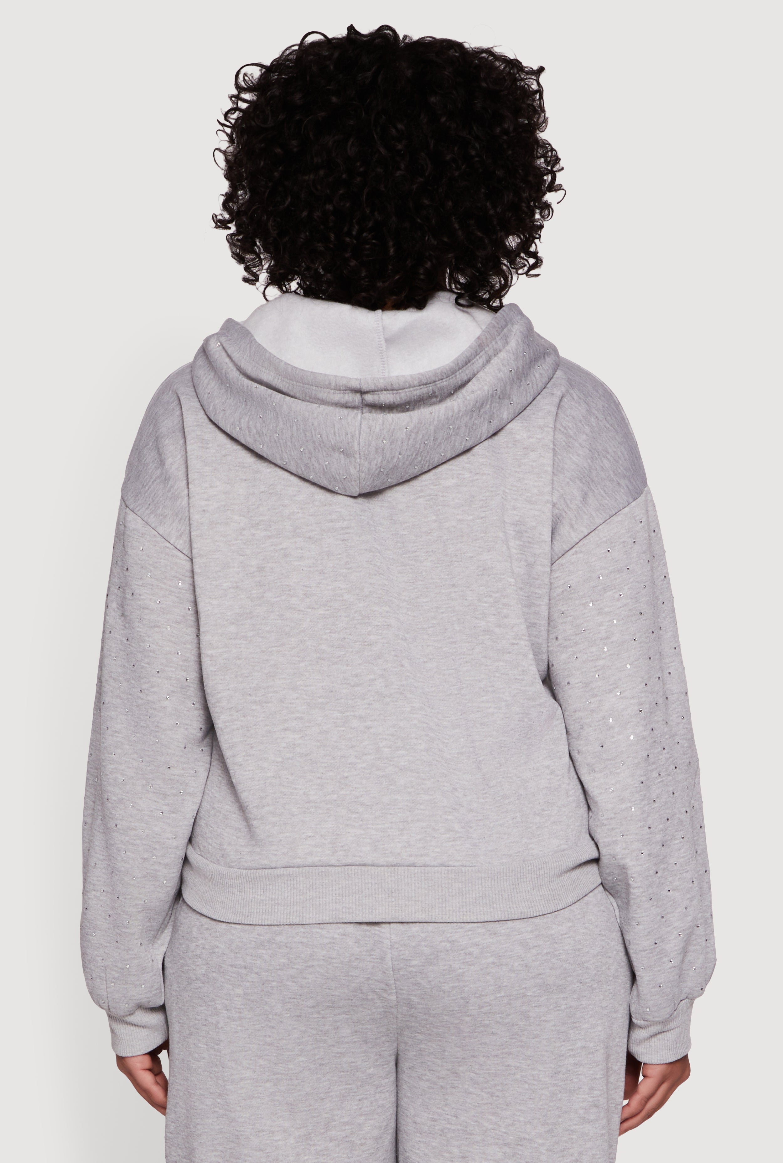 Step up your casual game with this Plus Size Rhinestone Studded Pullover Hoodie. Designed for comfort and style, this fleece-lined hoodie features a classic fit and drop shoulders for that effortlessly cool vibe. The hood adds cozy warmth while the rhinestone studs bring just the right amount of sparkle to your everyday look. Perfect for lounging, running errands, or casual hangouts, this hoodie blends athleisure with a touch of glam to keep you feeling confident and comfy all day long.