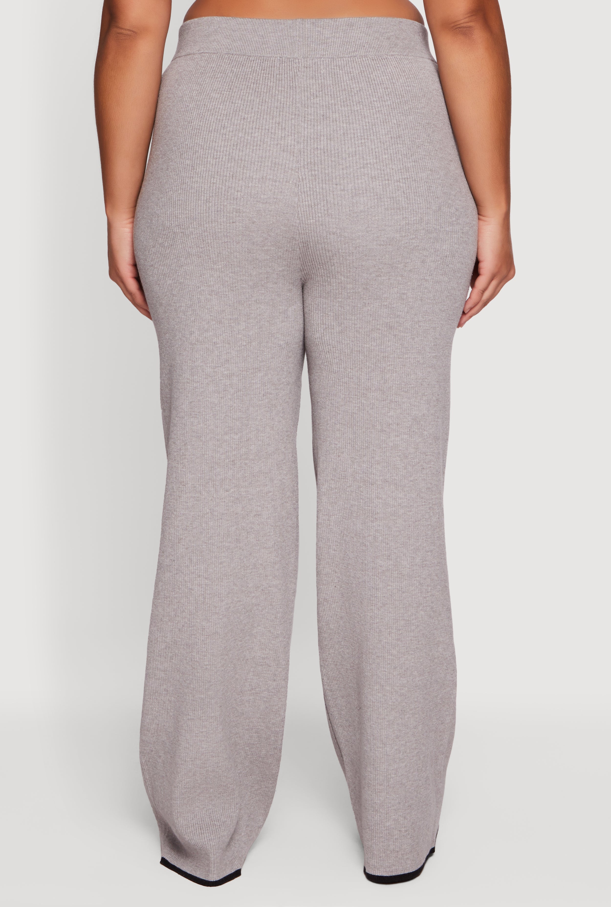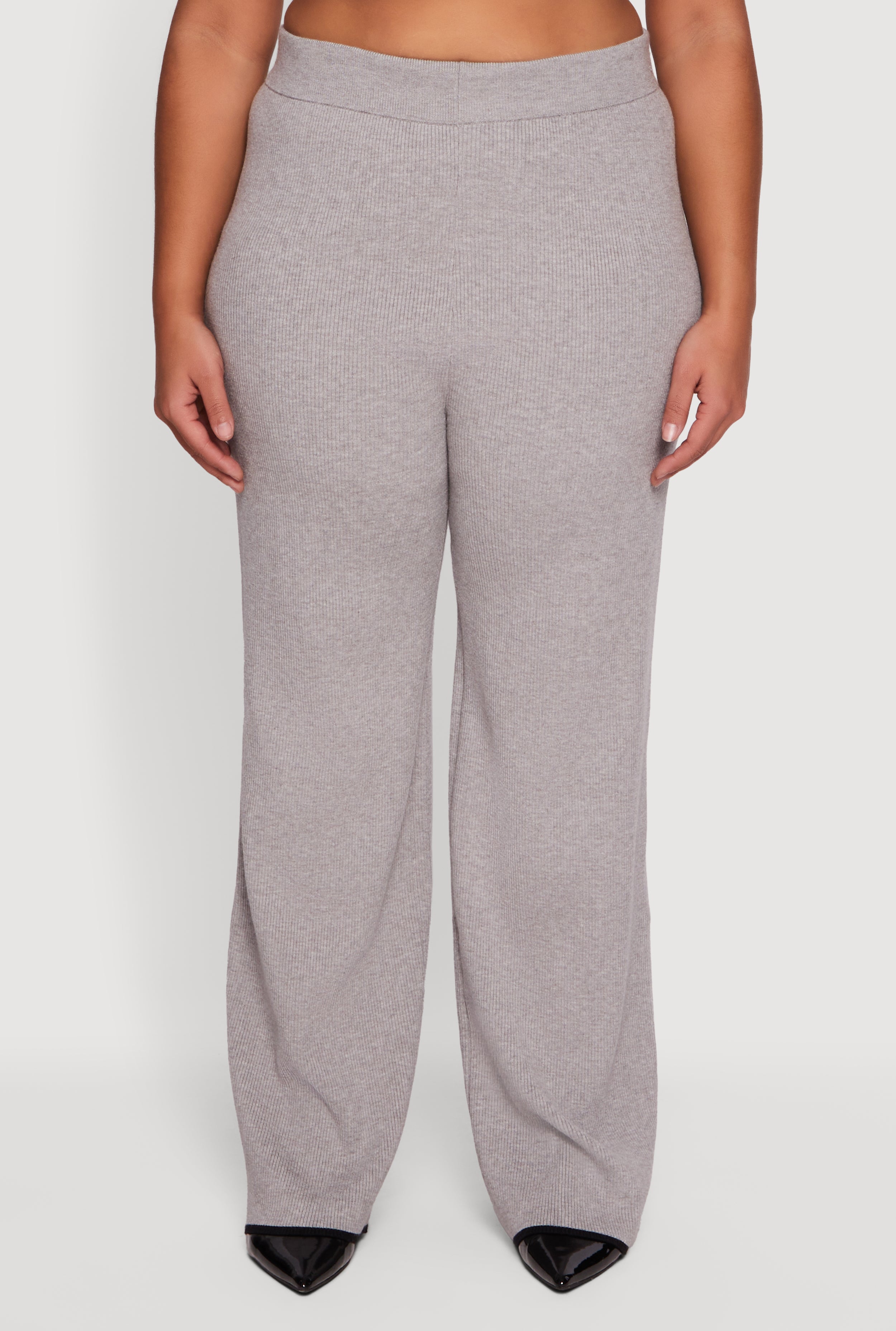 Step up your casual game with these Plus Size Rib Knit Pull On High Waisted Wide Leg Pants. Designed for comfort and style, these pants feature a flattering high waist and a loose, wide-leg fit that moves with you. Made from soft ribbed knit fabric, they offer a cozy feel perfect for lounging or running errands. Easy to pull on and pair with your favorite tops, they are a must-have for effortless everyday cool.