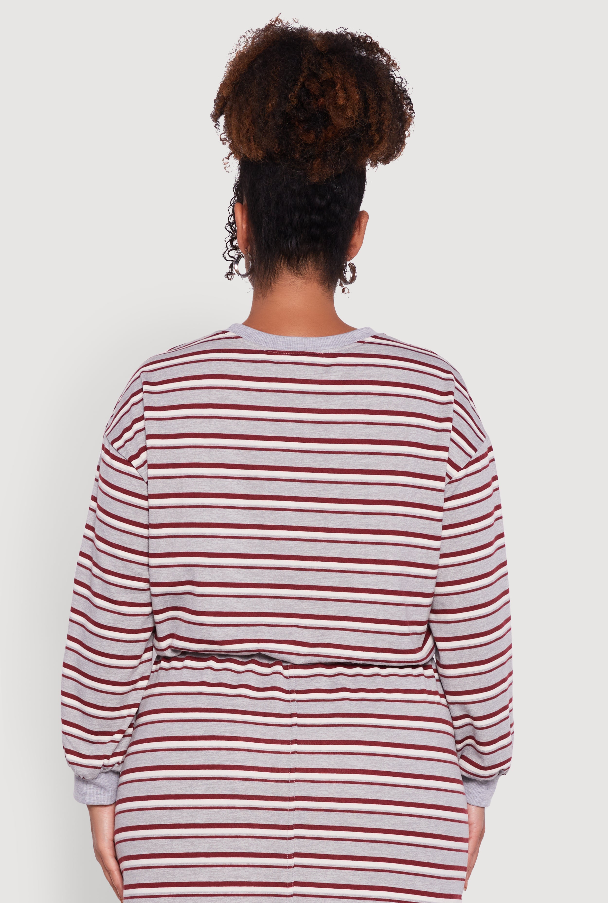 Step up your casual game with this Plus Size Striped Cropped Sweatshirt designed to keep you cozy and stylish all day long. Featuring a classic fit and playful balloon sleeves, it blends comfort and trend effortlessly. The toggle drawstring hem lets you customize your look, making it perfect for layering or rocking solo. Whether you’re chilling at home or out with friends, this fleece-lined pullover adds a fresh vibe to any outfit.