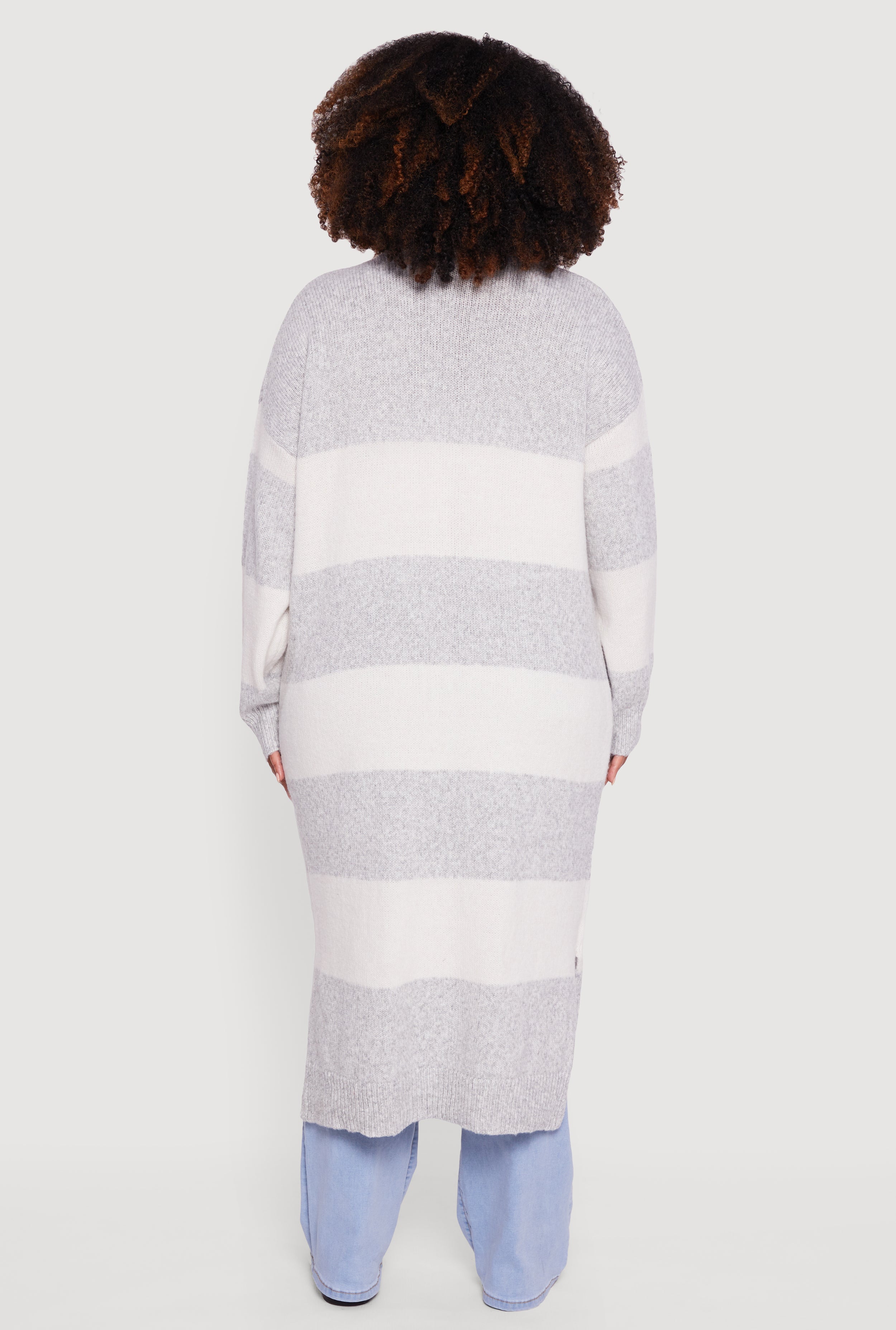 Slip into effortless style with the Plus Size Striped Marled Brushed Knit Duster. This classic fit duster blends cozy comfort with a chic striped marled pattern that’s perfect for casual days or office vibes. Long sleeves keep you covered while the soft brushed knit fabric feels like a warm hug. Whether you’re layering up for a coffee run or adding a stylish touch to your workwear, this duster is your new go-to for easy, everyday cool.