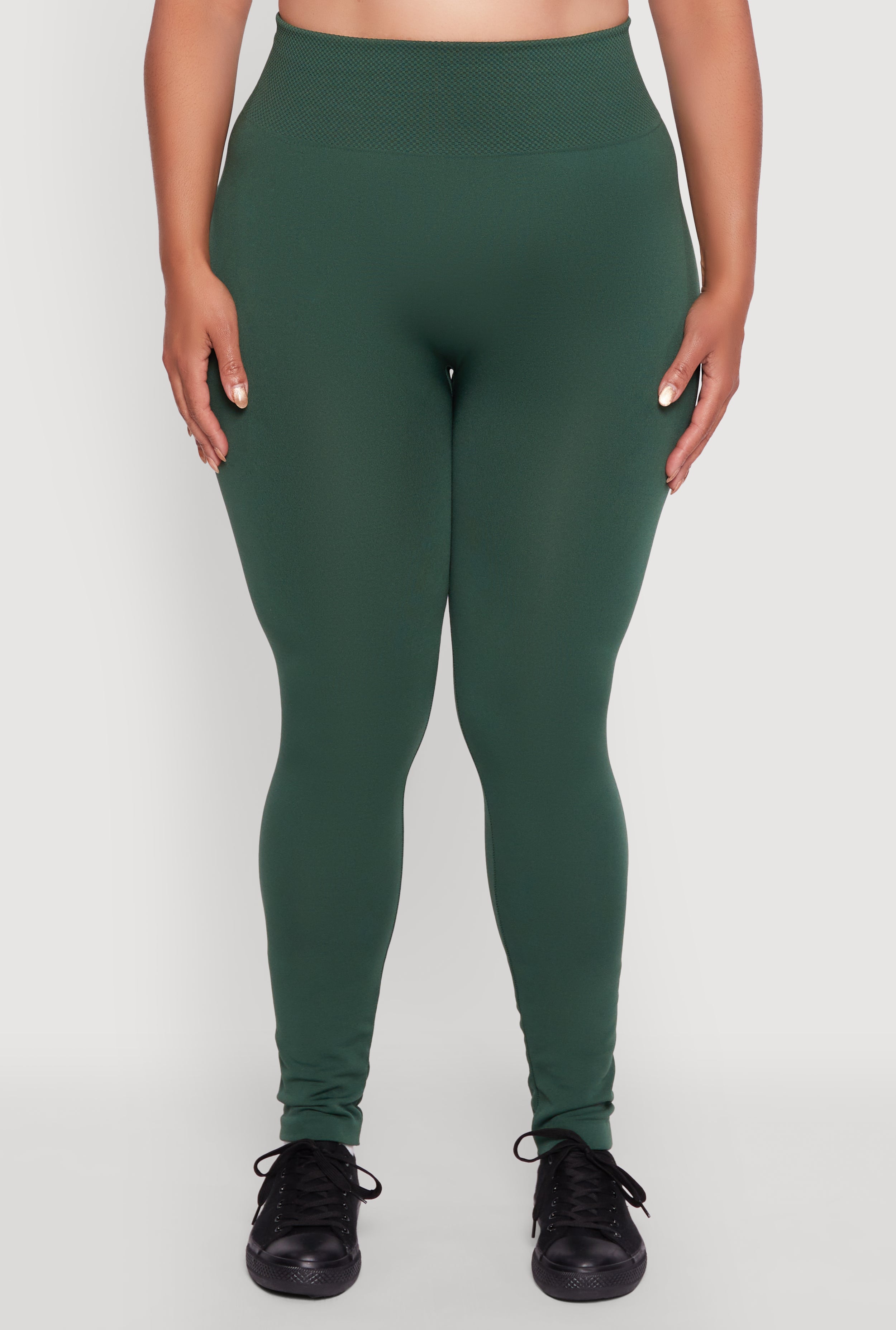Plus Size Fleece Lined Leggings with Textured Waistband