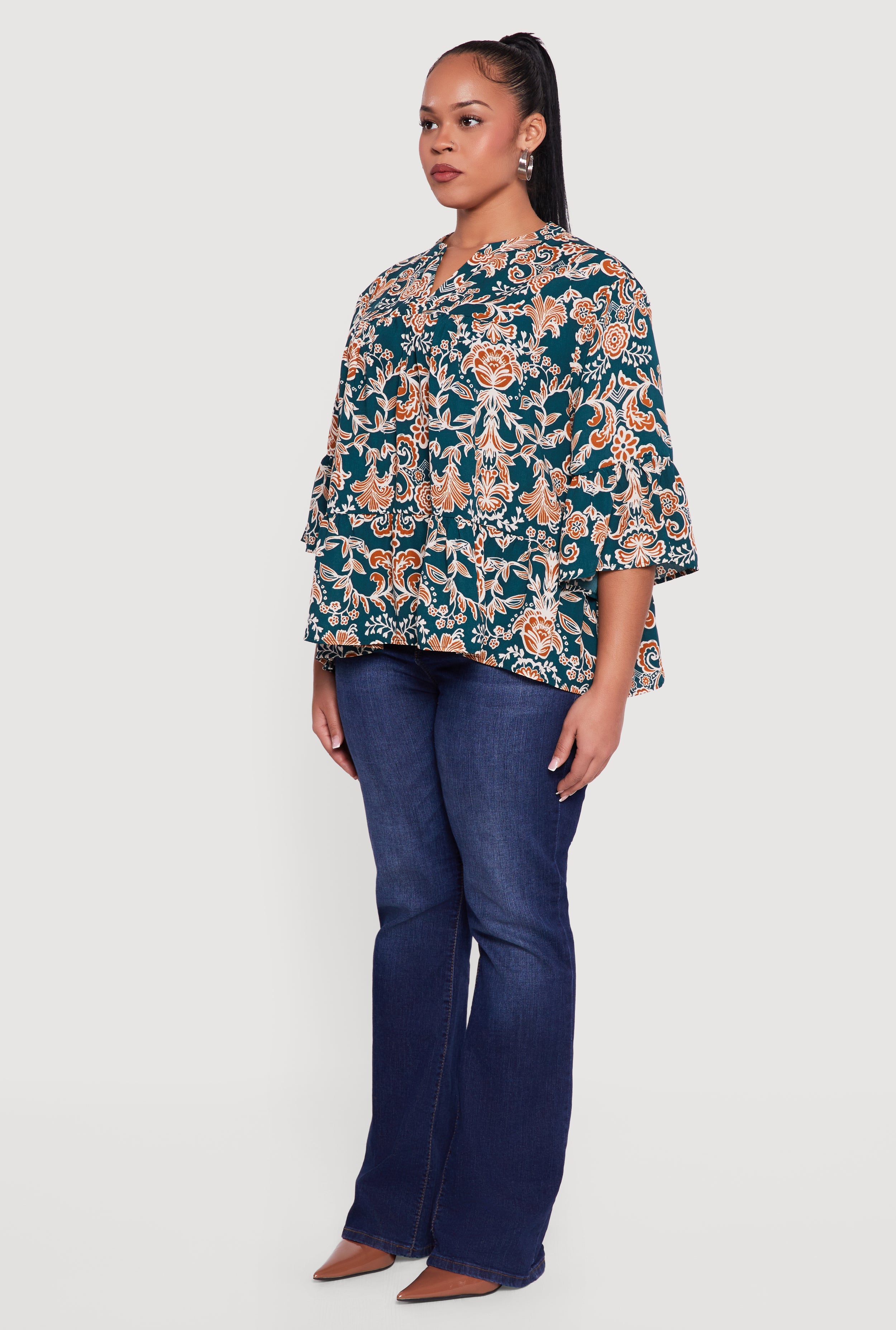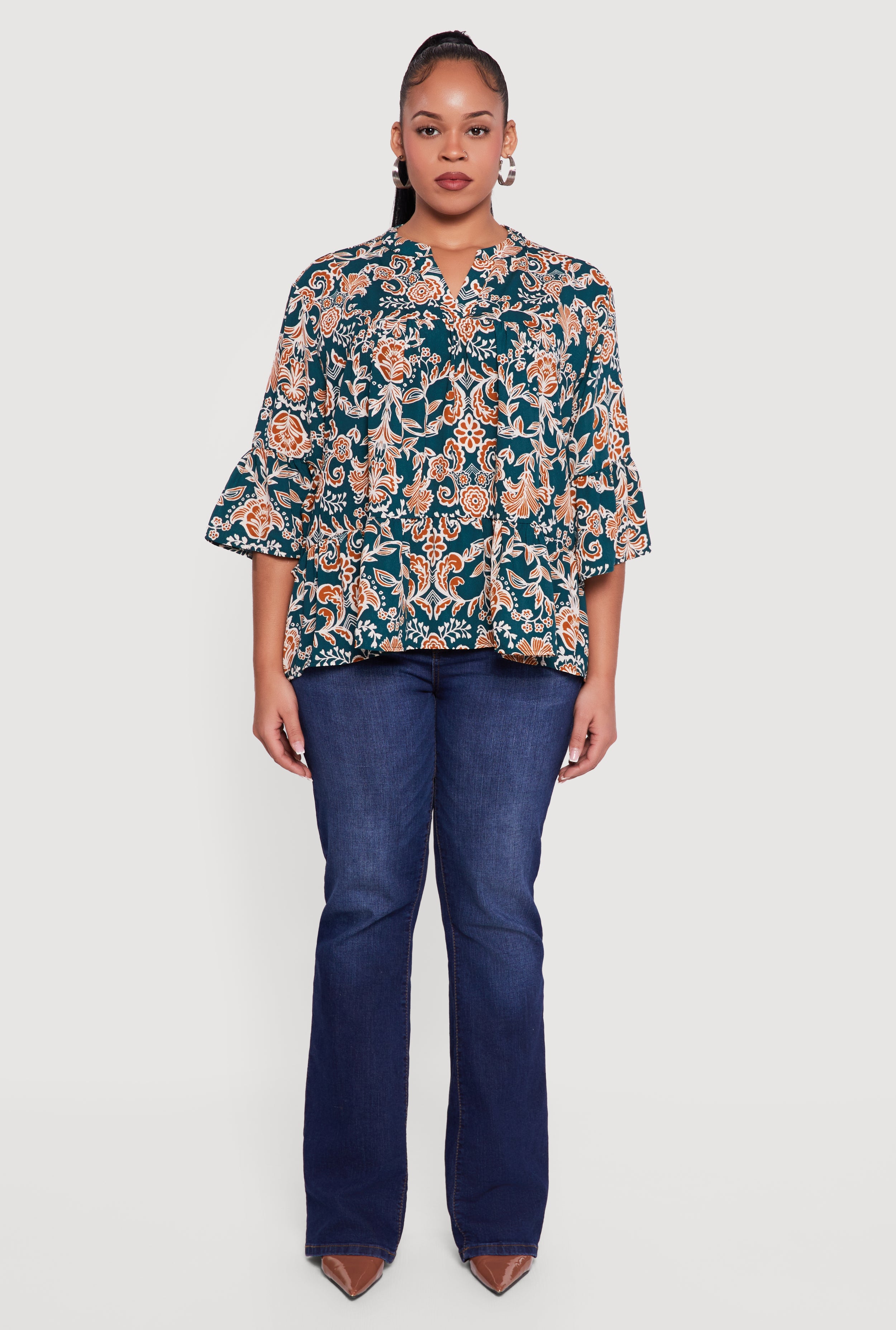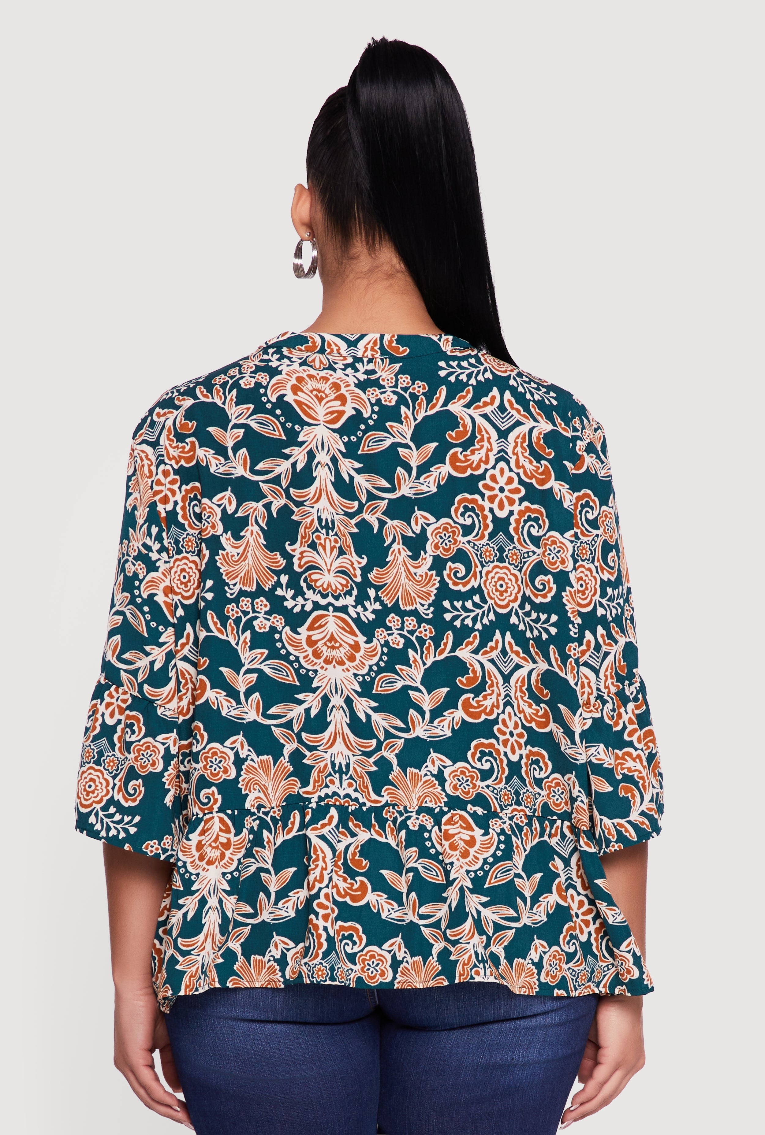 Elevate your everyday look with this Plus Size Patterned Notch Neck Blouse designed to bring effortless style and comfort to your wardrobe. Featuring a timeless classic fit and 3/4 sleeves, it offers a flattering silhouette that moves with you. The playful printed pattern adds a dash of personality, while the notch neckline creates a subtle, chic detail perfect for casual outings or laid-back gatherings. Embrace a versatile piece that pairs easily with your favorite jeans or skirts for a fresh, confident vibe.