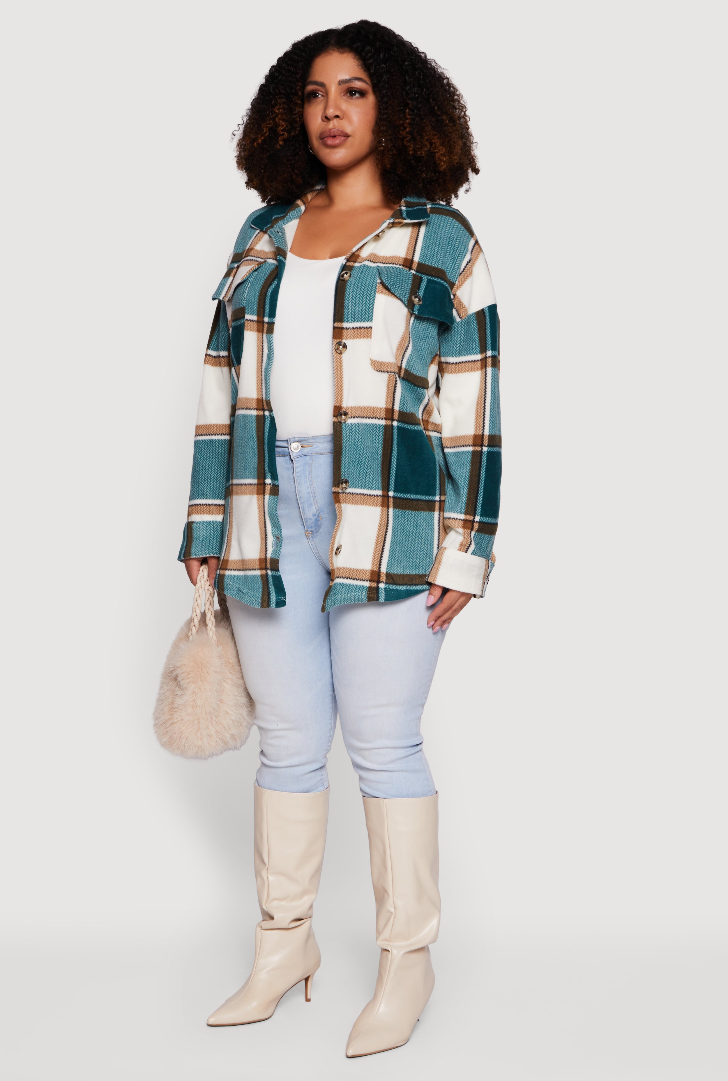 Step into cozy vibes with this Plus Size Plaid Button Front Shacket. Perfect for layering on those chill days, it combines the warmth of fleece with the casual cool of a plaid pattern. The classic collar and button front add a timeless touch while keeping it easy to wear. Whether you're running errands or meeting friends for coffee, this shacket brings effortless style and comfort to your everyday look.