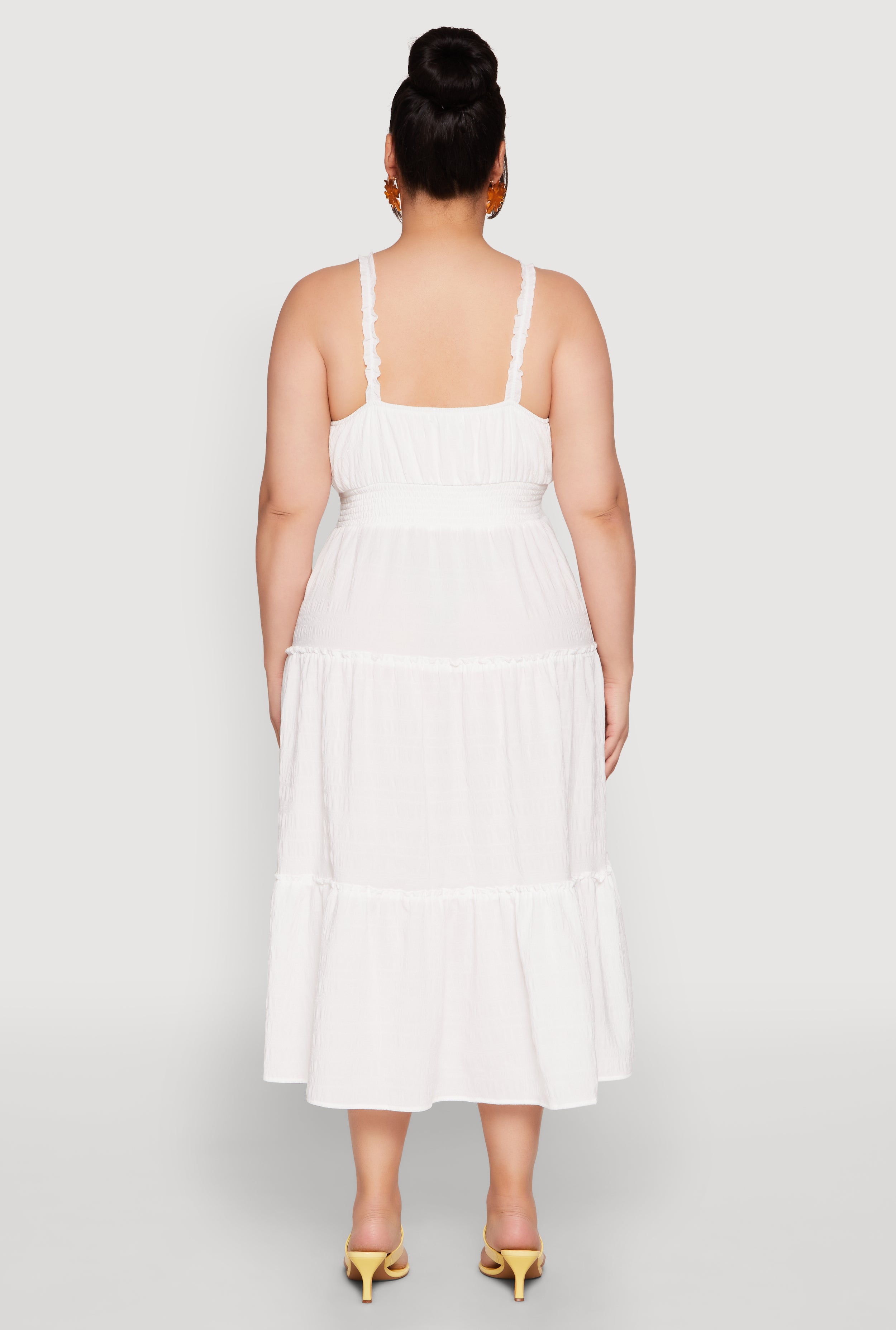 Get ready to turn heads with the Plus Size Almost Famous Smocked Tiered Dress. This effortlessly chic sundress features a flattering square neckline and a classic fit that offers a timeless silhouette. Perfect for casual days out, its mid-length design and sleeveless style keep you cool and comfortable while looking fabulous. Whether you're brunching with friends or enjoying a sunny weekend, this dress is your new go-to for easy, stylish vibes.