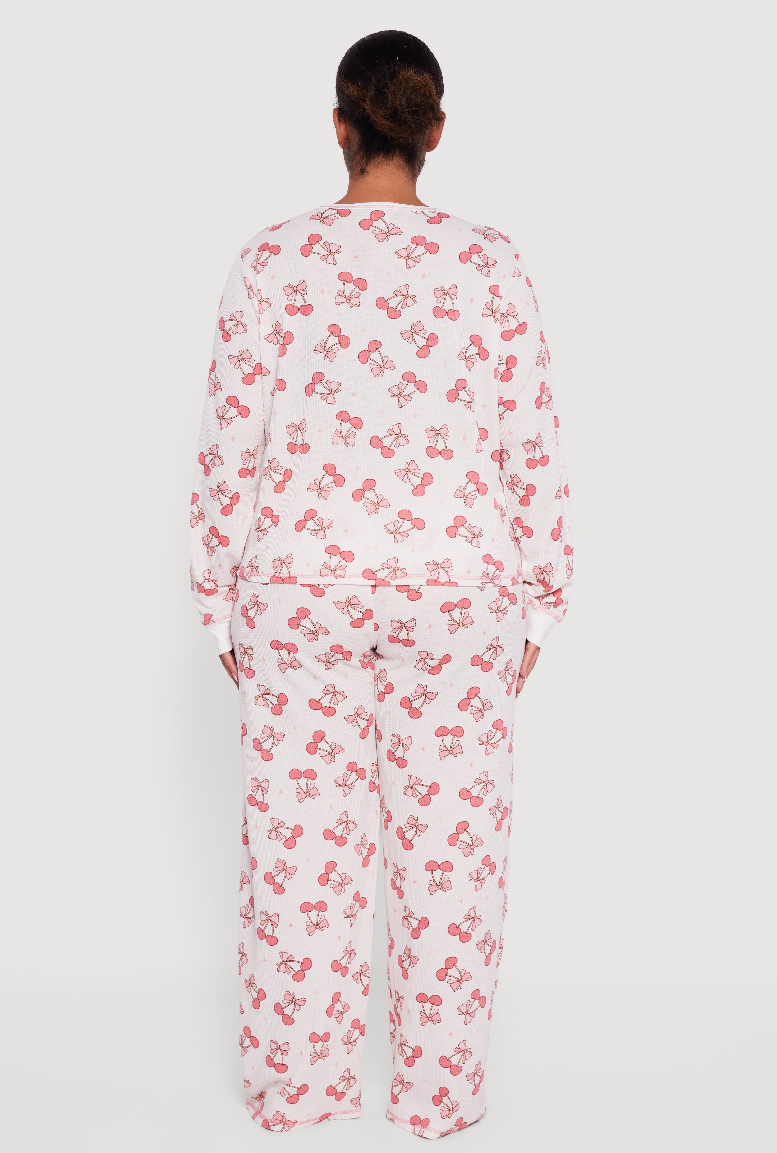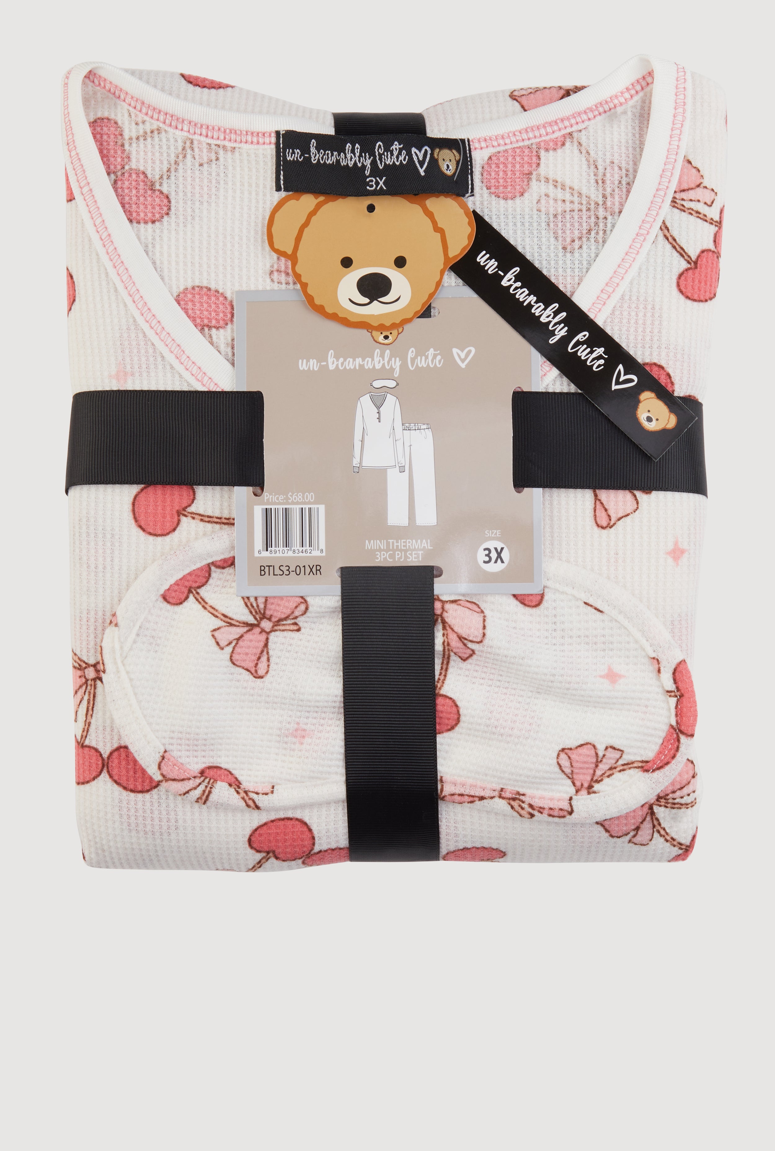 Plus Size Cherry Bow Print Waffle Knit Thermal Pajama Gift Set
