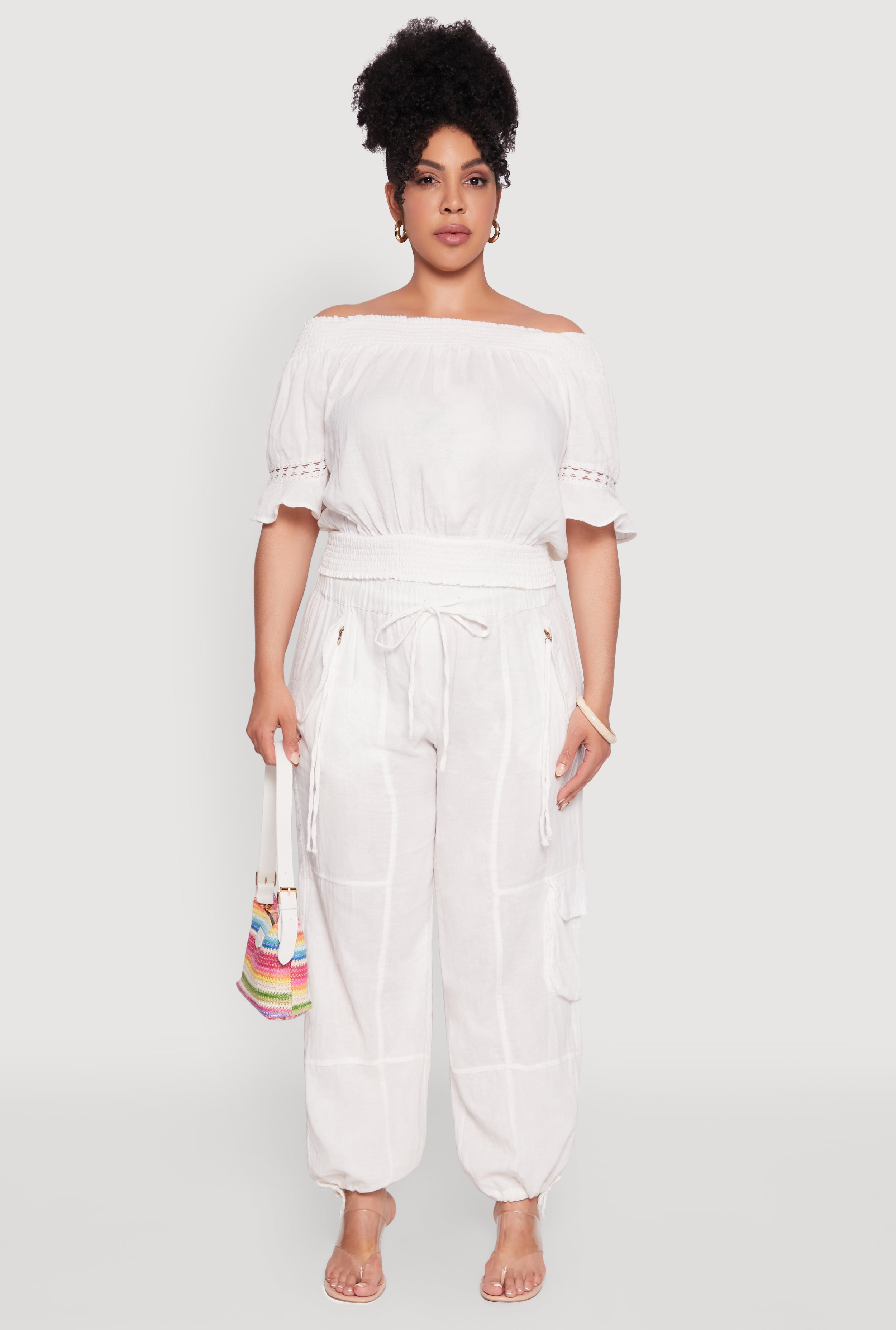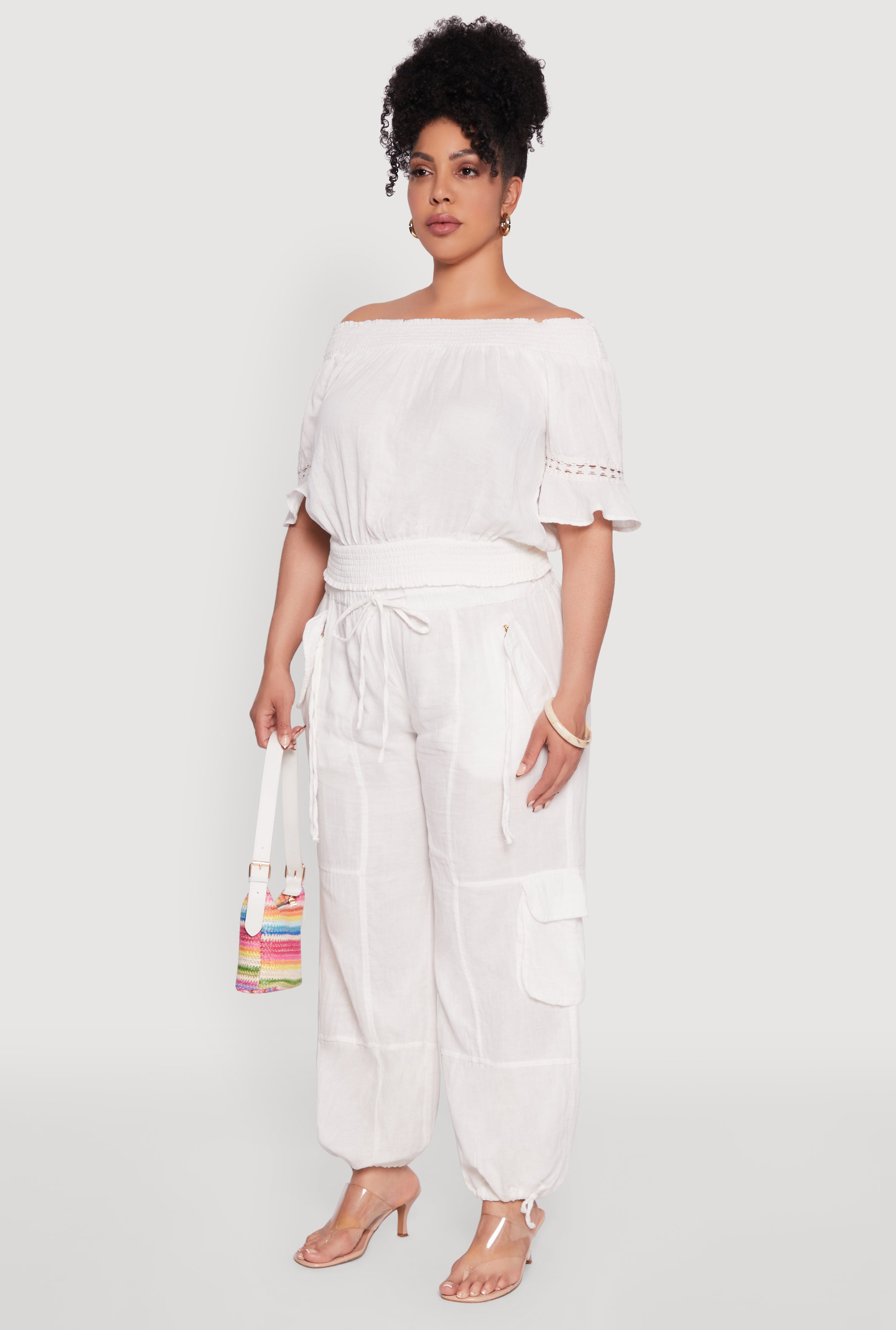 • Off the shoulder neckline for a flirty, feminine vibe