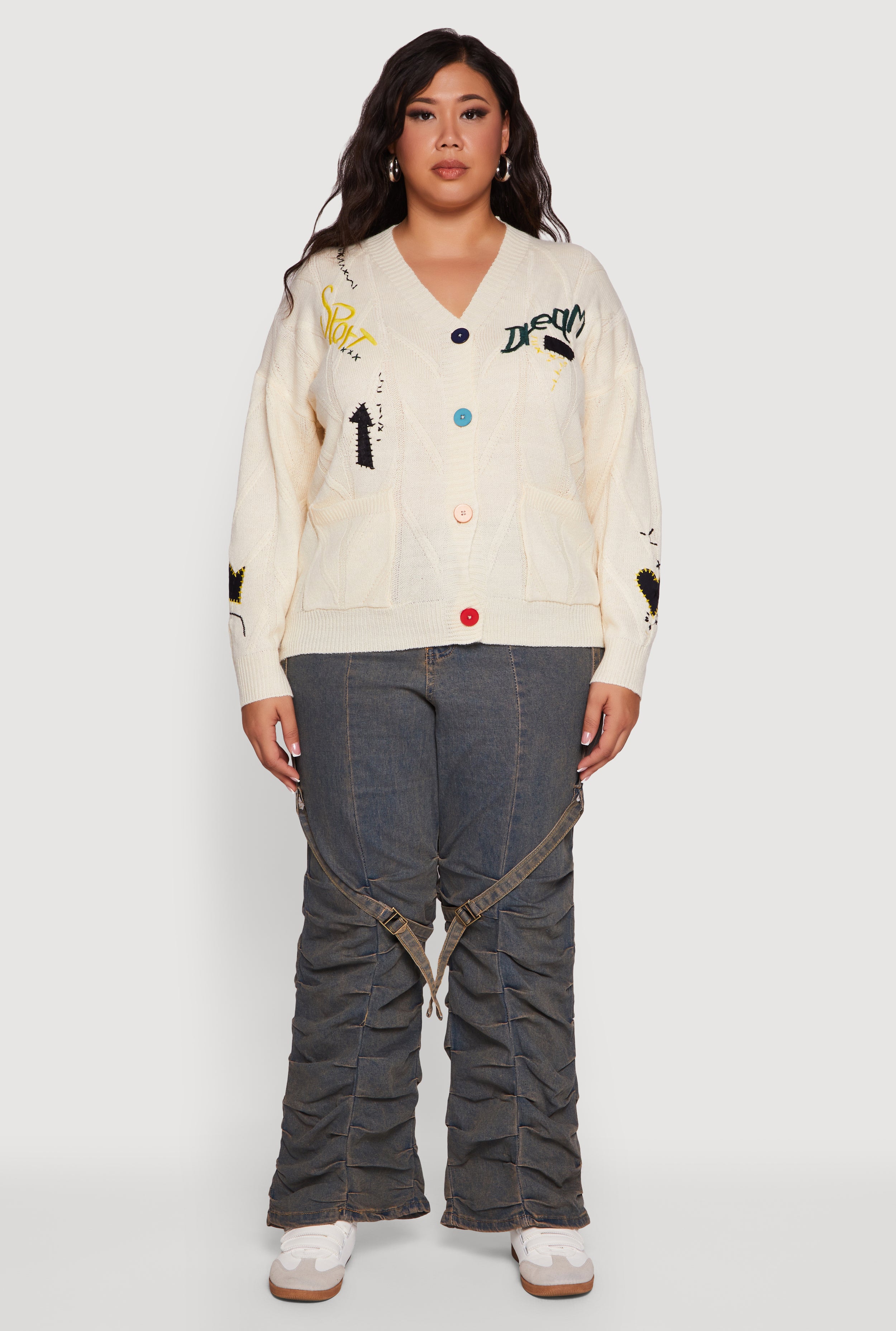 Step up your casual game with this Plus Size Embroidered Patch Button Front Cardigan. Featuring a classic fit and a flattering V-neck, this cozy long sleeve cardigan is your new go-to for effortless style. The eye-catching "Sport Dream" embroidery adds a playful touch that makes every outfit pop. Whether you're layering up for a chill day or adding a bit of flair to your everyday look, this cardigan blends comfort and cool vibes perfectly.