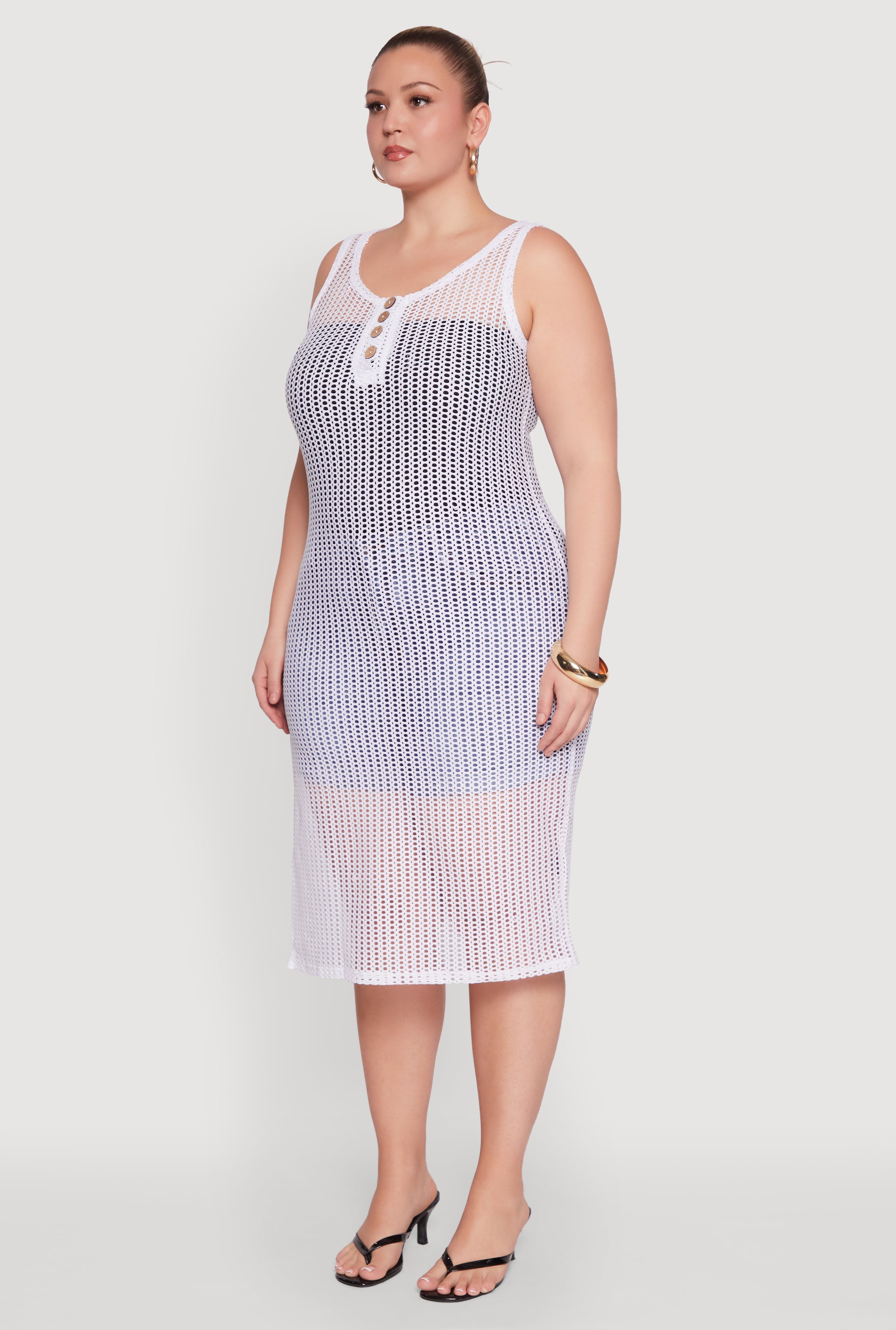 Elevate your beach day or poolside look with our Plus Size Fishnet Side Slit Maxi Cover Up. Designed for those who want to make a statement, this sheer, sleeveless cover-up combines classic style with a daring edge. The scoop neckline and flowing maxi hem create a timeless silhouette that flatters every curve, while the fishnet material adds just the right amount of flirtiness. Whether you're lounging or strolling, this versatile piece is your go-to for effortless, chic summer vibes.