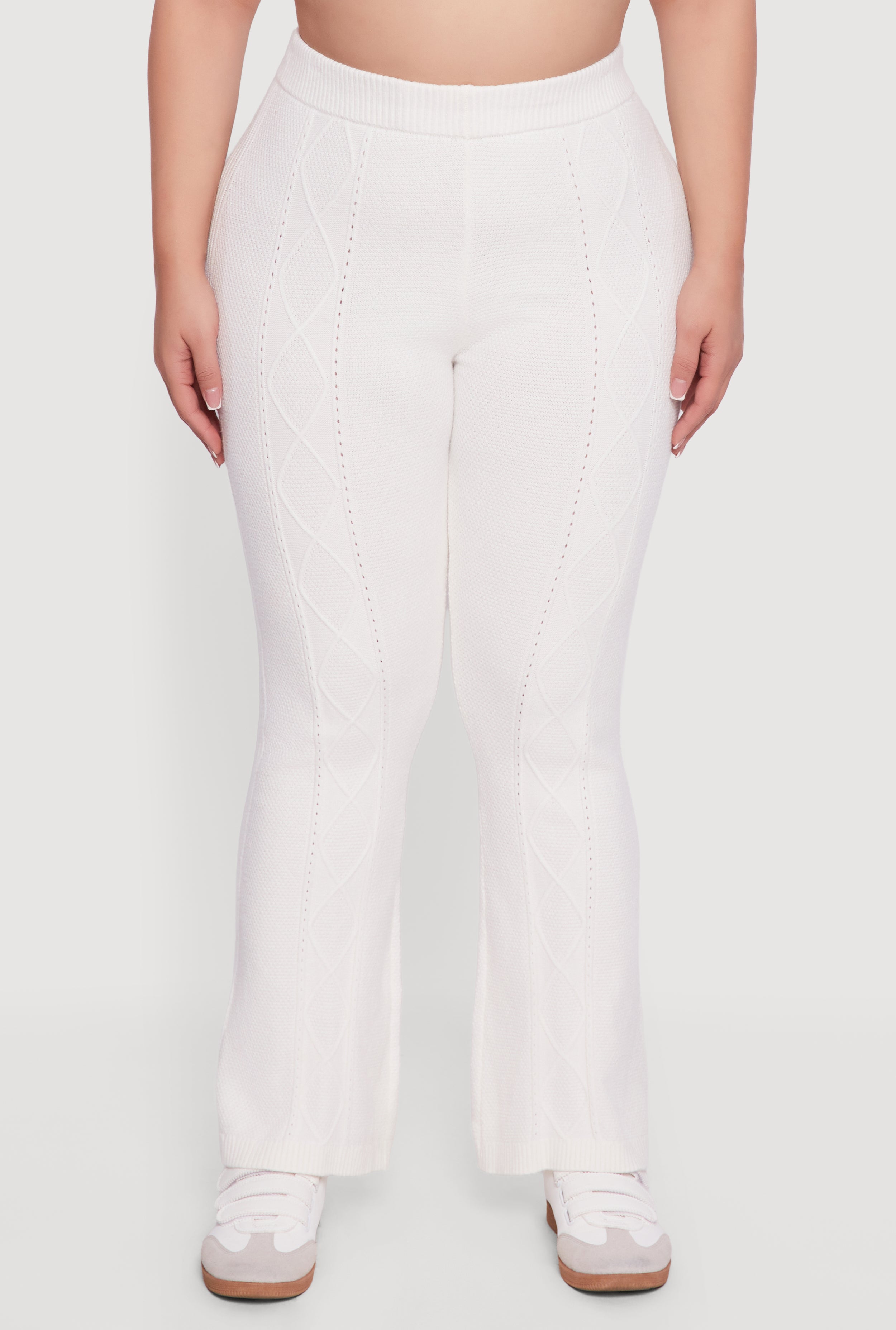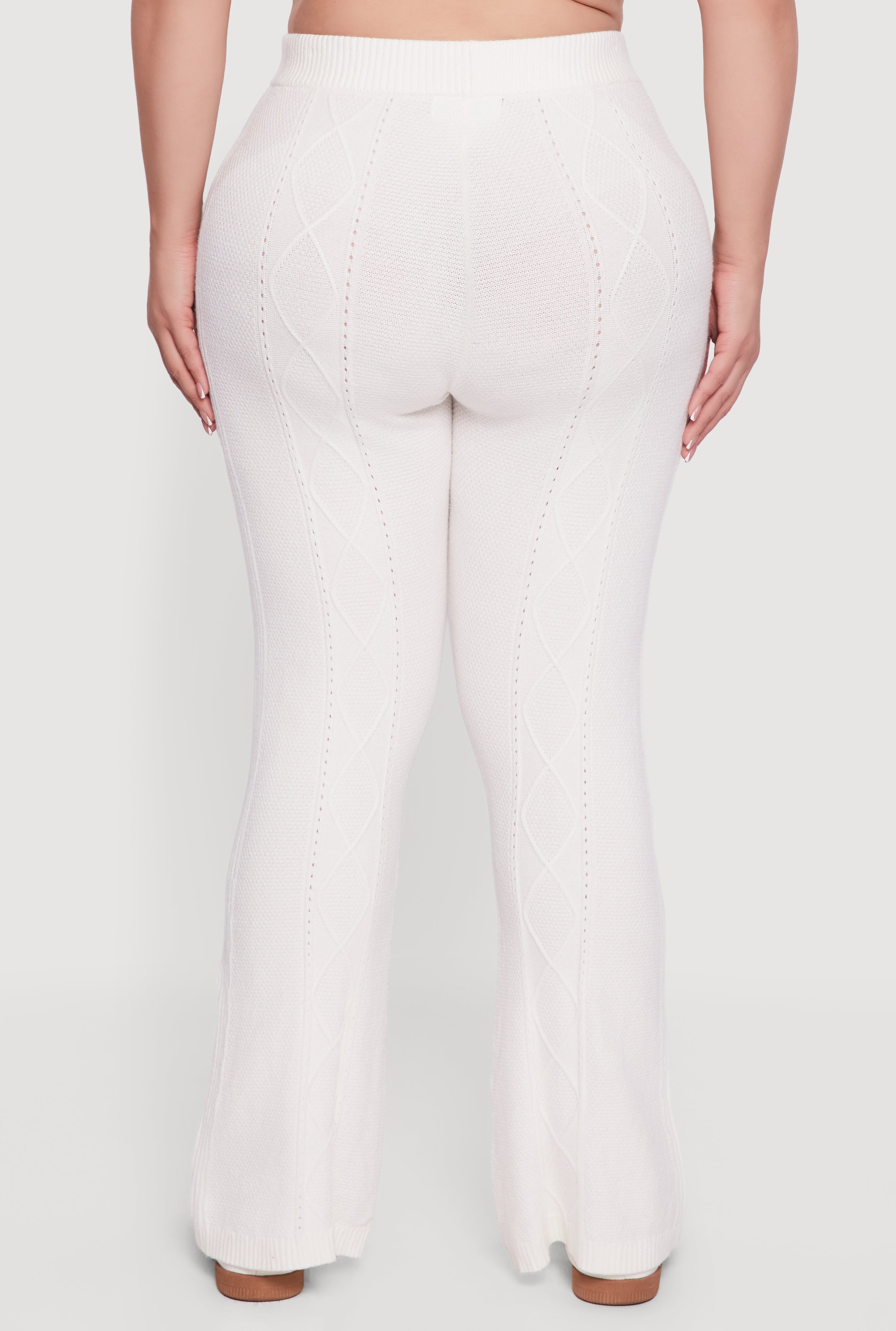 Plus Size High Waisted Cable Knit Flare Leg Pants