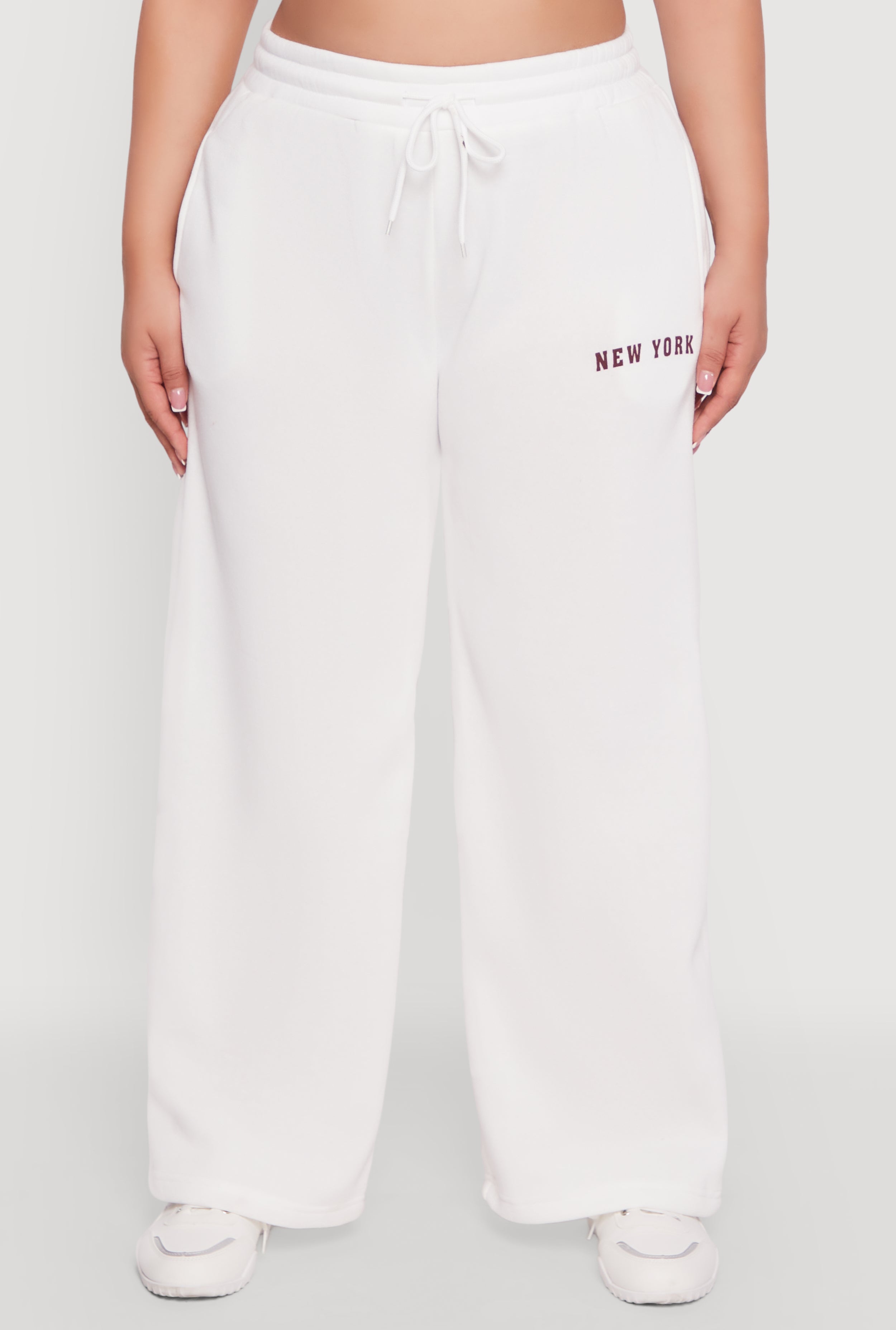 Step up your casual game with these Plus Size New York Graphic Sweatpants. Designed for comfort and style, these high waisted, wide-leg sweatpants are your new go-to for lounging, running errands, or hitting the streets with effortless cool. The soft fleece fabric keeps you cozy, while the bold New York graphic adds a trendy edge that speaks to your city vibes. Adjustable drawstring waist ensures the perfect fit, making these sweatpants as flattering as they are comfortable. Whether you pair them with a crop top or an oversized hoodie, these sweatpants are made to move with you and keep your style on point.