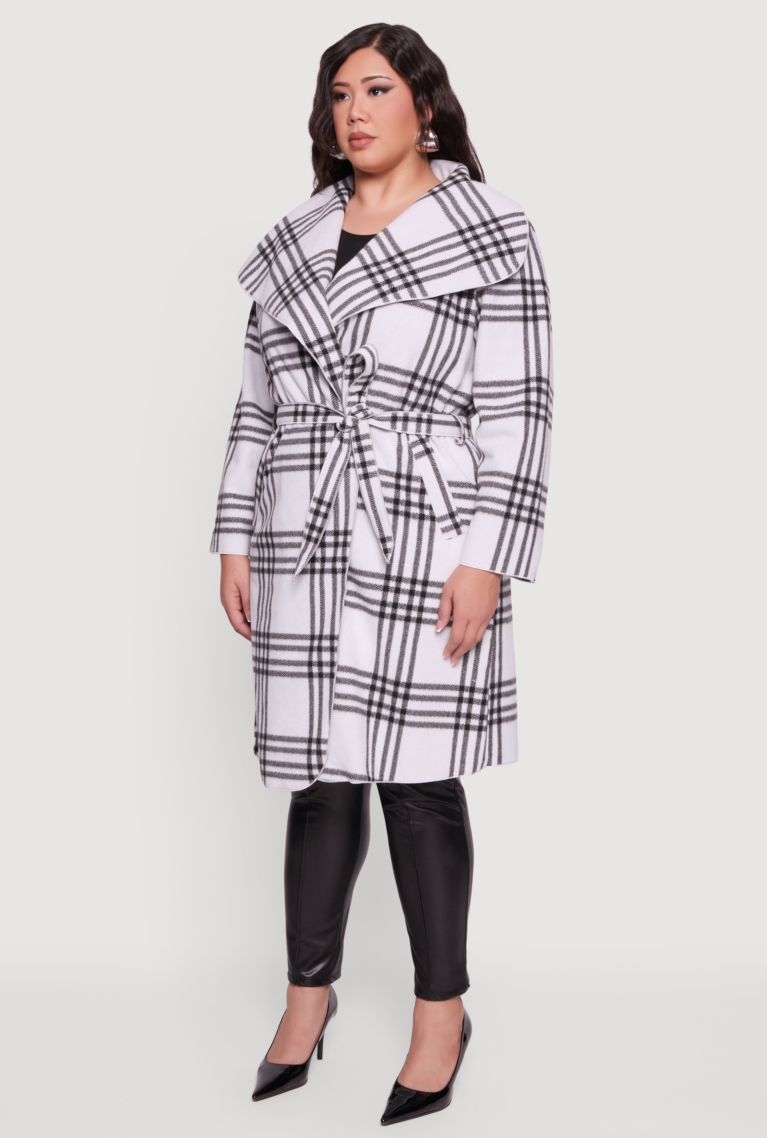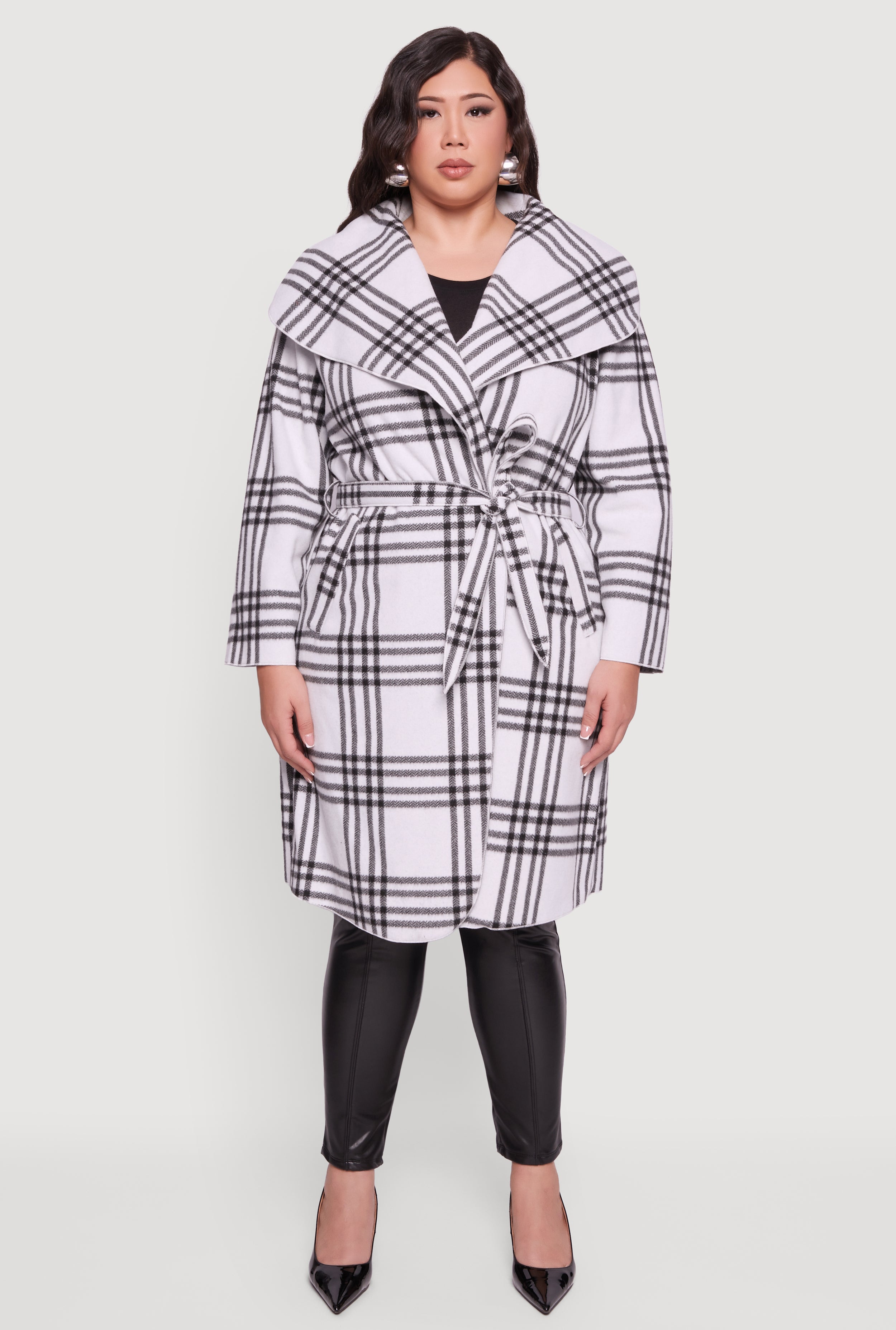 Cozy up in style with this Plus Size Plaid Fleece Wrap Coat featuring a flattering tie waist belt that cinches your silhouette just right. The soft fleece fabric keeps you warm without weighing you down, while the classic plaid pattern adds a timeless touch to your casual look. Perfect for layering on chilly days, this wrap coat combines comfort and fashion effortlessly.