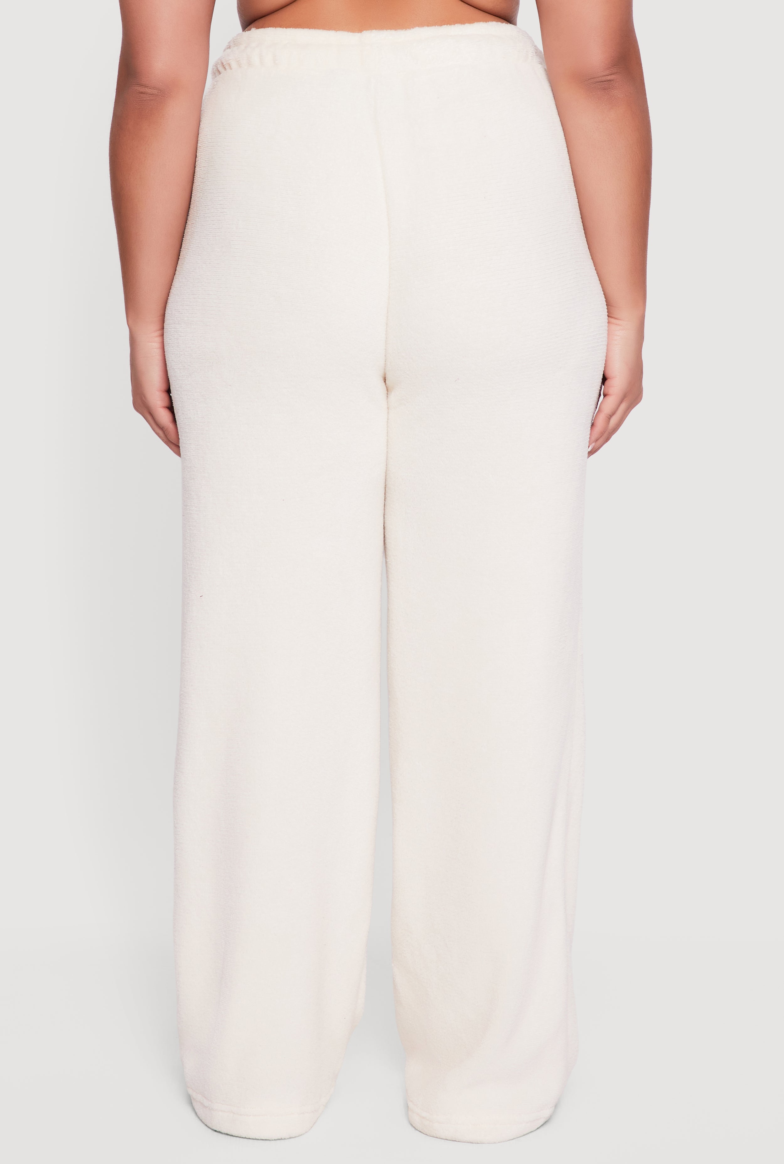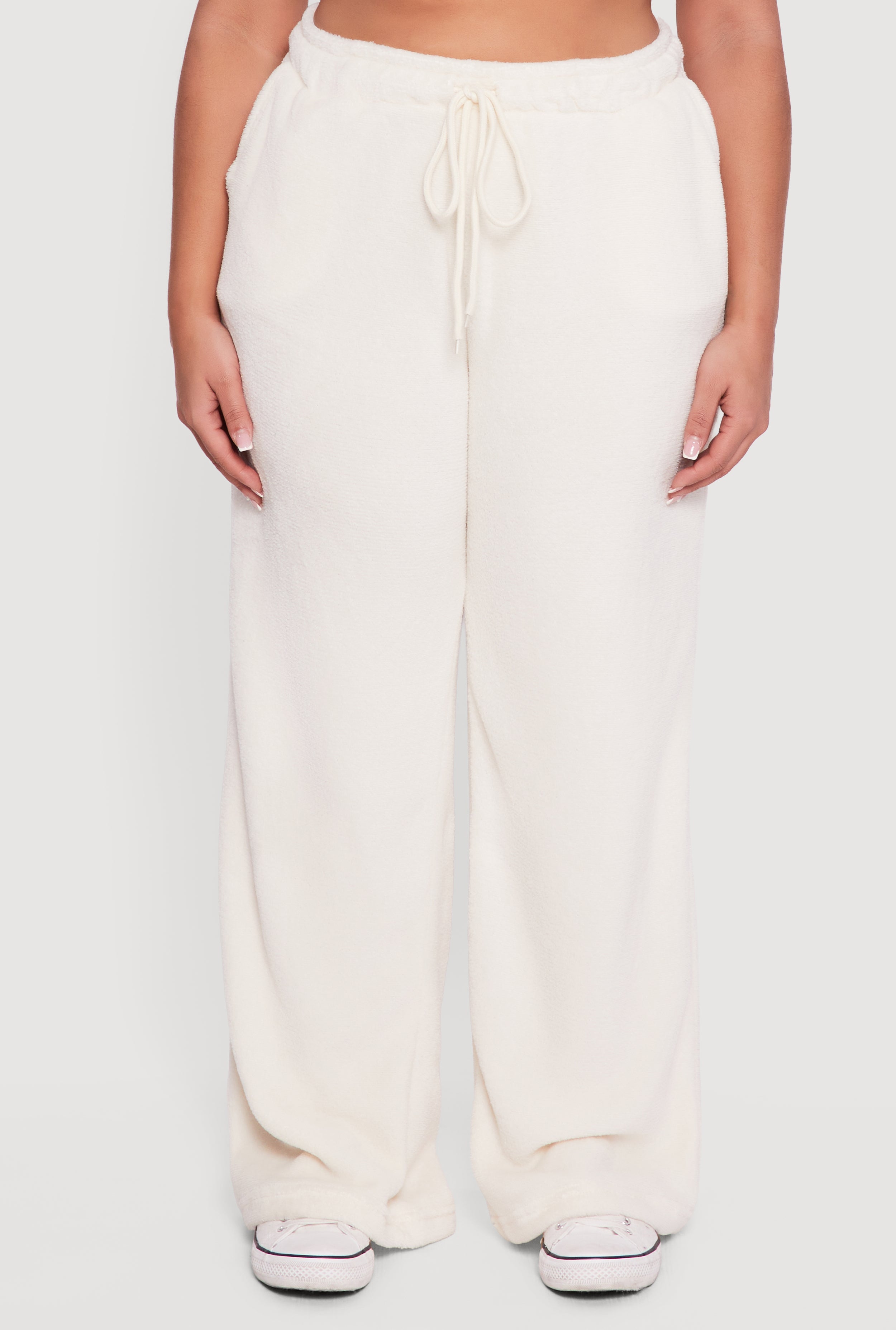 Step into cozy comfort with these Plus Size Plush High Waisted Wide Leg Sweatpants. Designed for effortless style and all-day wear, they feature a soft plush fabric that feels like a warm hug. The high waist and drawstring closure offer a flattering fit that moves with you, while the wide leg silhouette adds a trendy, laid-back vibe perfect for lounging or casual outings. Embrace your curves and stay comfy in these must-have sweatpants made just for you.