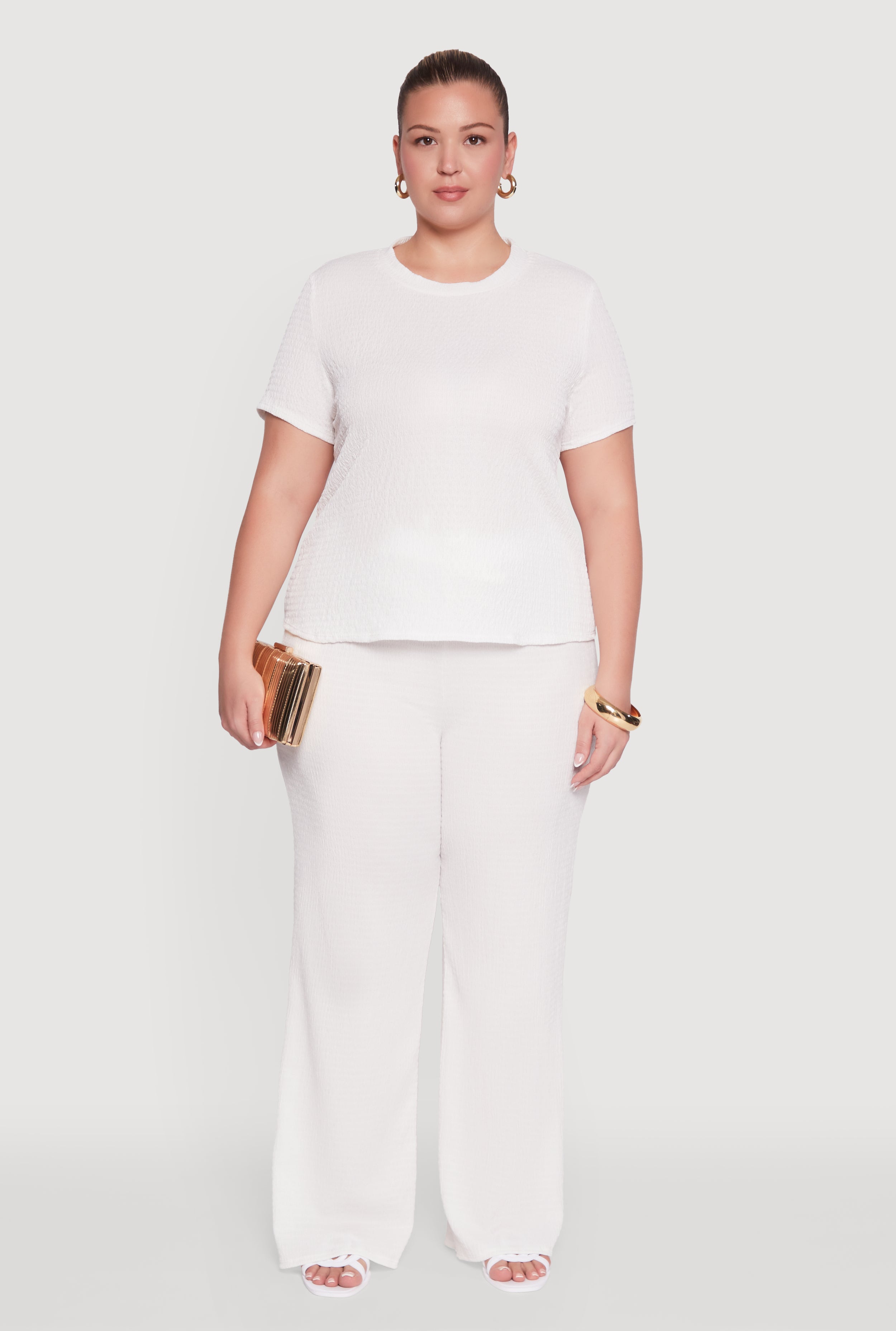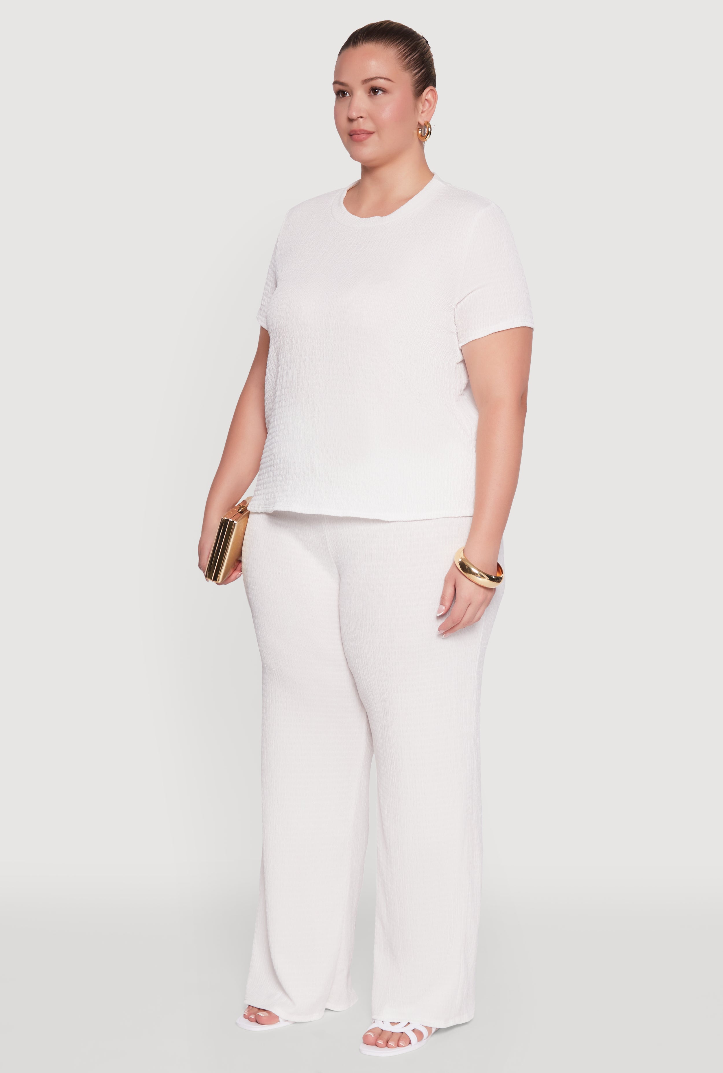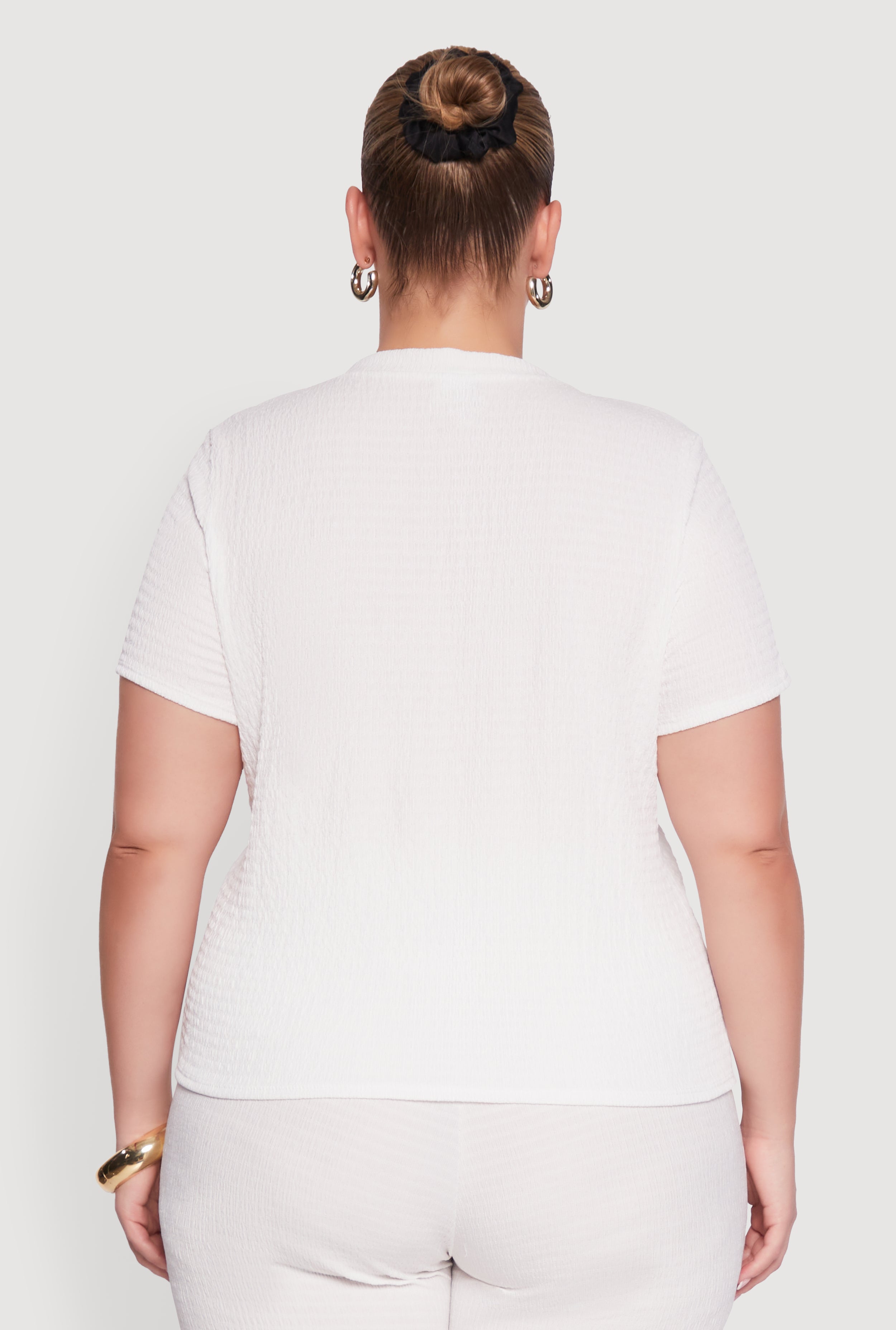 Plus Size Textured Knit Solid Crew Neck Blouse