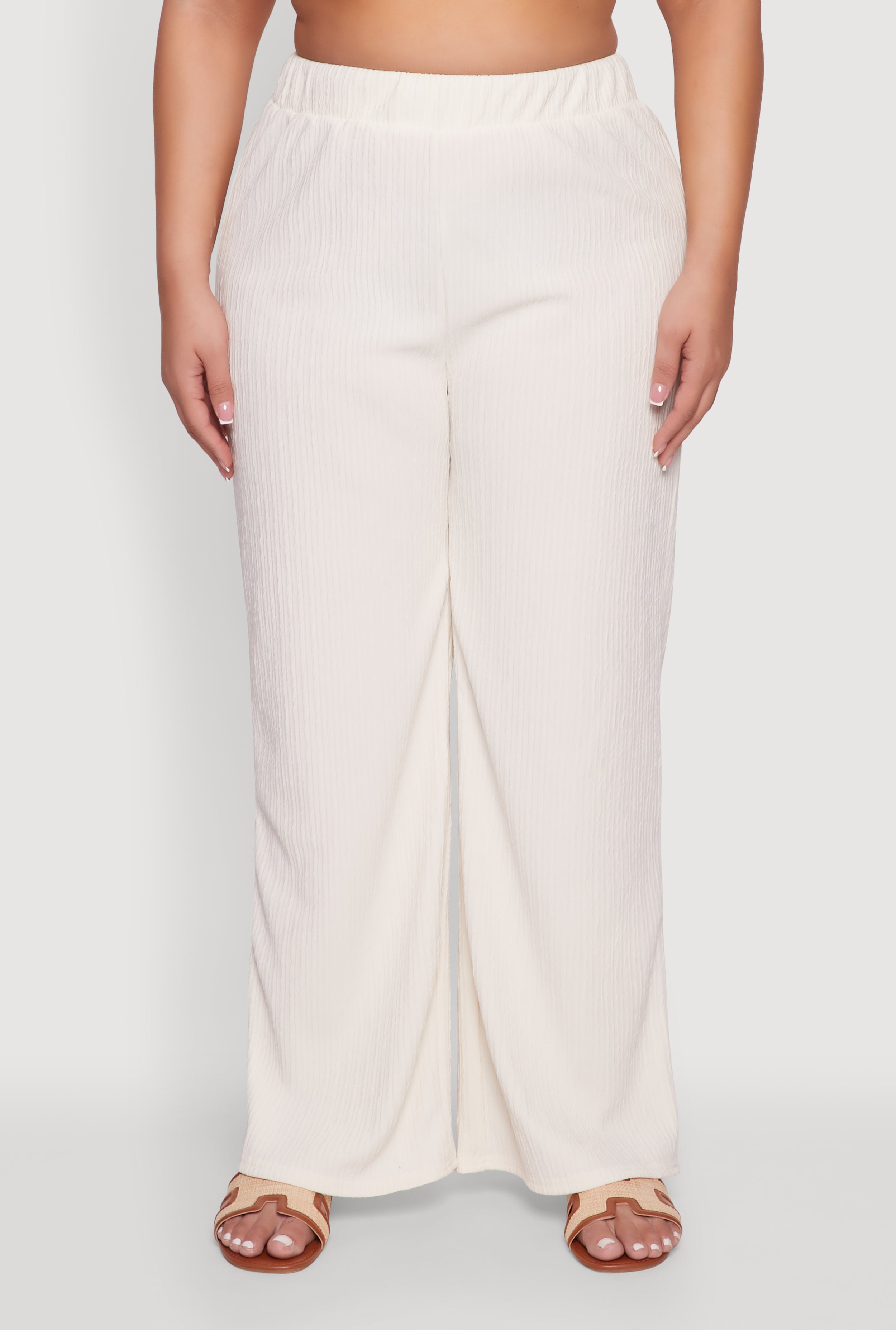 Step up your style game with these Plus Size Textured Knit Solid High Waisted Palazzo Pants. Designed to flatter your curves and keep you comfy all day, these wide-leg pants bring effortless chic vibes to your wardrobe. Whether you’re heading to the office or out for brunch, their breathable textured knit fabric and high waist create a sleek silhouette that feels as good as it looks. Easy to pull on and perfect for mixing and matching, these pants are your new go-to for laid-back confidence and style.