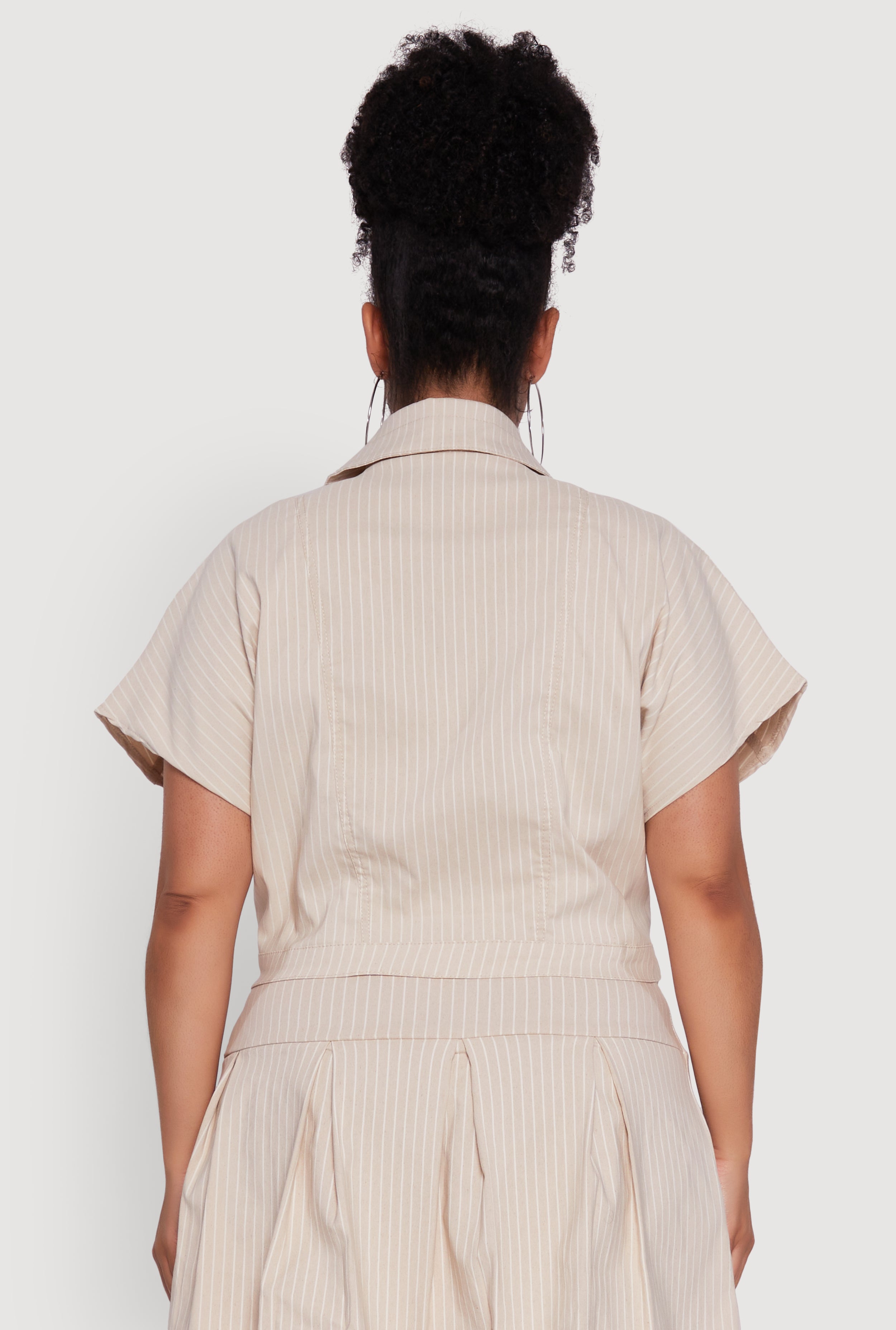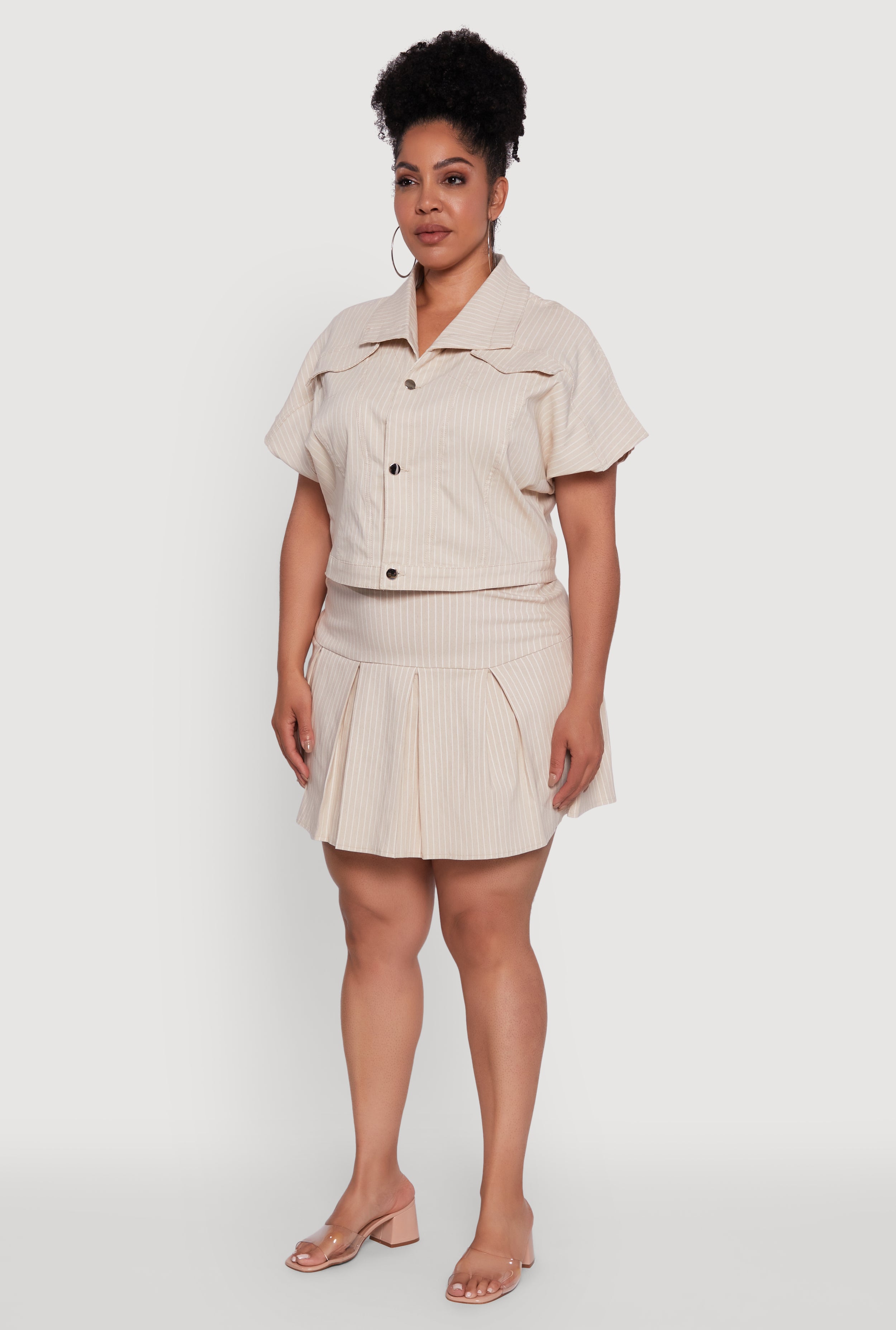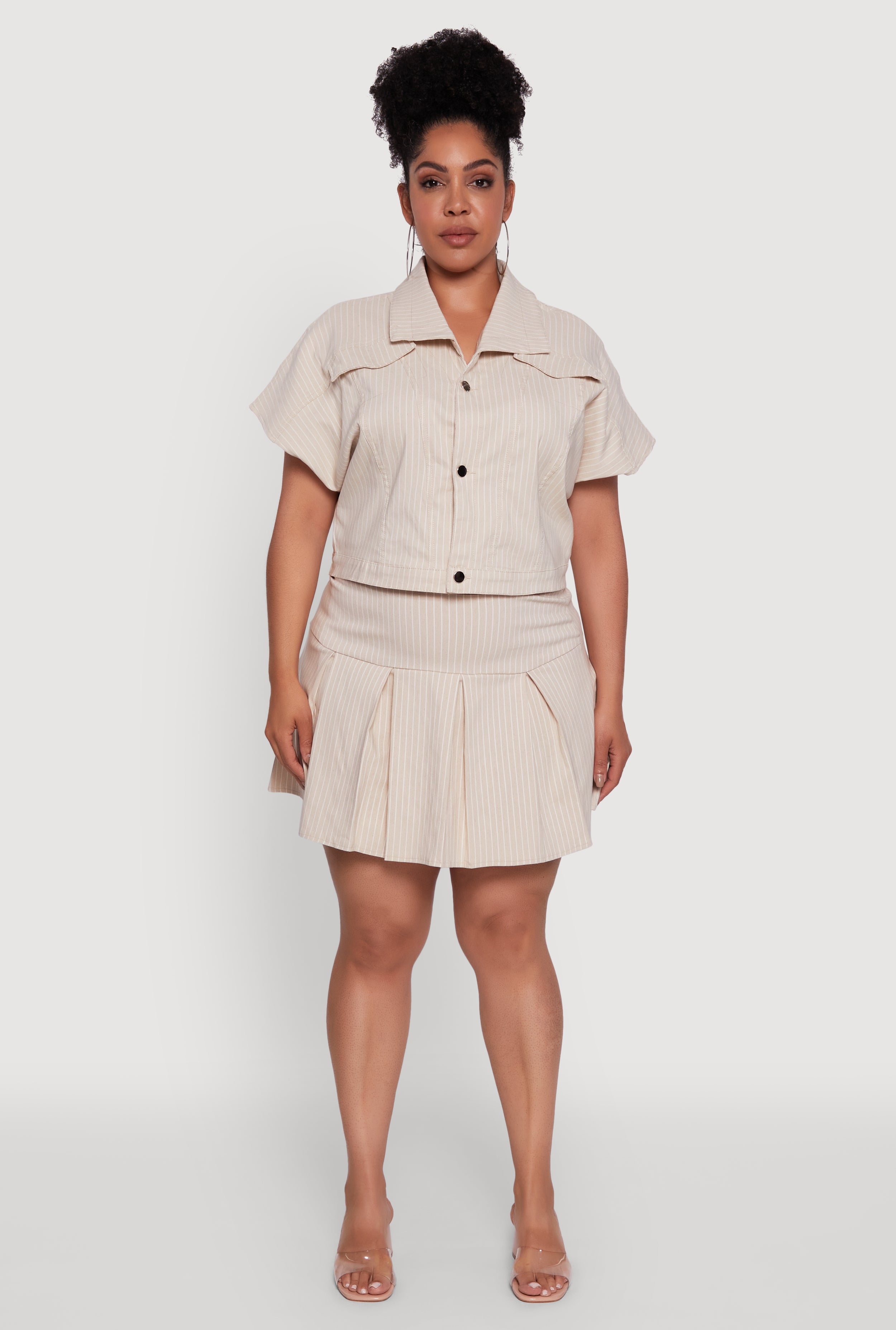 Step up your casual office game with the Plus Size Hyperstretch Pinstripe Short Sleeve Top. Designed with a classic fit and a timeless collar, this top brings a fresh twist to your everyday style. The hyper-stretch fabric moves with you, ensuring comfort from morning meetings to after-hours hangouts. Button front detailing adds a sleek touch, while faux pockets keep the look polished without the bulk. Effortlessly cool and ready to become your new go-to, this top proves that comfort and style can coexist beautifully.