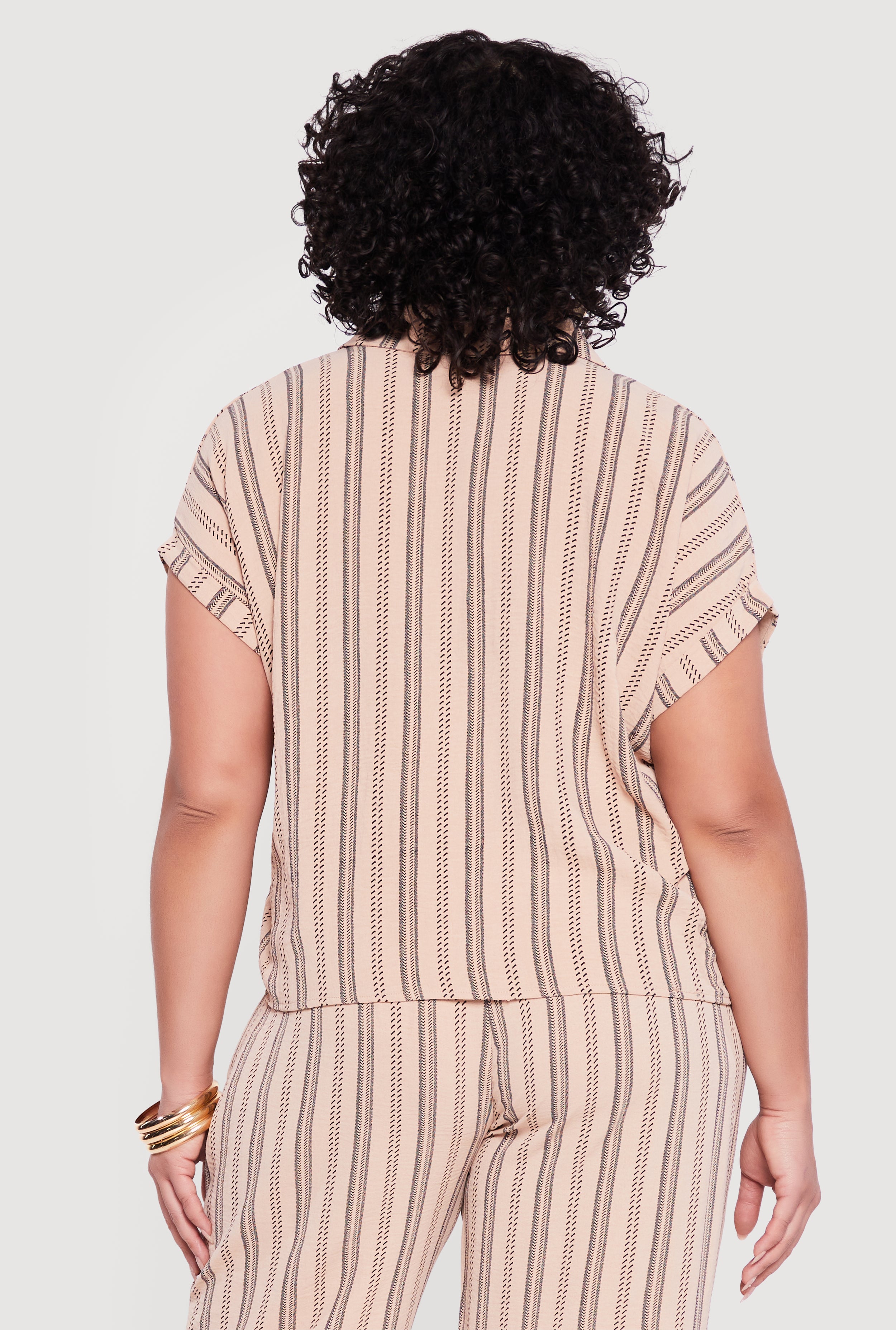 - Short sleeves with fixed cuffs for neat styling