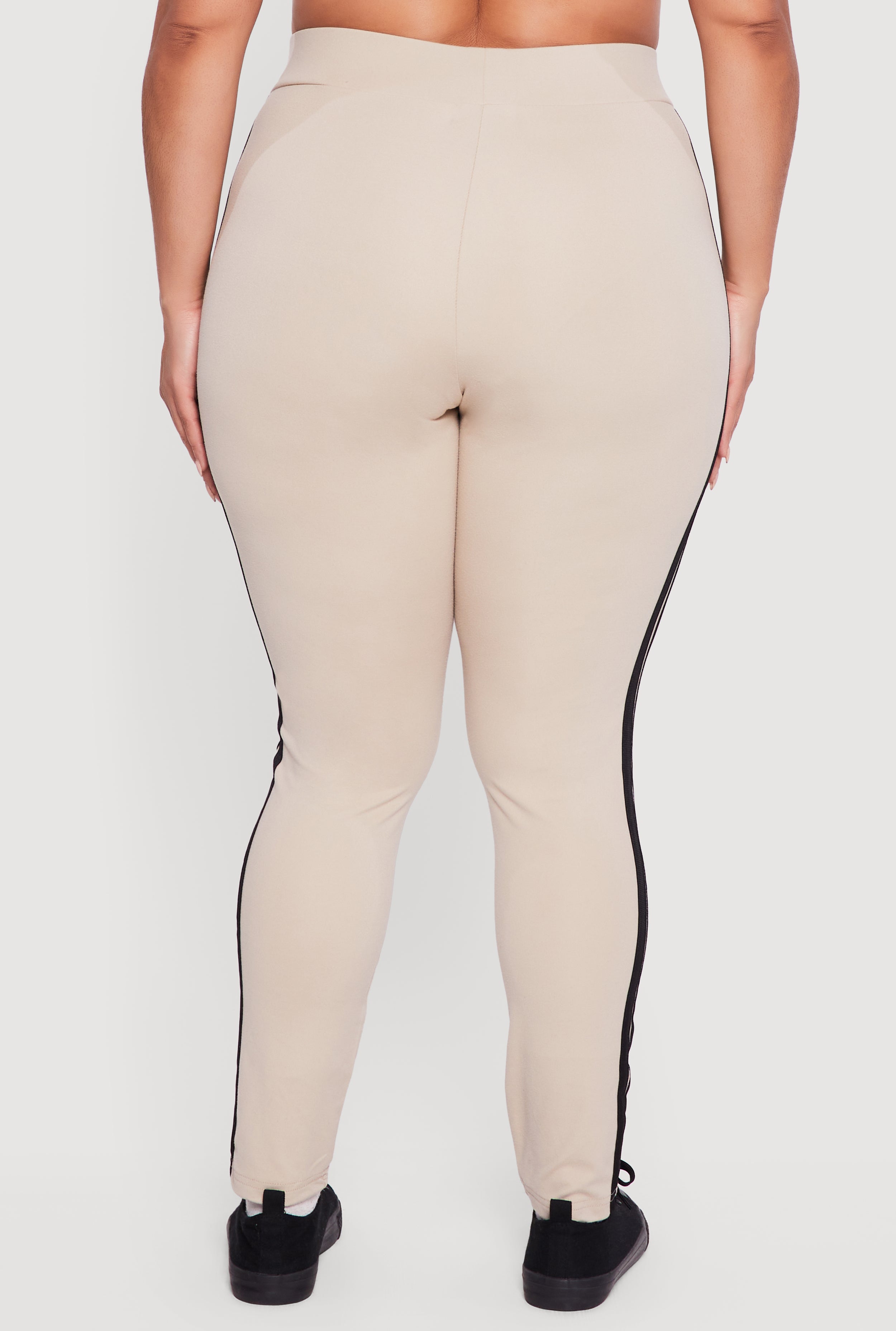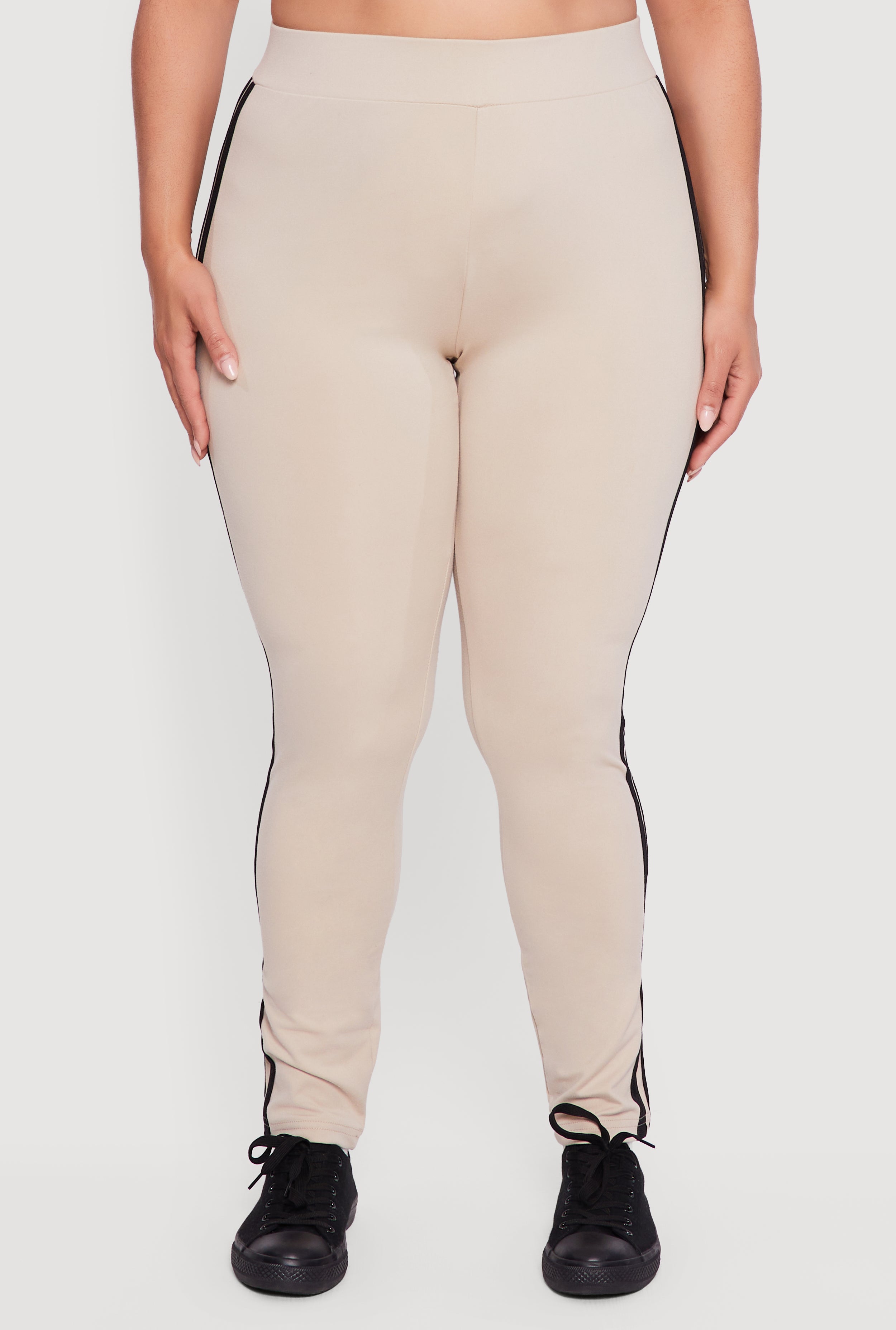 Step up your casual and activewear game with these Plus Size Varsity Stripe High Waisted Leggings. Designed to hug your curves with a skinny fit and hit right at the ankle, these leggings combine sporty vibes with everyday comfort. The high waist offers support and a flattering silhouette, while the pull-on style makes them an easy go-to for any day. Whether you're lounging or on the move, these leggings bring effortless style and confidence to your wardrobe.