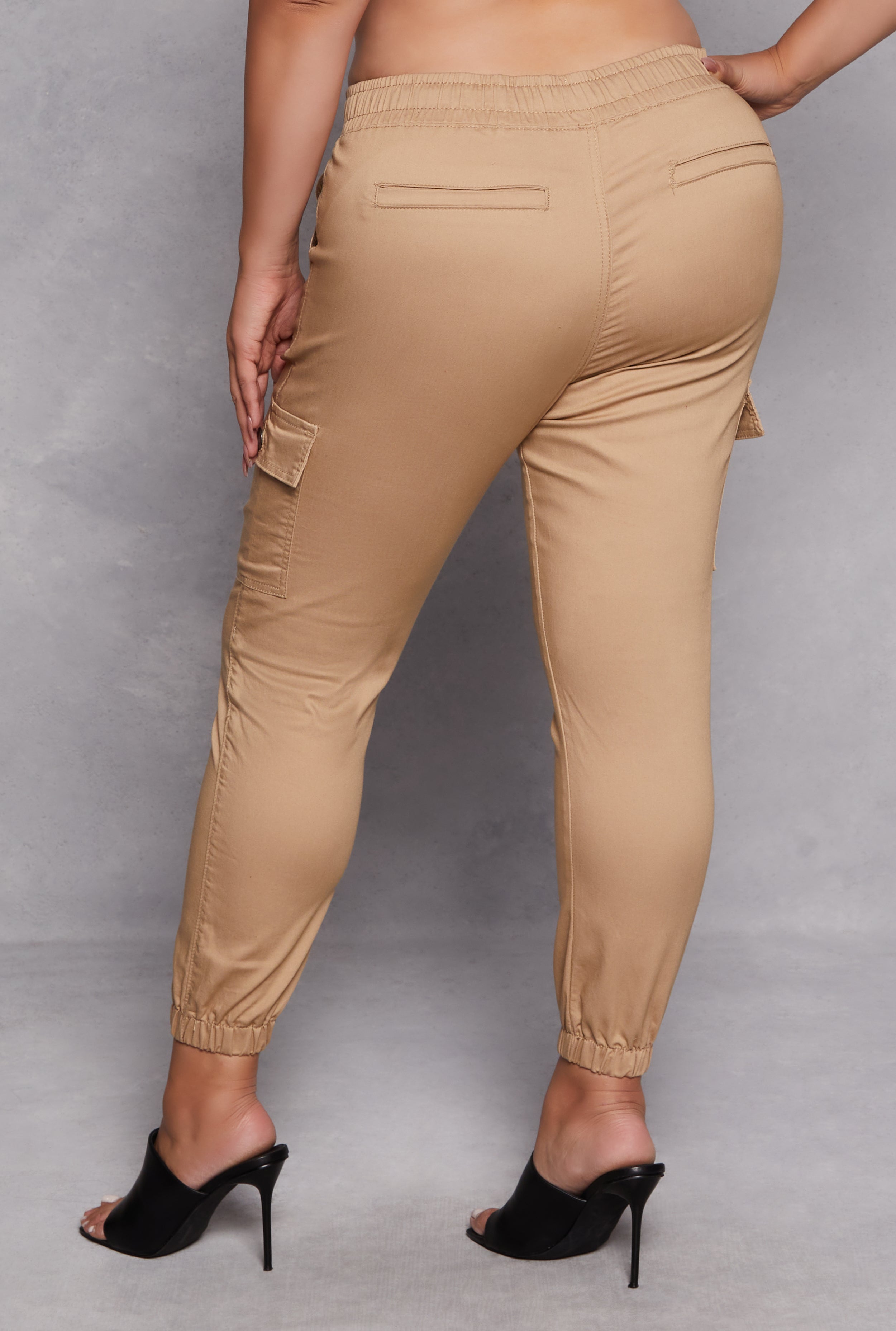 Upgrade your everyday style with our Plus Size VIP Cargo Joggers. Designed to keep you comfortable and on-trend, these joggers are perfect for lounging, running errands, or casual outings. The high waisted fit and tapered leg create a flattering silhouette, while the cropped hem adds a modern touch. Whether you're dressing up or keeping it chill, these cargo pants are a versatile addition to your wardrobe that you'll love to wear again and again.