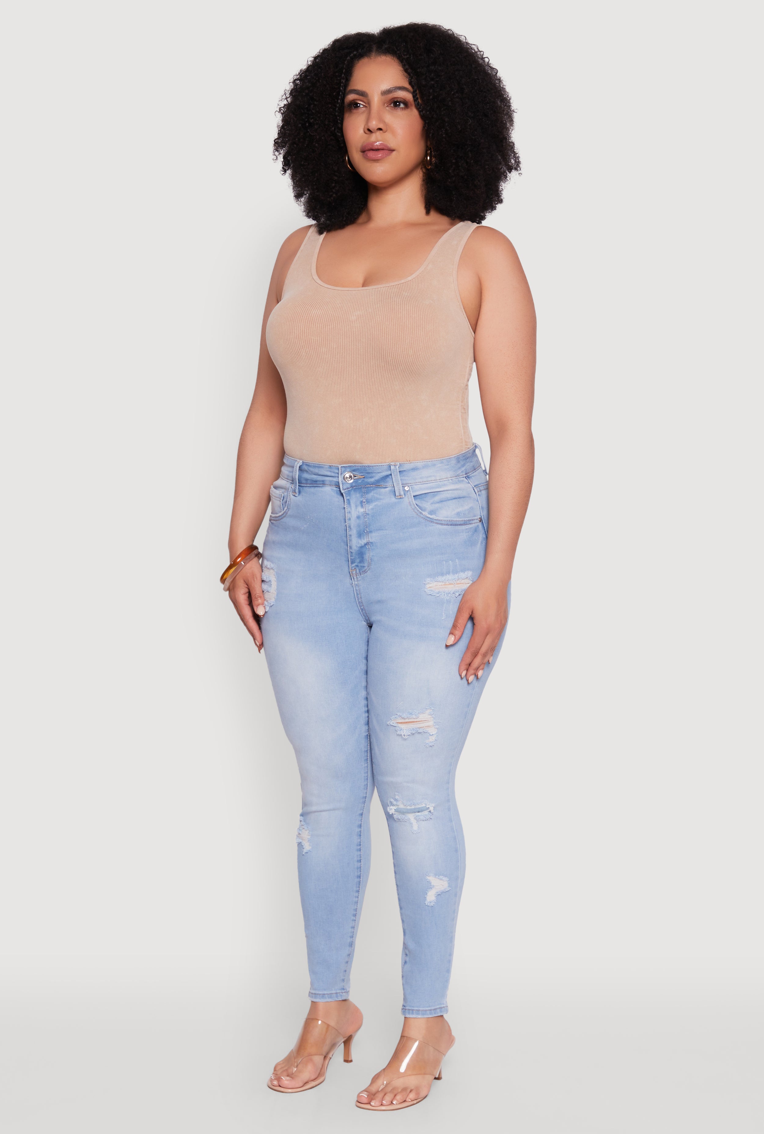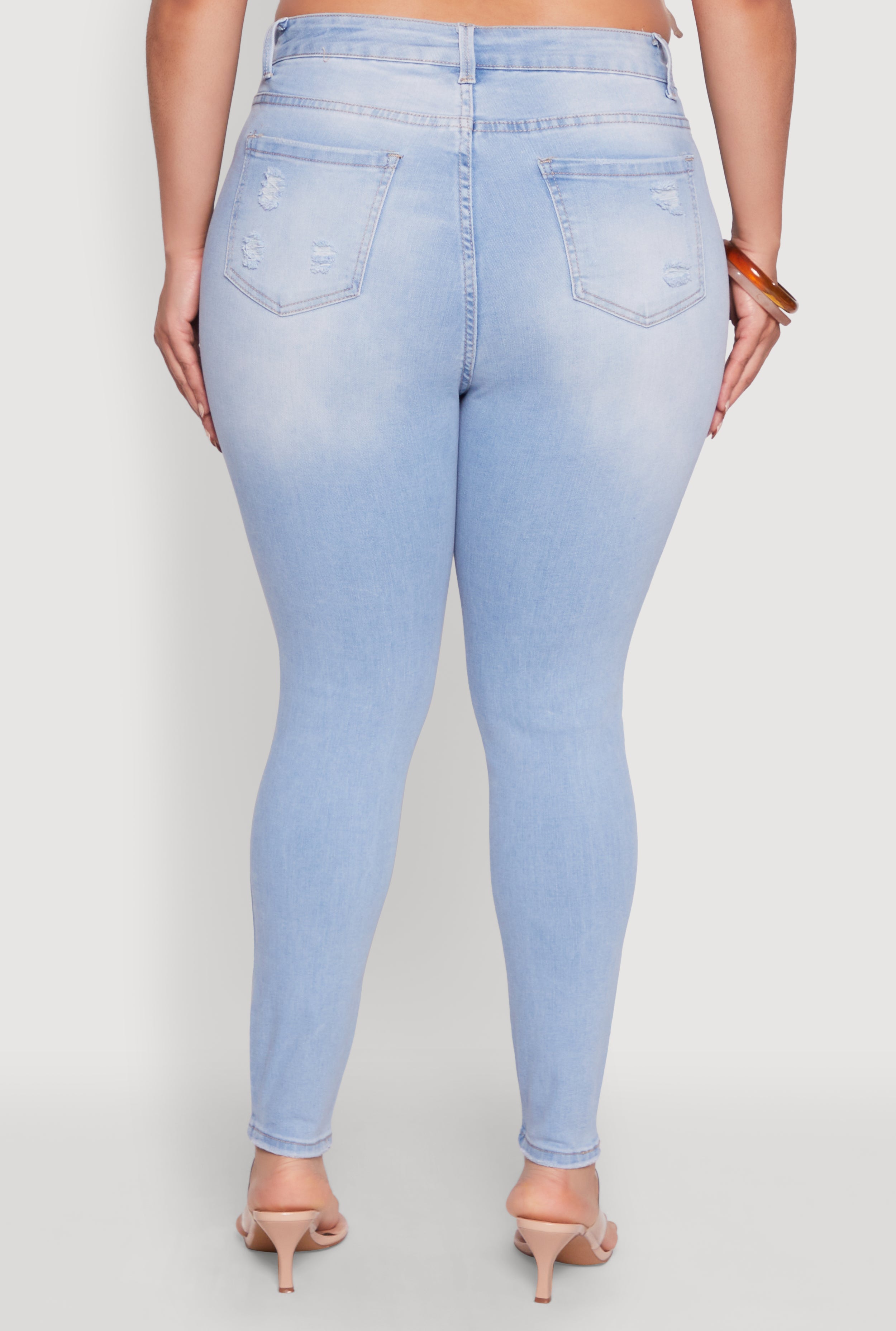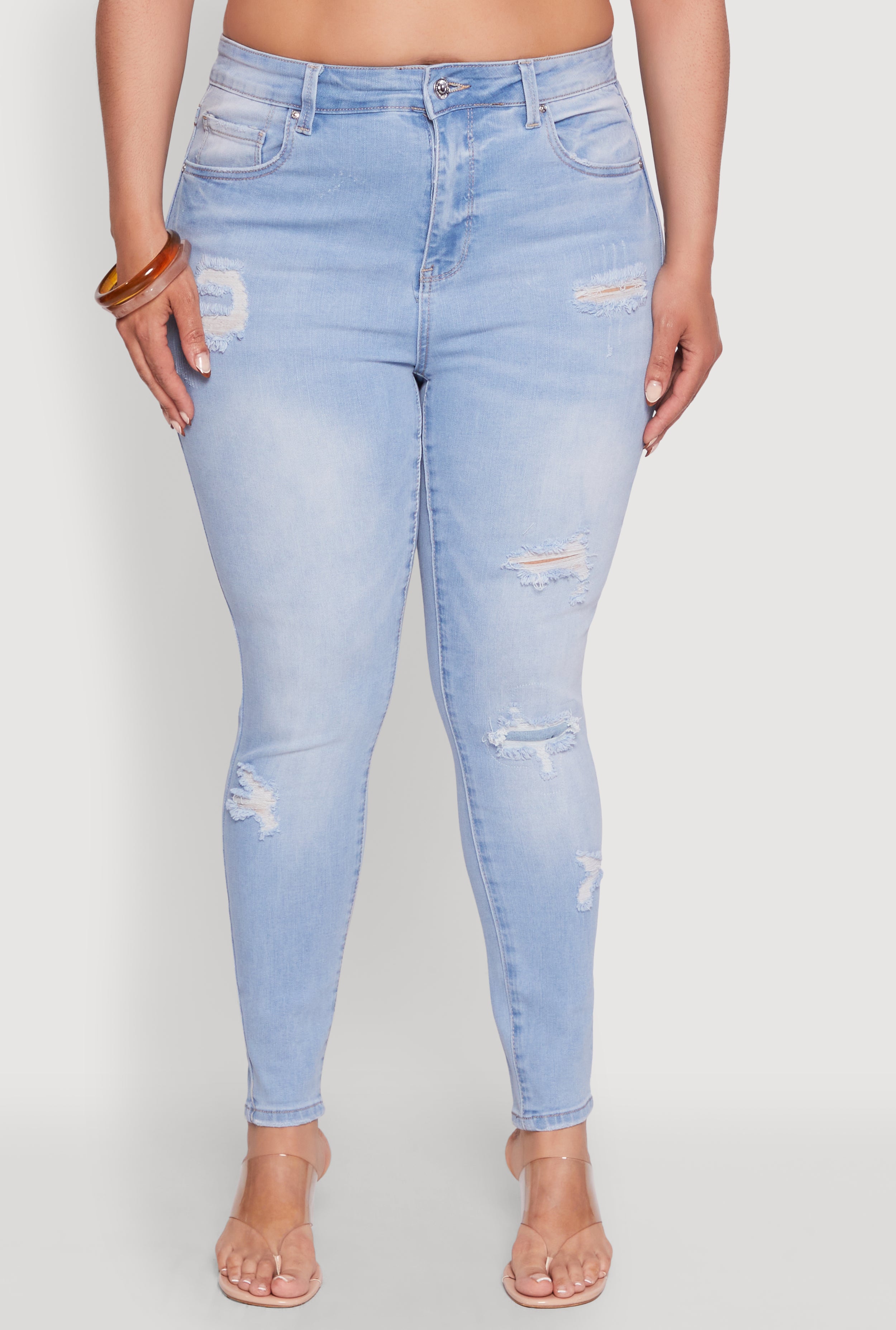 Get ready to turn heads with the Plus Size WAX Distressed High Waisted Skinny Jeans. Designed for those who love to stand out, these jeans combine edgy details like frayed hems and distressed patches with a flattering high waist that elongates your legs. Made from sustainable denim, they’re perfect for adding a bold, eco-friendly touch to your everyday look. Whether you’re out with friends or just feeling yourself, these jeans are your new go-to for effortless style and comfort.