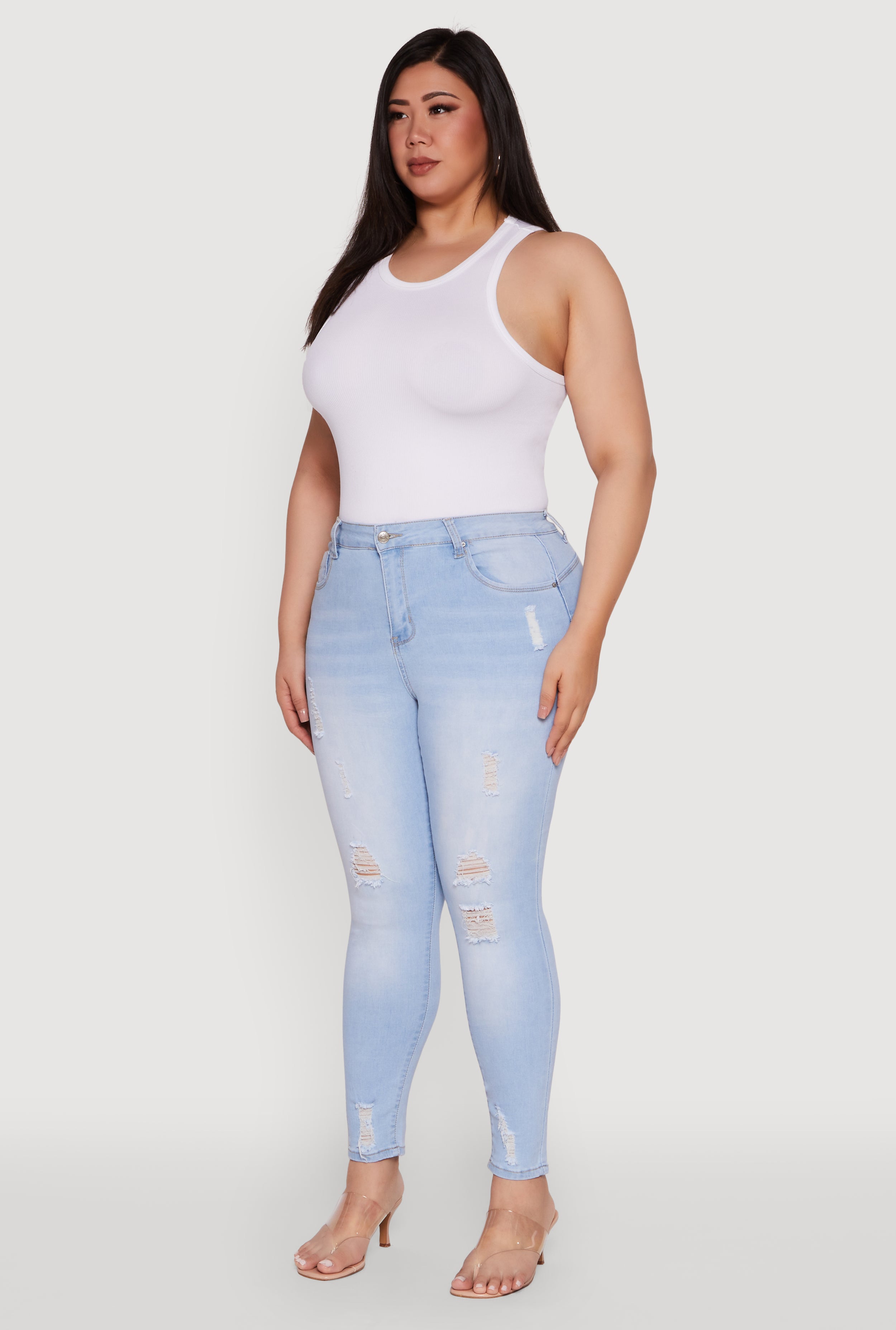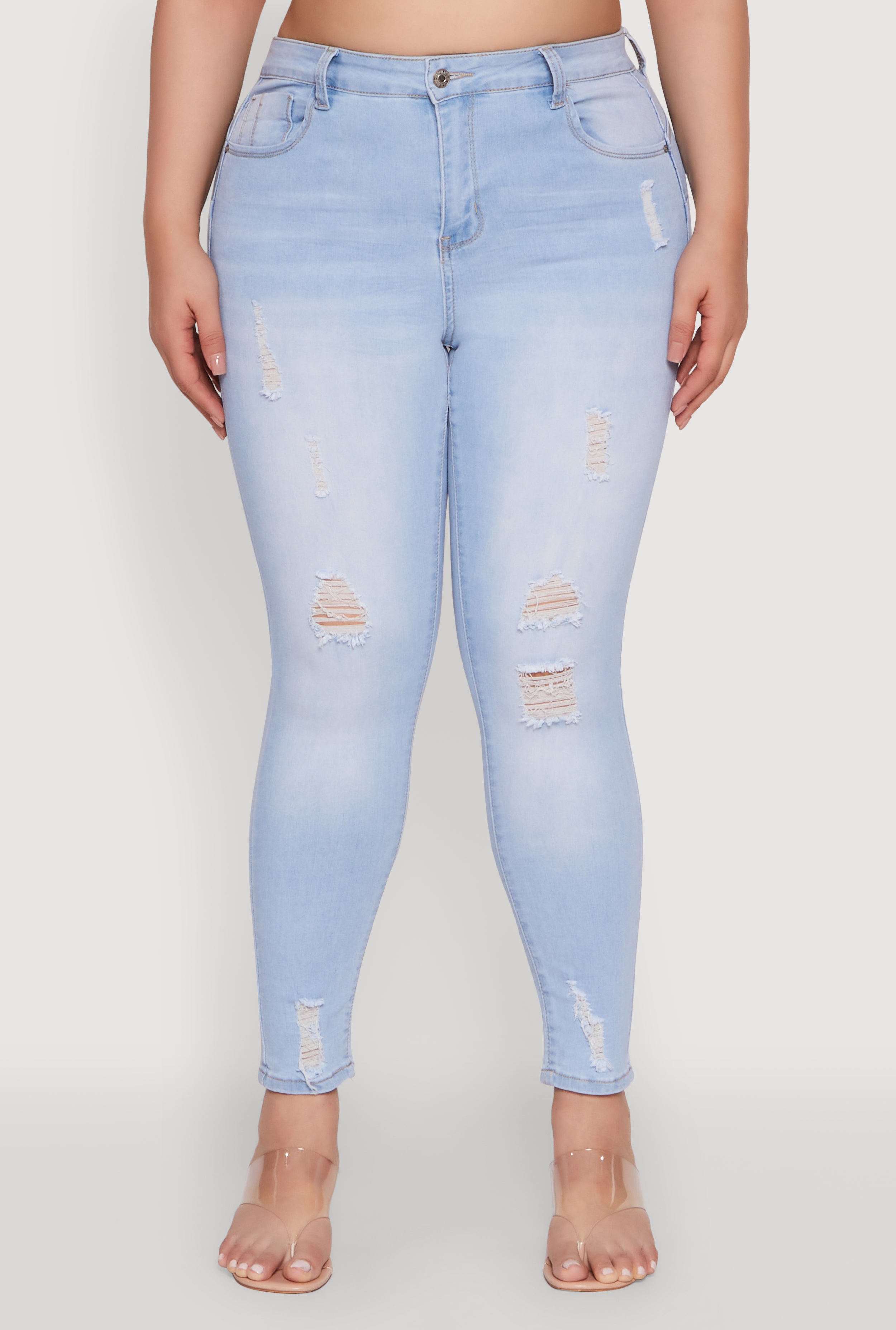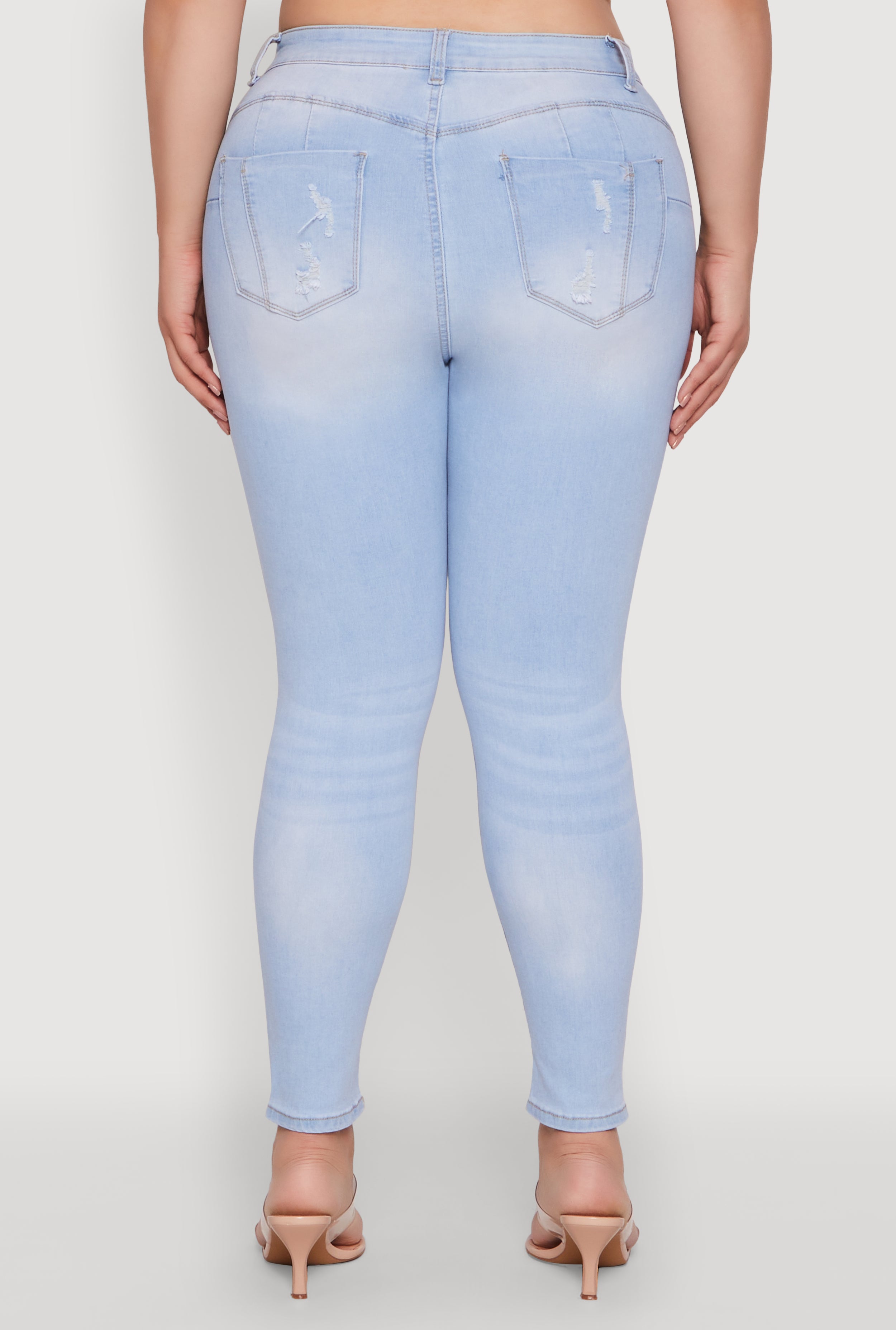 Discover your new go-to jeans with the Plus Size WAX High Rise Distressed Push Up Skinny Jeans. Designed to flatter and boost your confidence, these denim beauties combine a high waist fit with a distressed, trendy look that turns heads. Whether you're out with friends or just want to feel fabulous every day, these jeans are your perfect match for effortless style and comfort.