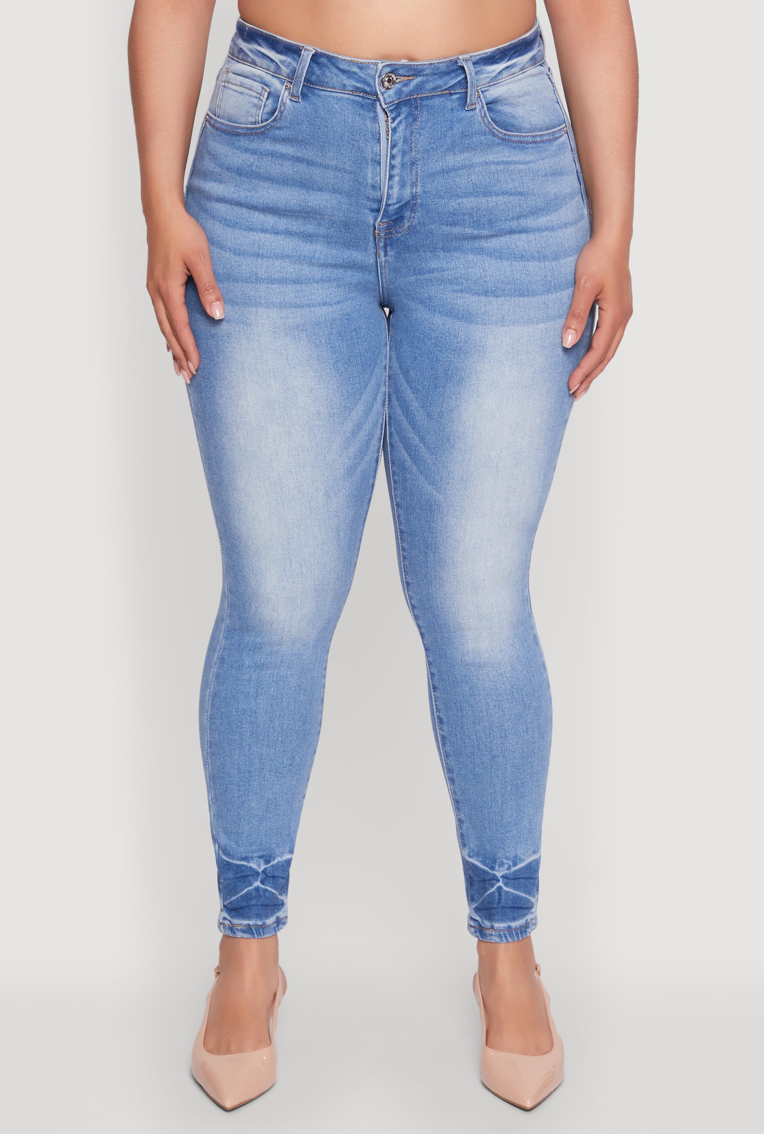 Plus Size WAX Stylish High Waisted Crinkle Hem Skinny Jeans