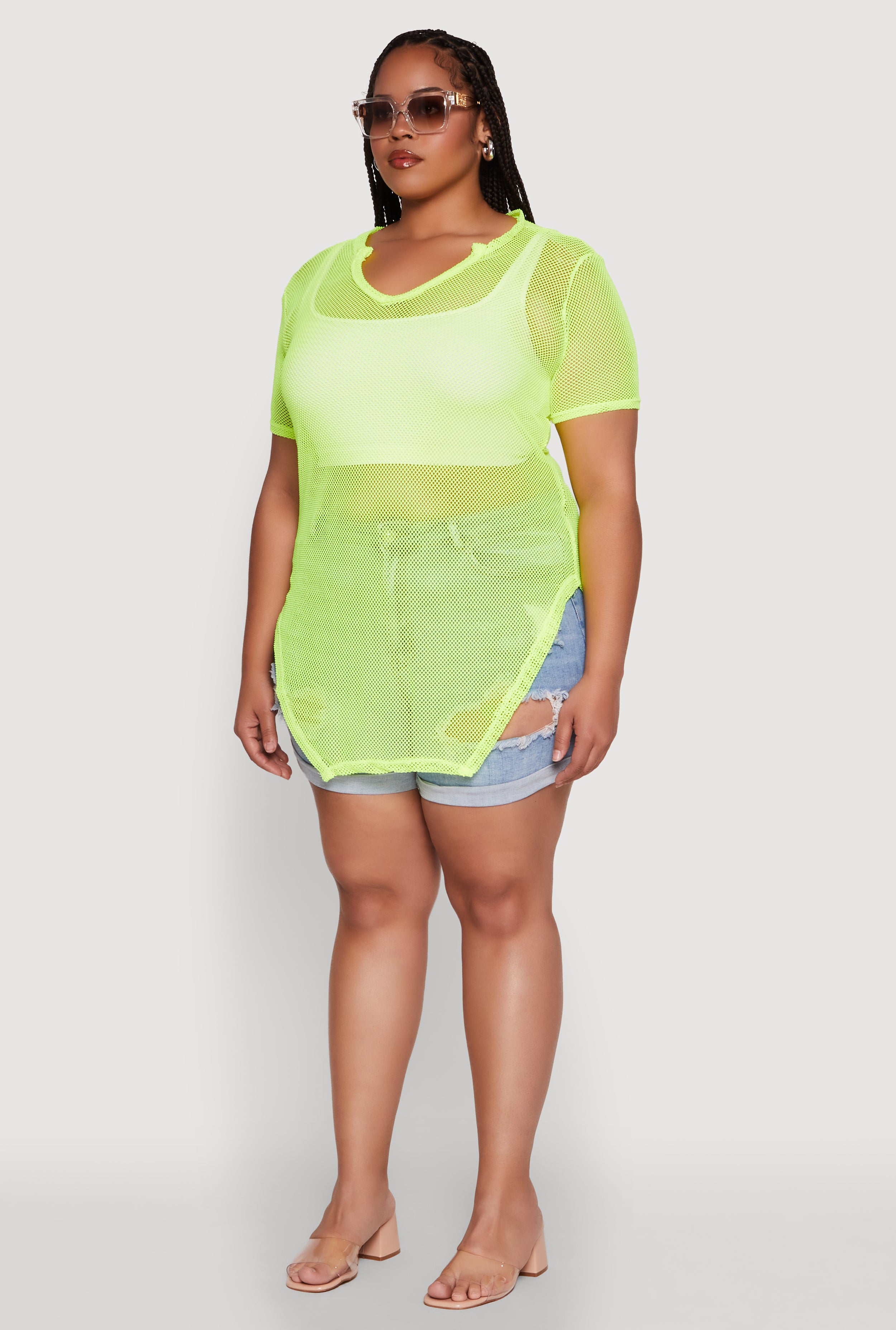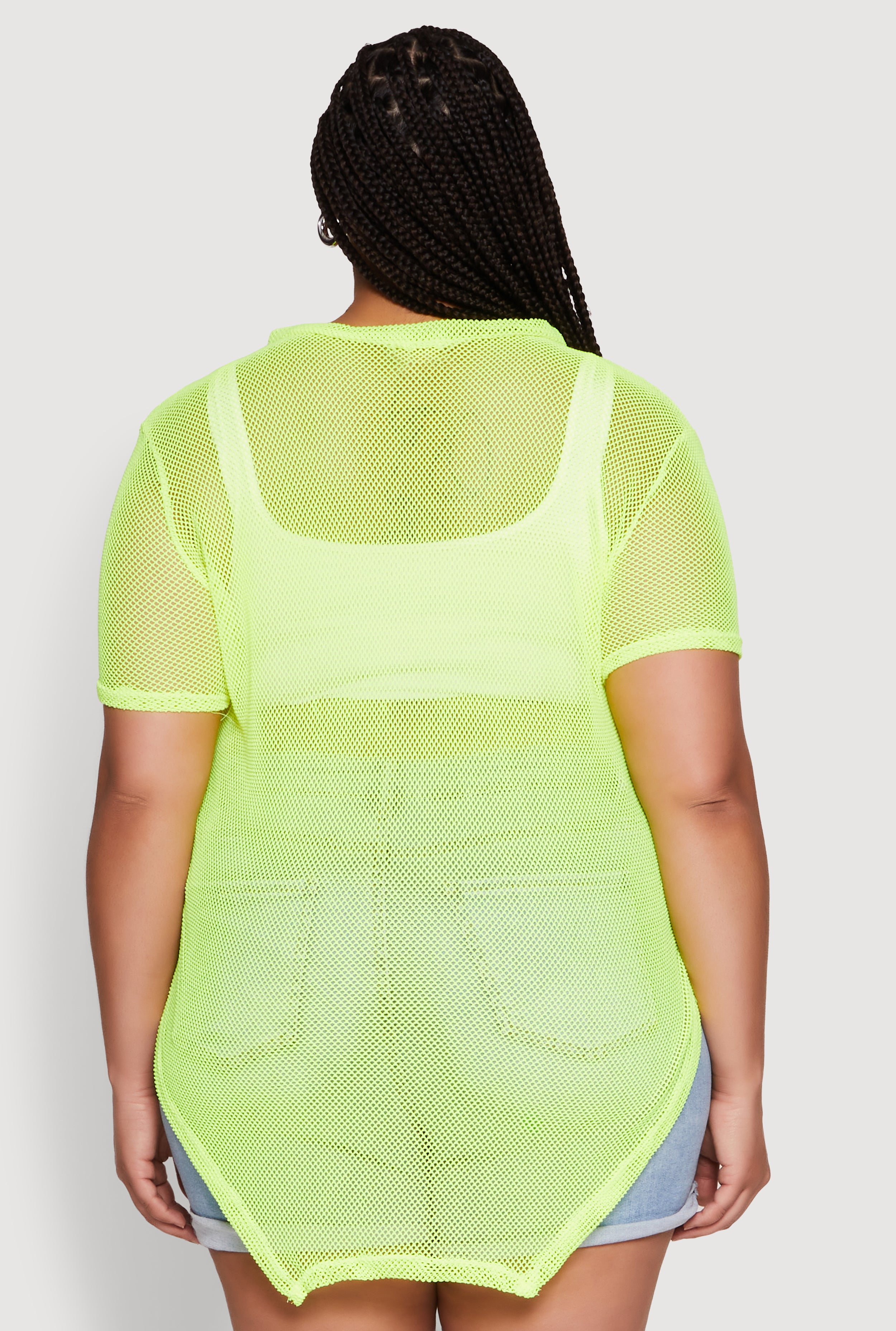 Elevate your style game with our Plus Size Stylish Fishnet Hanky Hem Blouse. Designed to turn heads, this sheer fishnet top features a flattering notch neck and a classic fit that offers a timeless silhouette. Perfect for dressing up or down, it’s a versatile piece that adds a touch of edge to your wardrobe. Whether you're layering or rocking it solo, this blouse is your new go-to for making a bold statement with confidence and comfort.