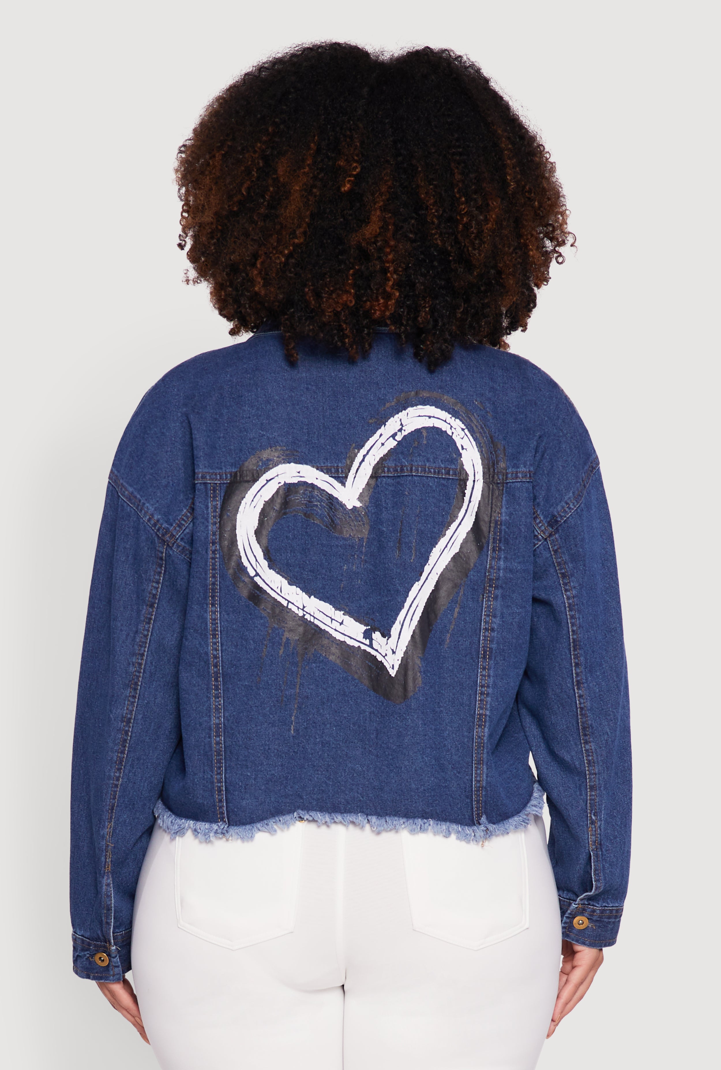 Plus Size Denim Jacket with Heart Brush Stroke Design