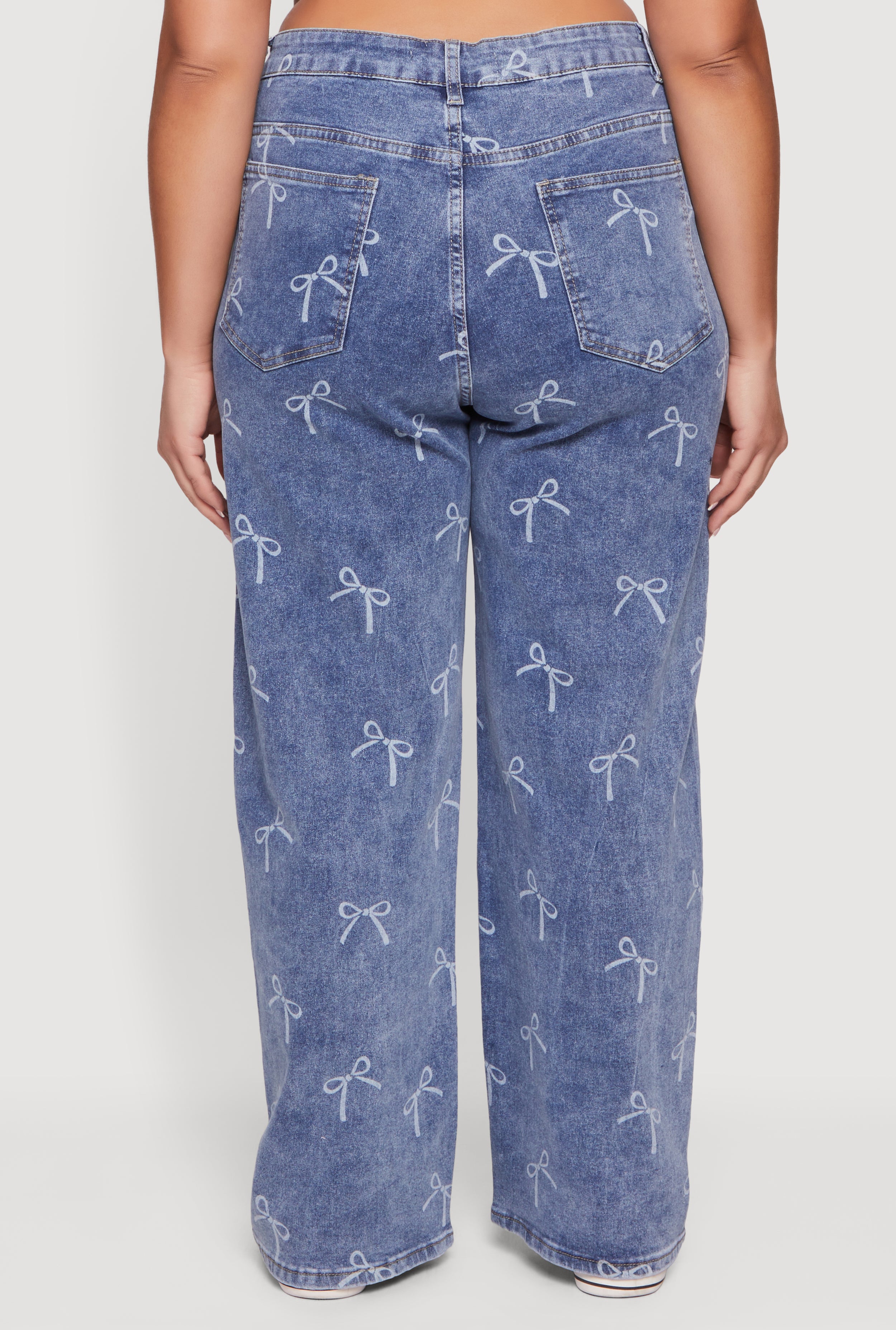 Step out in style with these Plus Size High Waisted Bow Print Jeans designed to bring fun and comfort to your everyday look. Featuring a flattering high waist and relaxed straight-leg fit, these denim jeans combine streetwear vibes with a playful bow print that adds a unique twist to your casual wardrobe. Perfect for those who want to feel confident and comfy while turning heads.